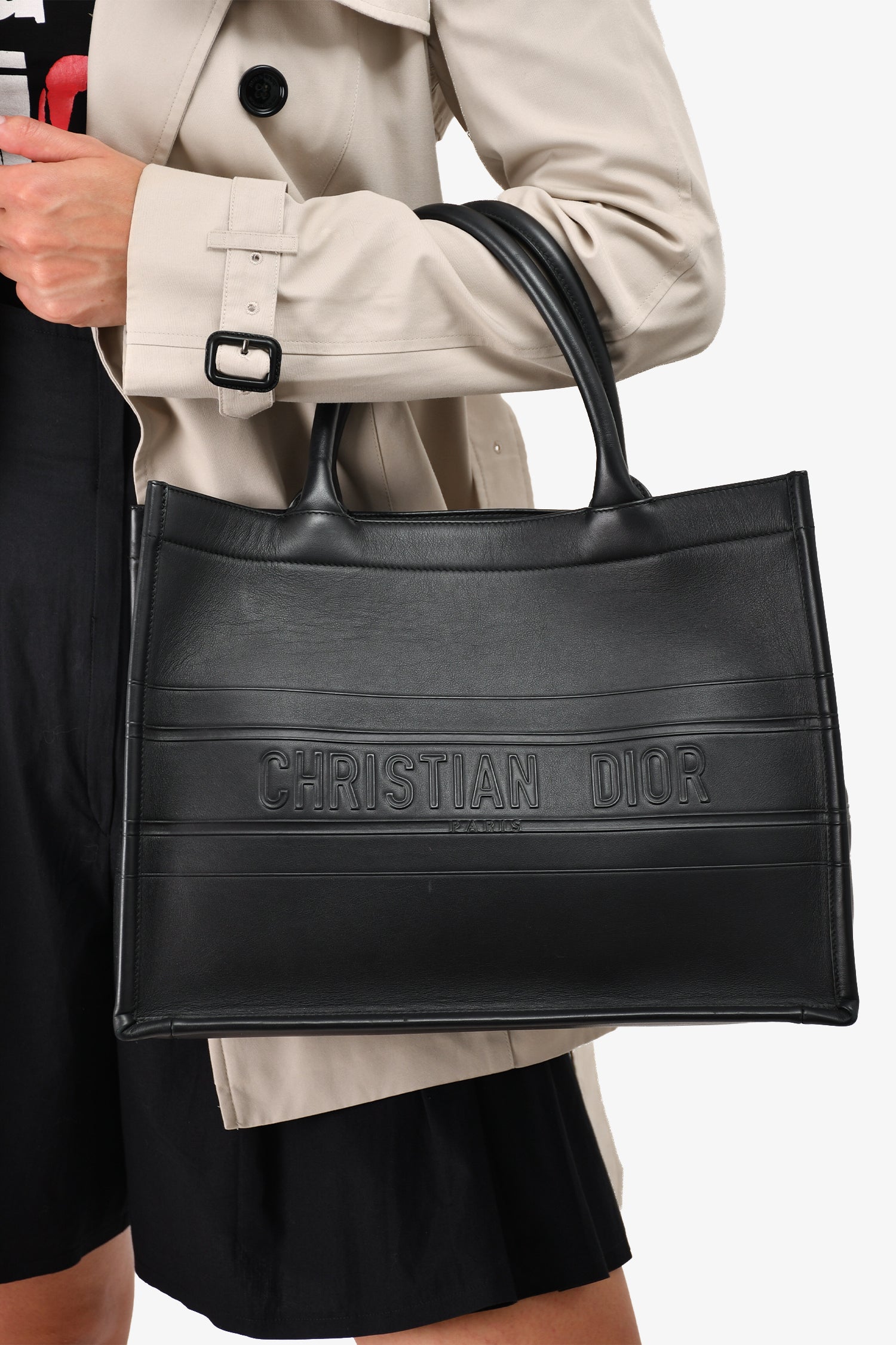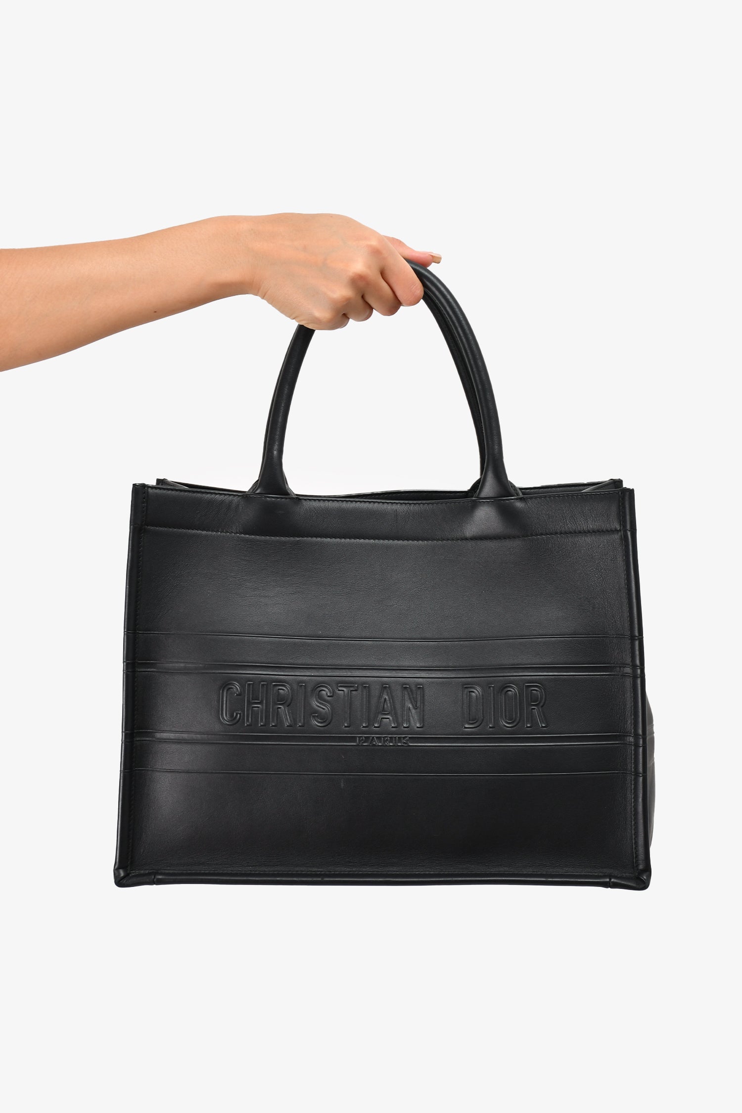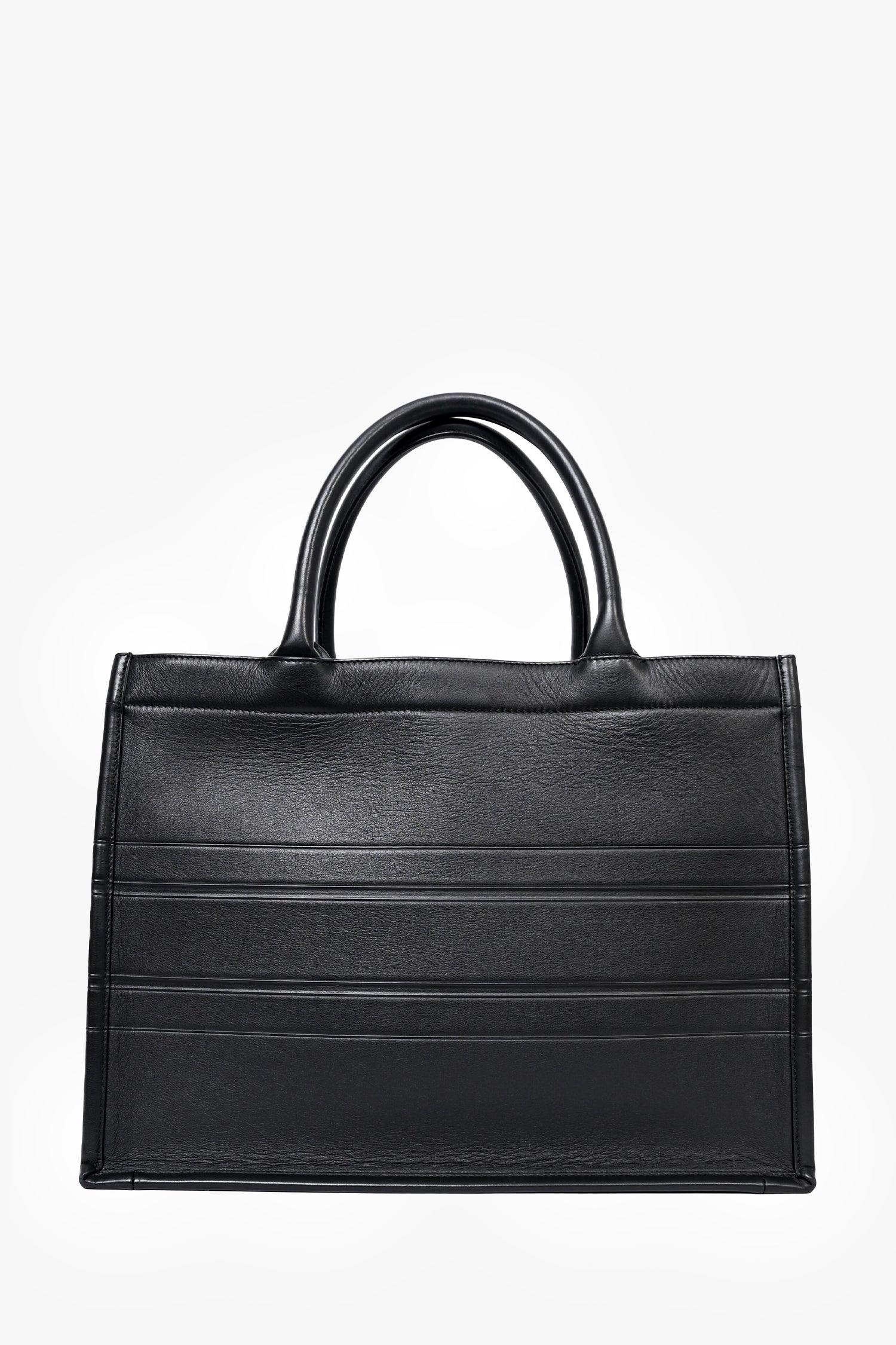 Refresh availabilityChristian Dior Black Leather Medium Book Tote. Dual rolled handles. Open interior. Suede interior lining.