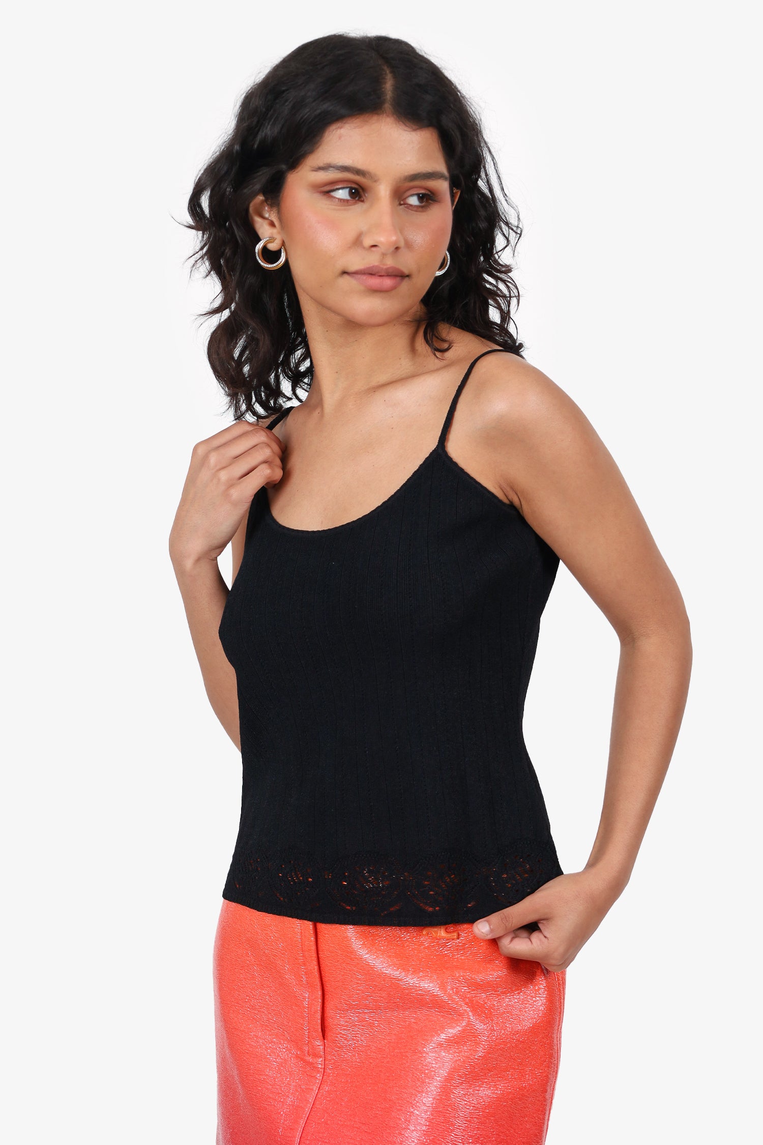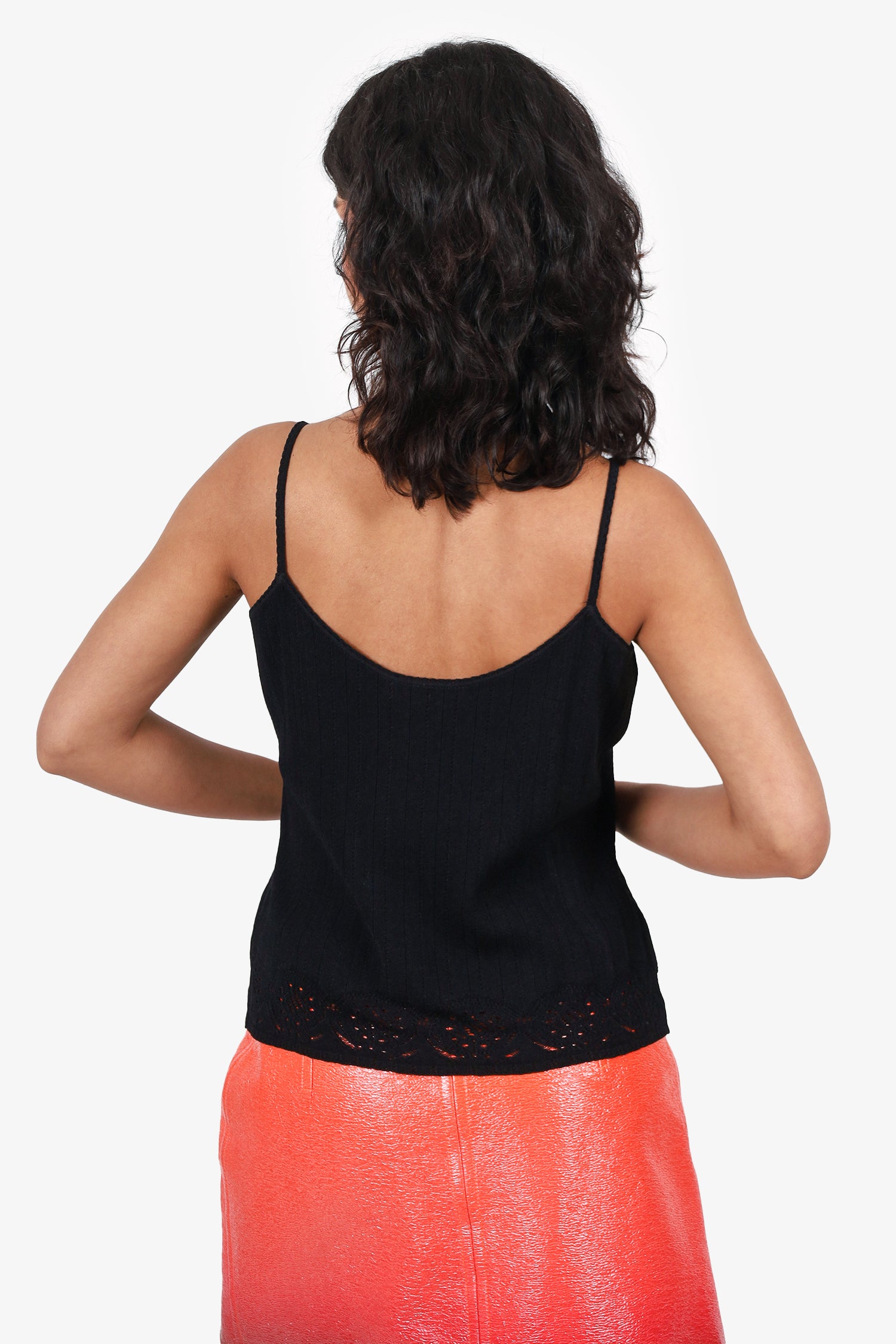 Christian Dior Black Ribbed Knit Cropped Tank Top Size 10