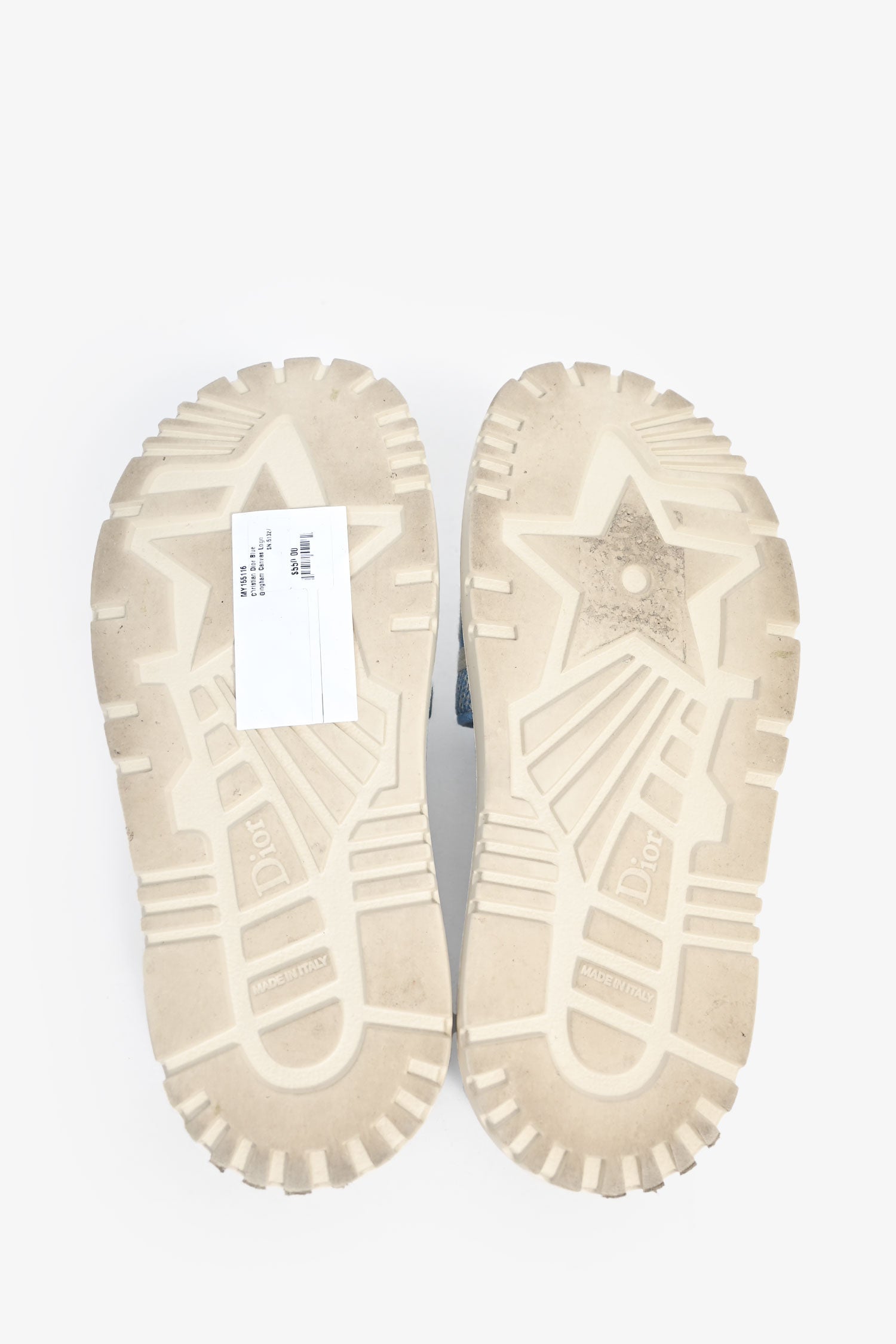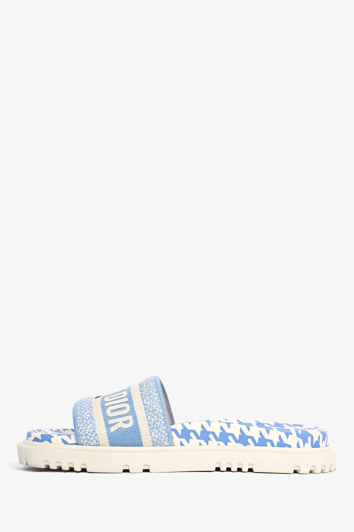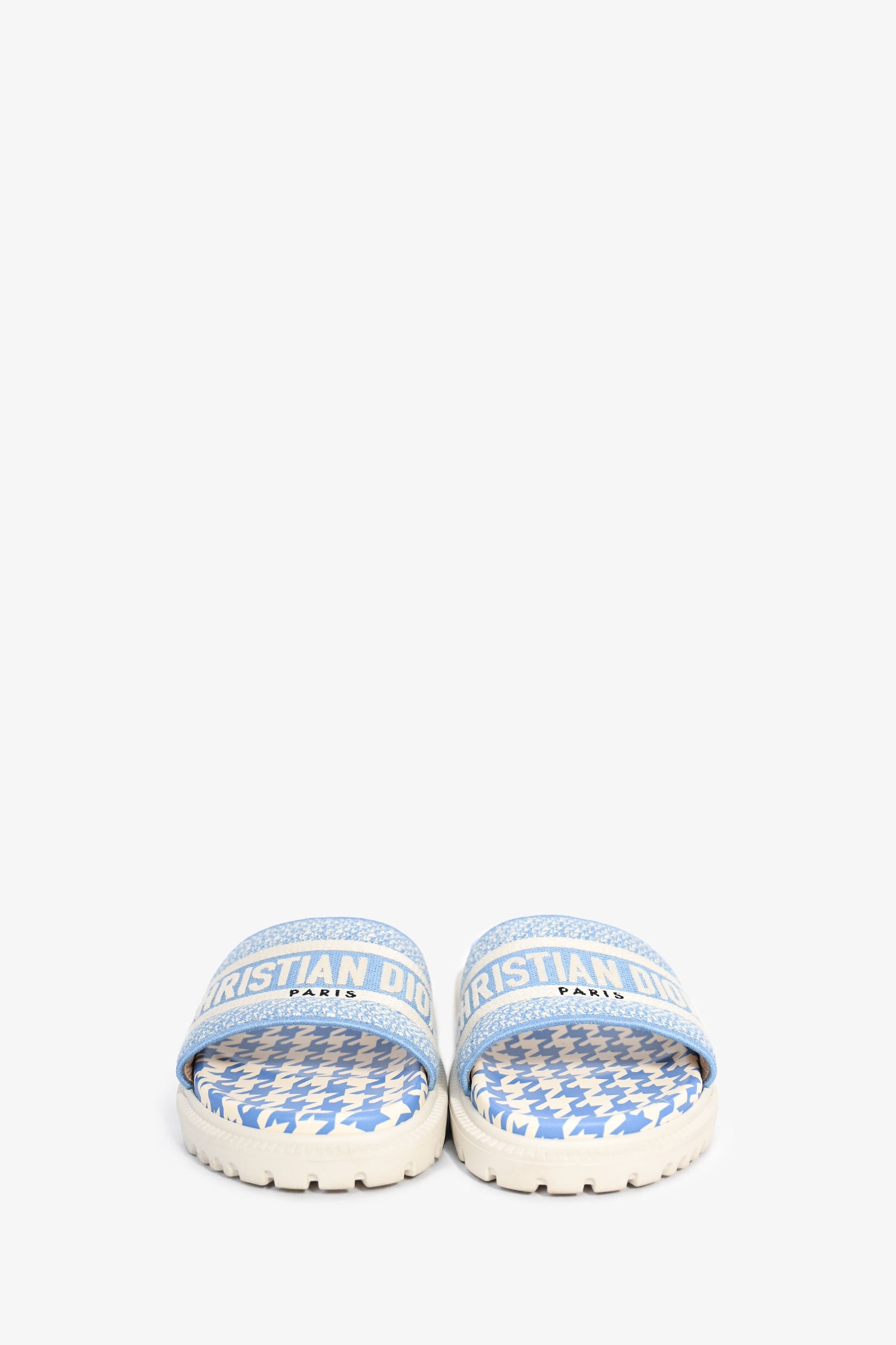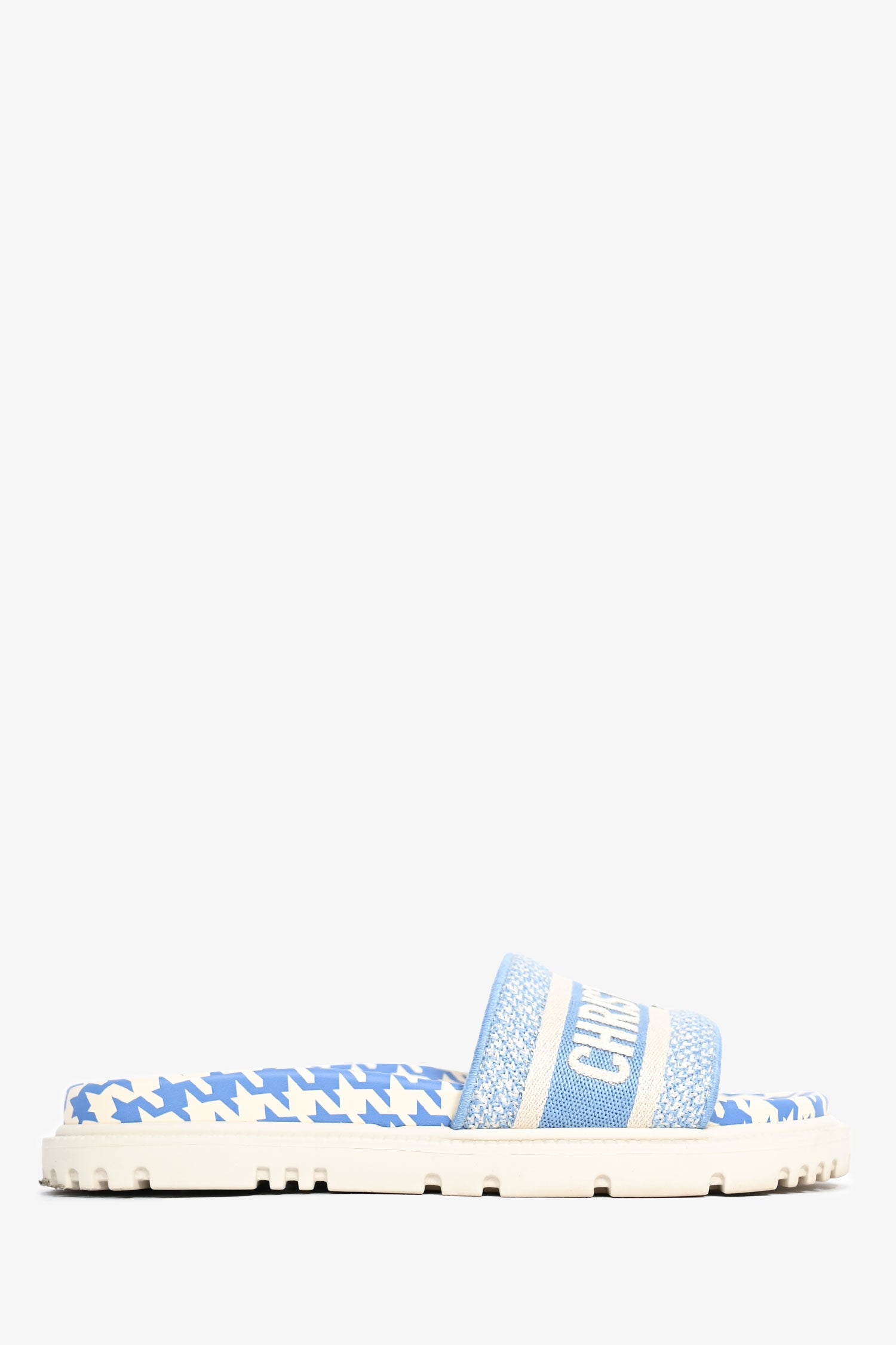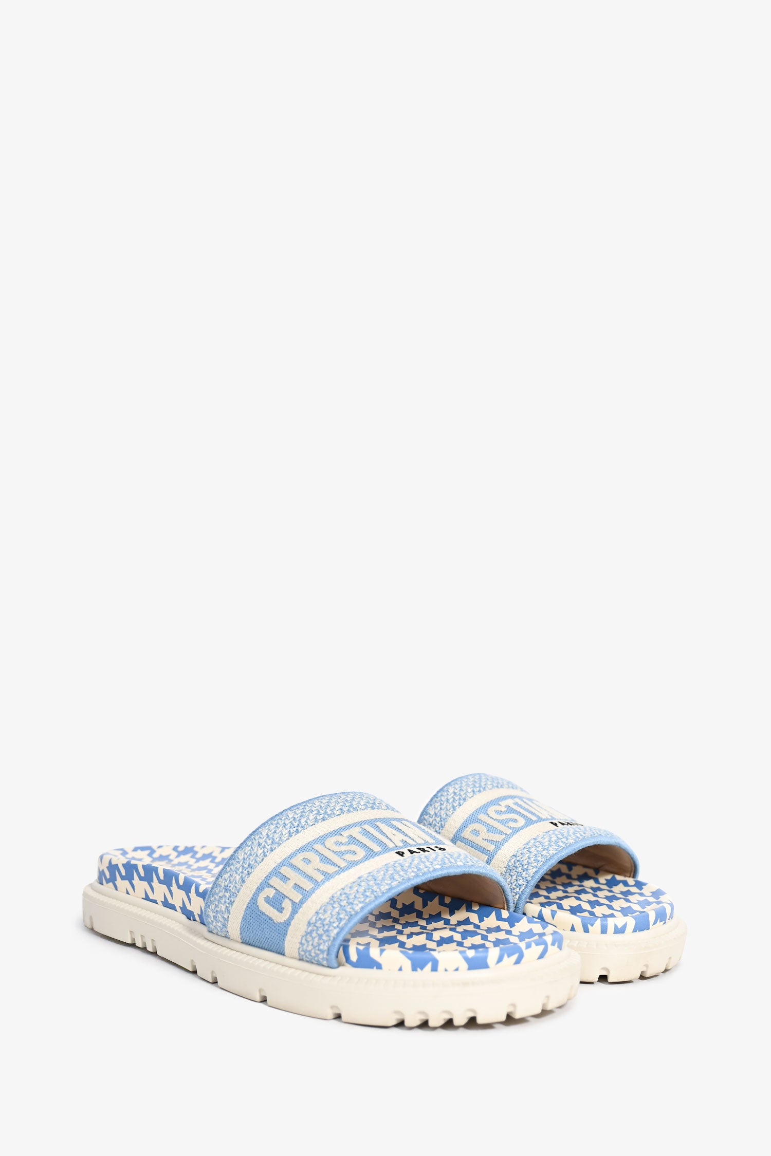 Refresh availabilityChristian Dior Blue Gingham Canvas Logo Slides. Open toe. Slip-on. Tonal stitching.