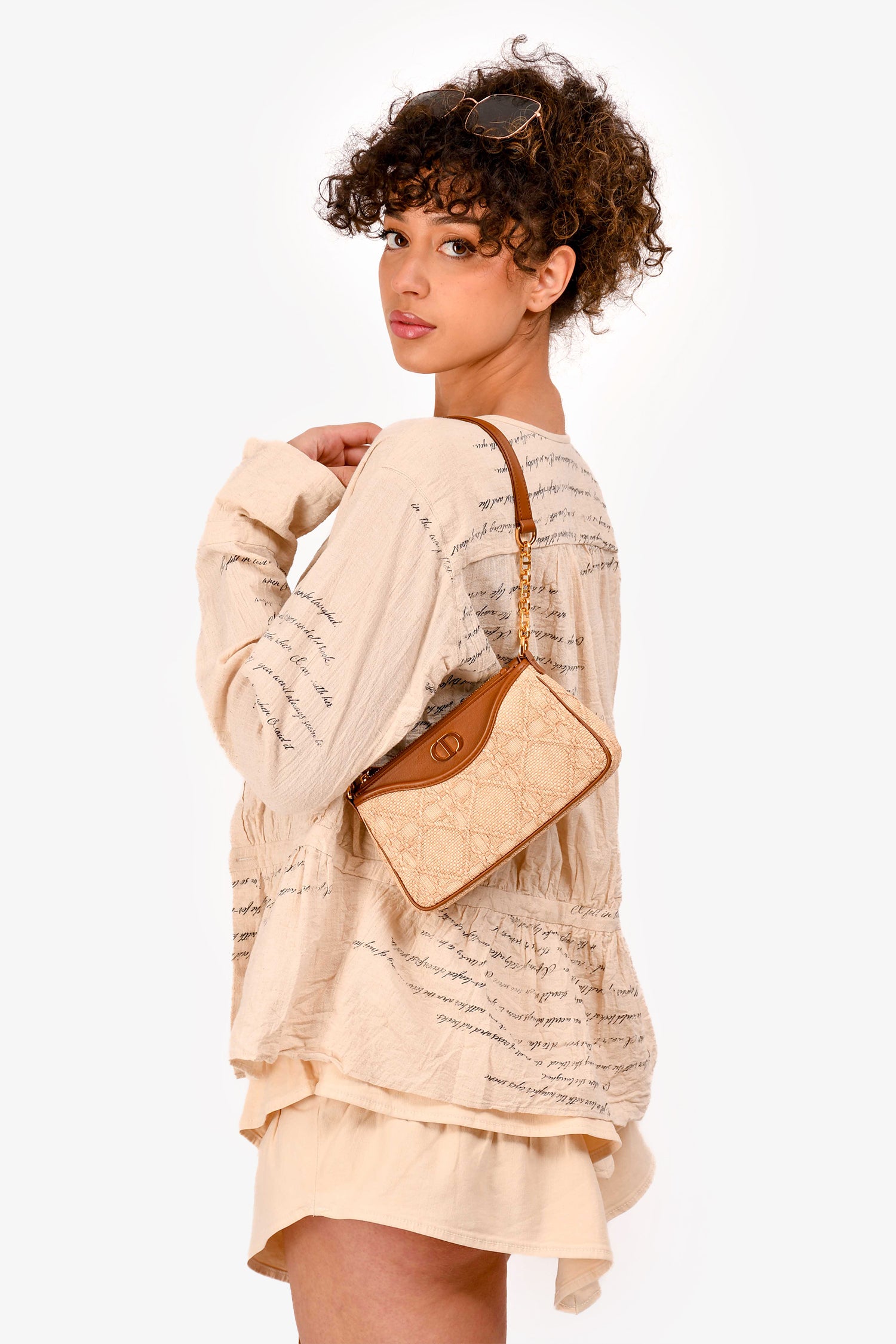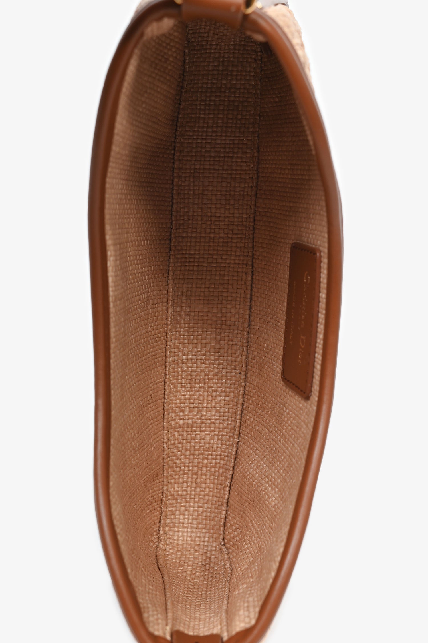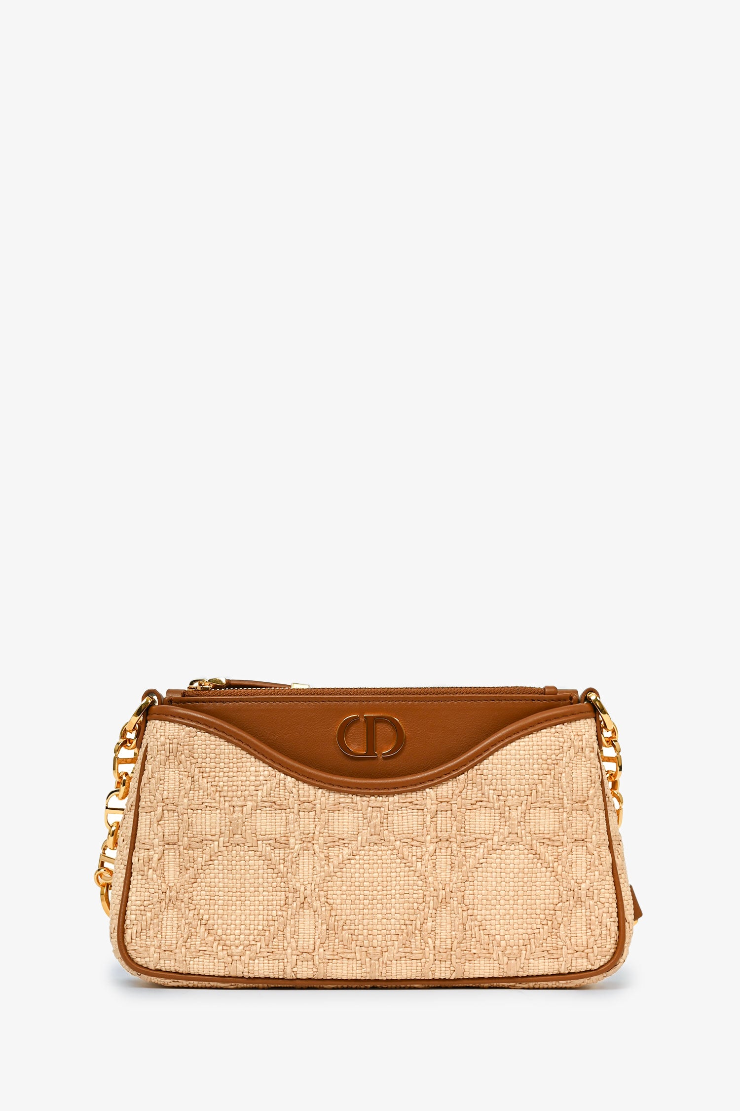 Refresh availabilityChristian Dior 2023 Brown Canvas/Leather 'Montaigne' Logo Shoulder Bag. Open compartment with 2 removable pouches. One pouch with snap button closure. One pouch with zip-up closure. Woven details throughout. Gold-tone hardware. Tonal stitching.