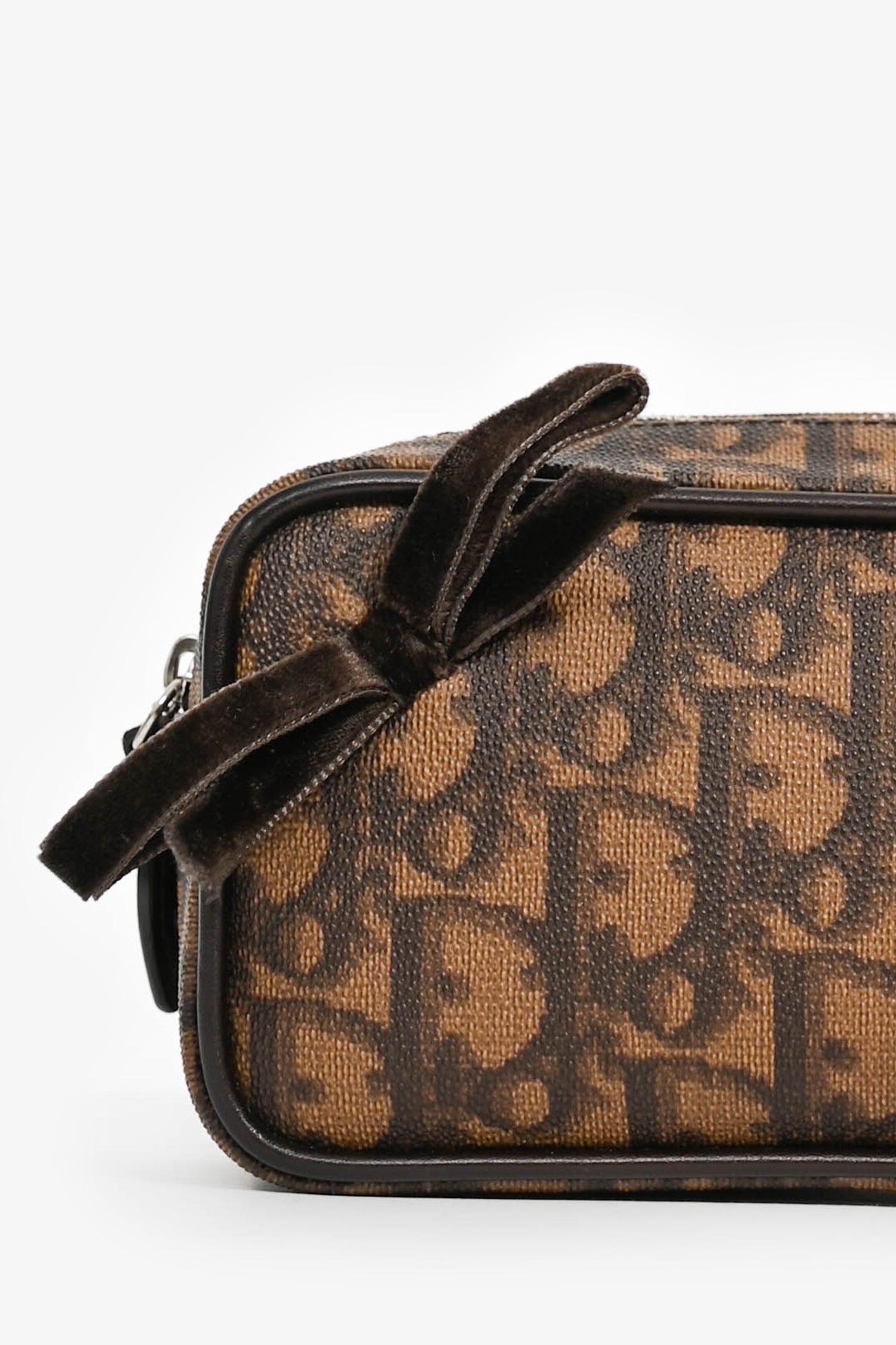Christian Dior Brown Oblique Velvet Bow Cosmetic Pouch