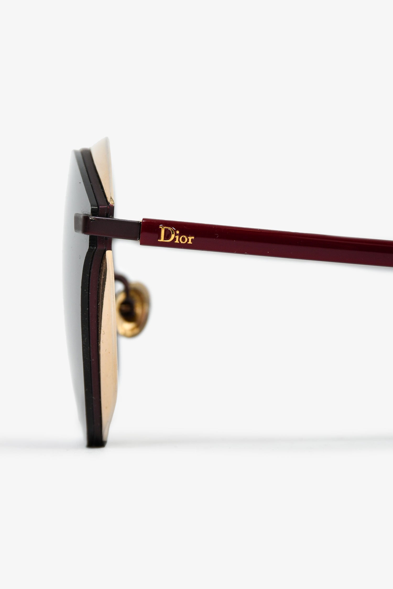 Refresh availabilityChristian Dior Burgundy 'DiorMurmure' Sunglasses. Adjustable nose pads. Gold-tone hardware.