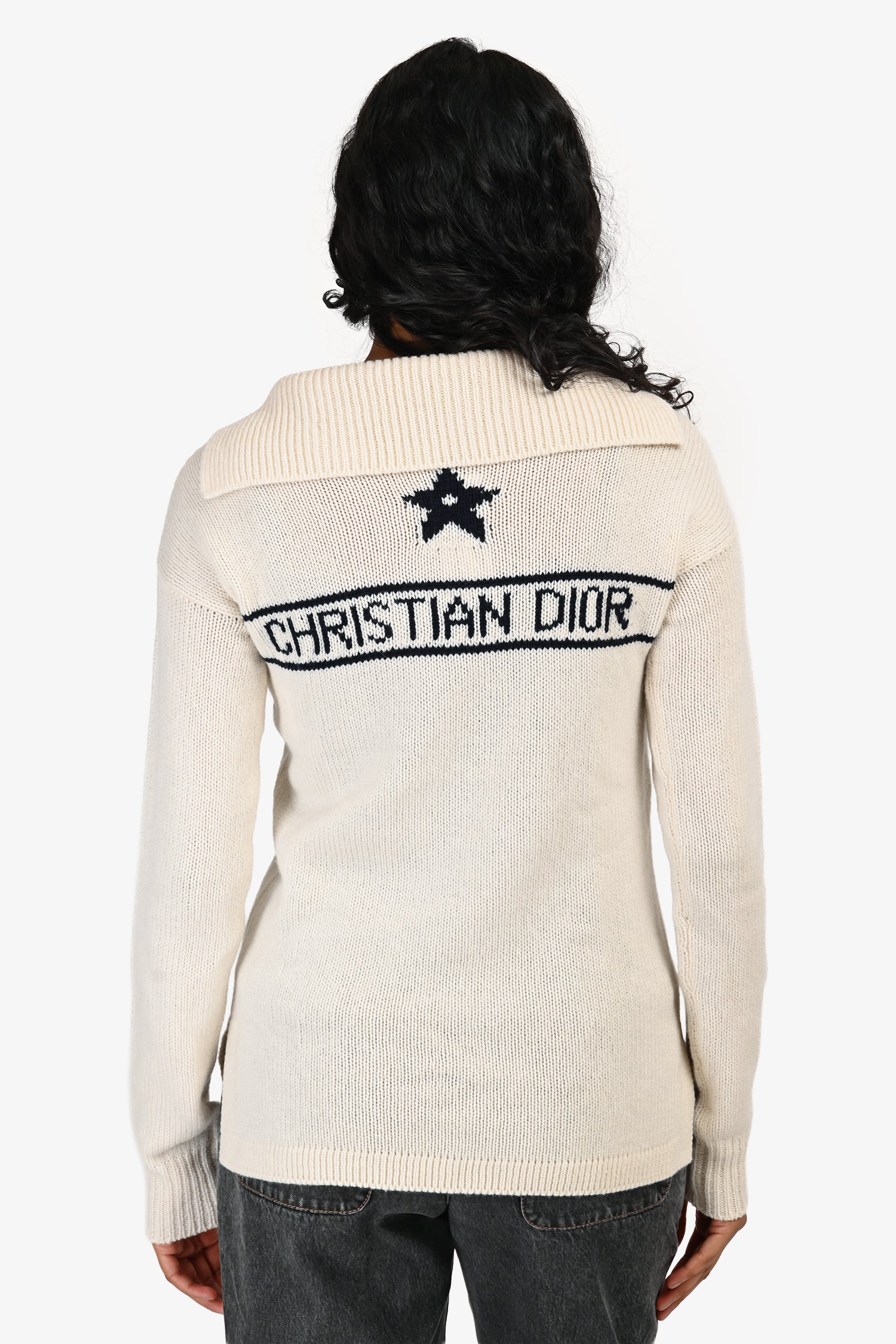 Christian Dior Cream/Navy Blue Cashmere Logo Sweater Size 4 US