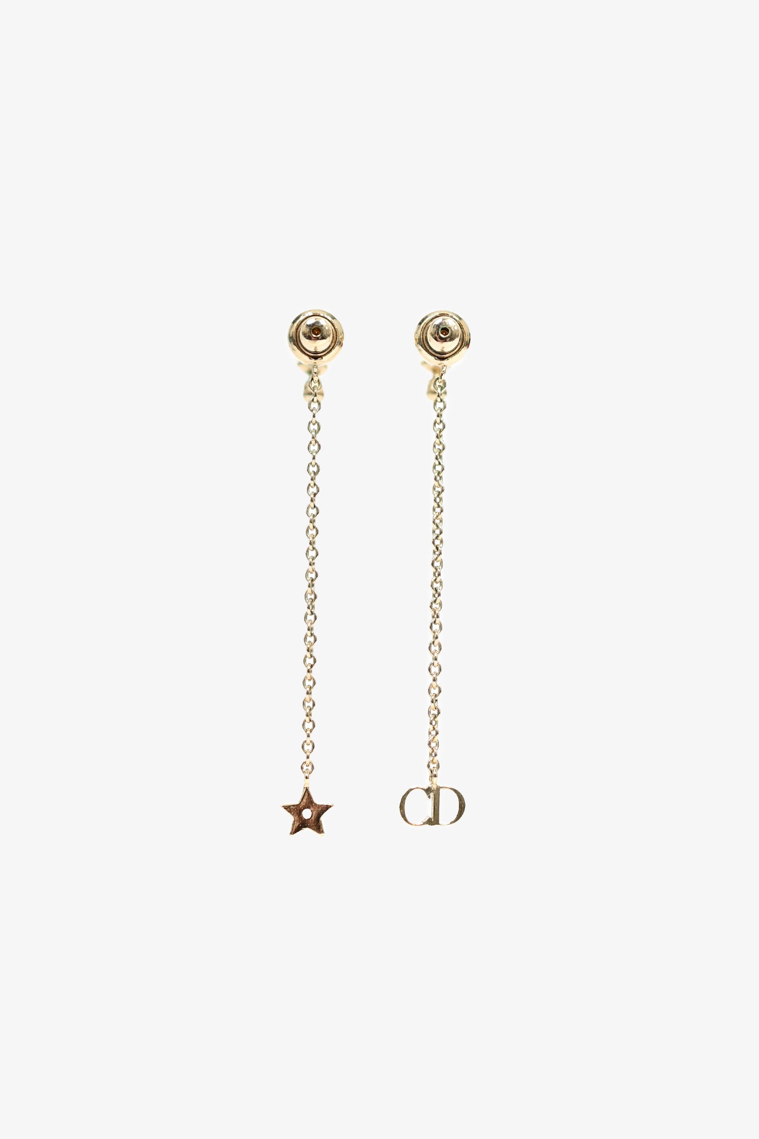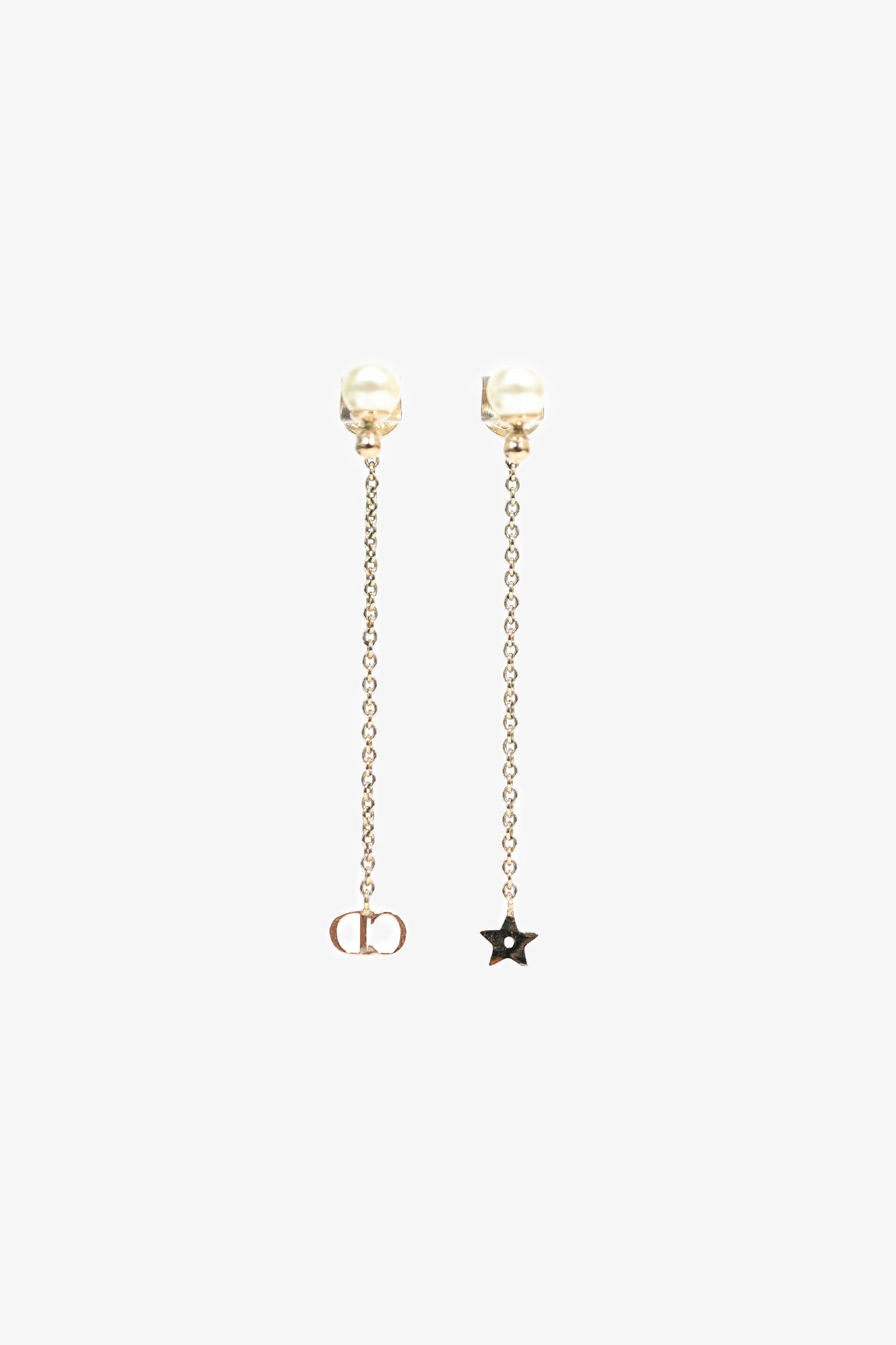 Refresh availabilityChristian Dior Faux Pearl CD/Star Drop Stud Earrings. 2 faux pearls. Chain drop with a 'CD' and star charm. Push-pin closure.