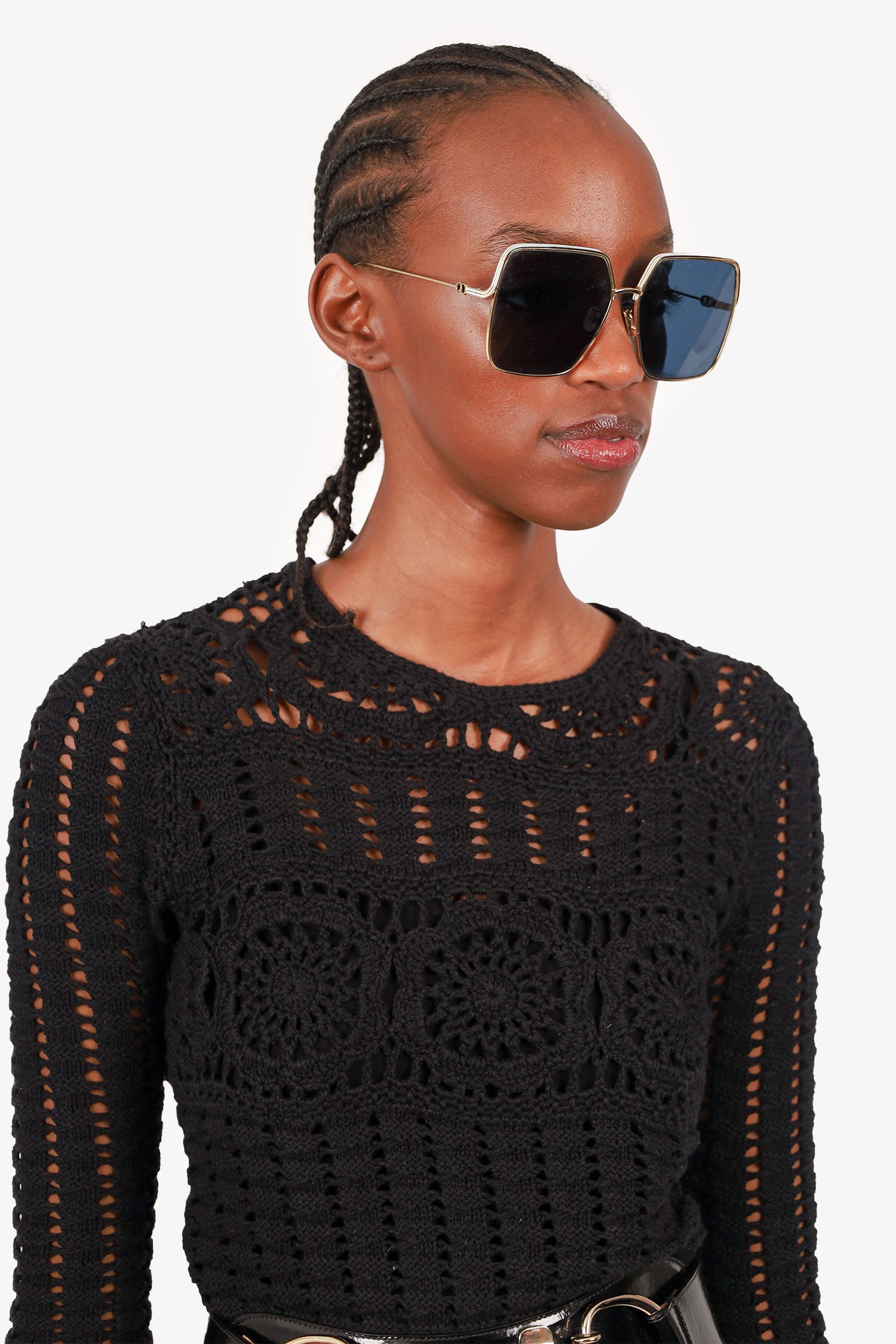 Refresh availabilityChristian Dior Gold Framed Oversized Sunglasses. Adjustable nose-pads. Gold-toned hardware.