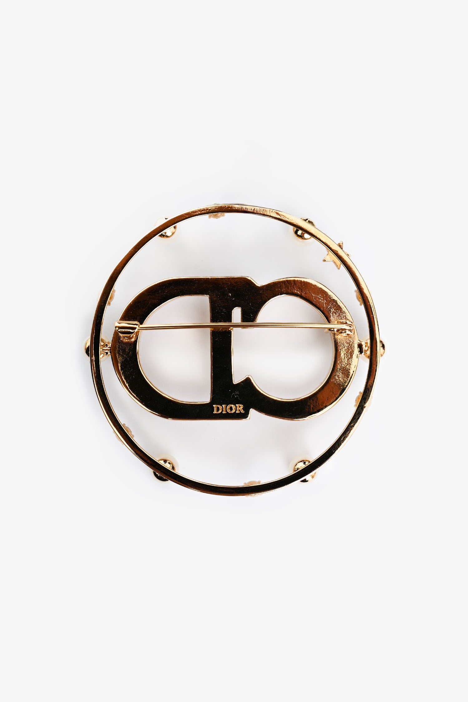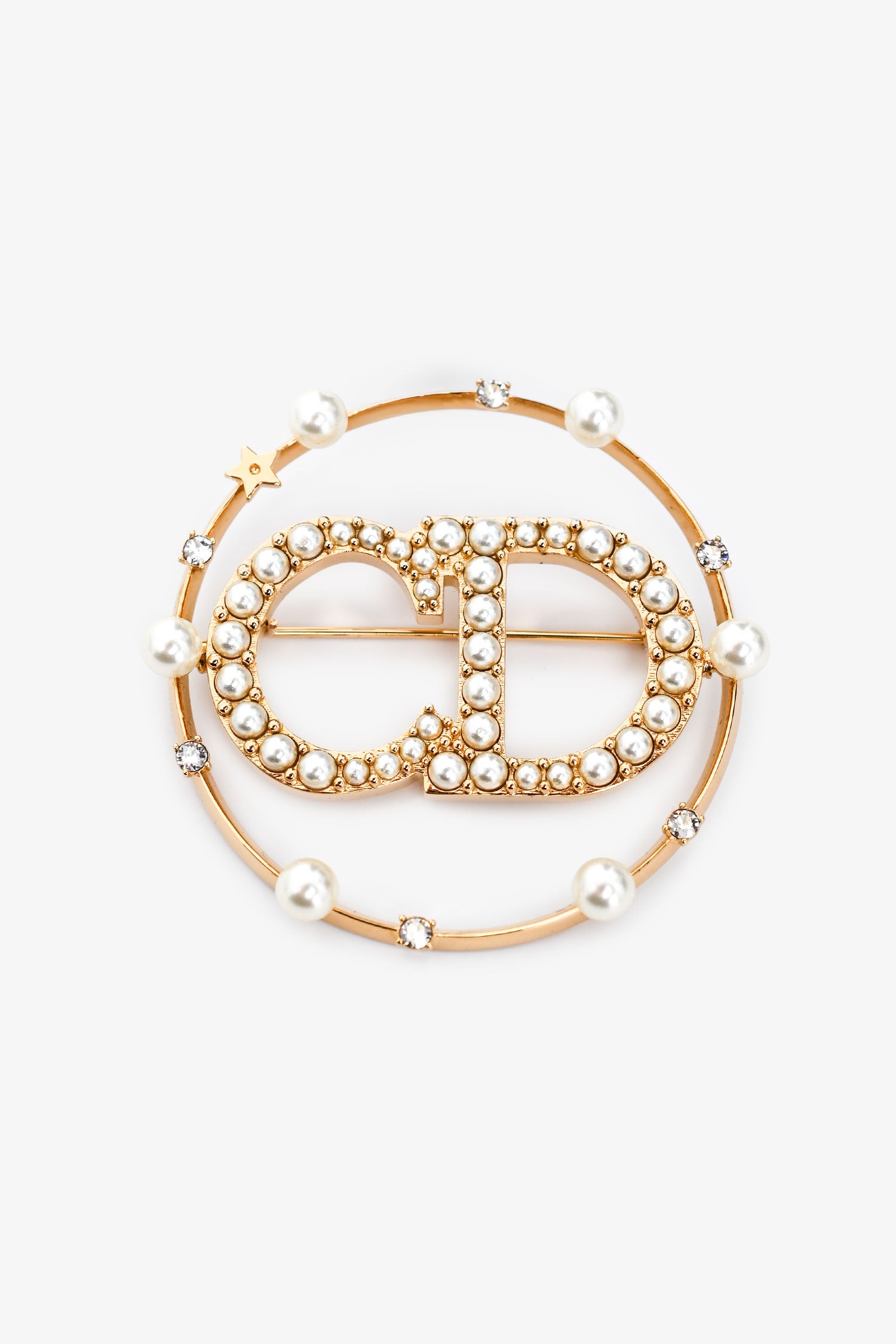 Refresh availabilityChristian Dior Gold Tone Faux Pearl Crystal Claire D Lune Brooch. Clasp closure. Gold-tone hardware.