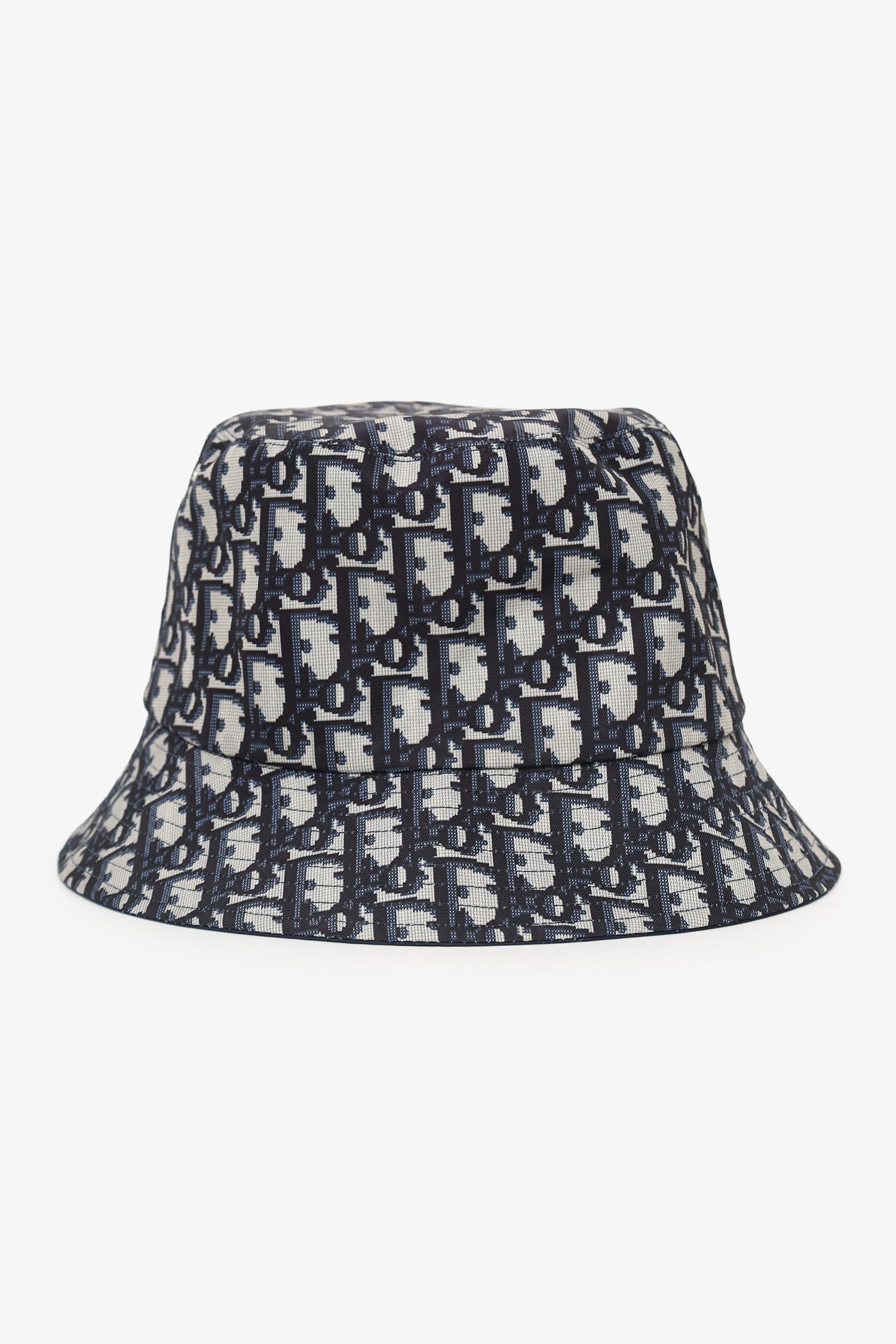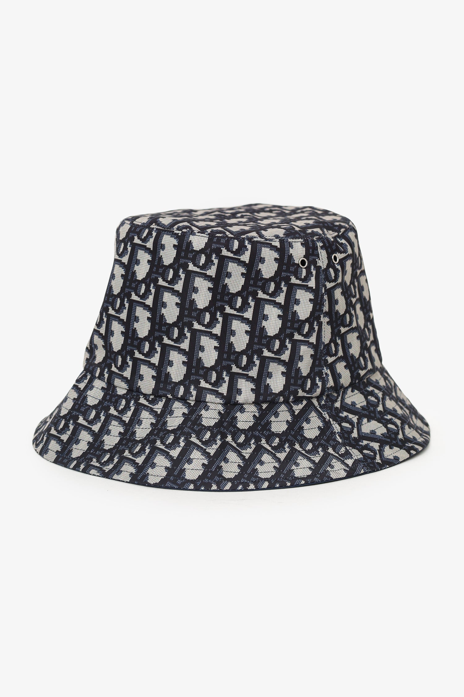 Refresh availabilityChristian Dior Navy Blue Oblique Reversible Bucket Hat. Slip-on. Silver-tone hardware. Tonal stitching.
