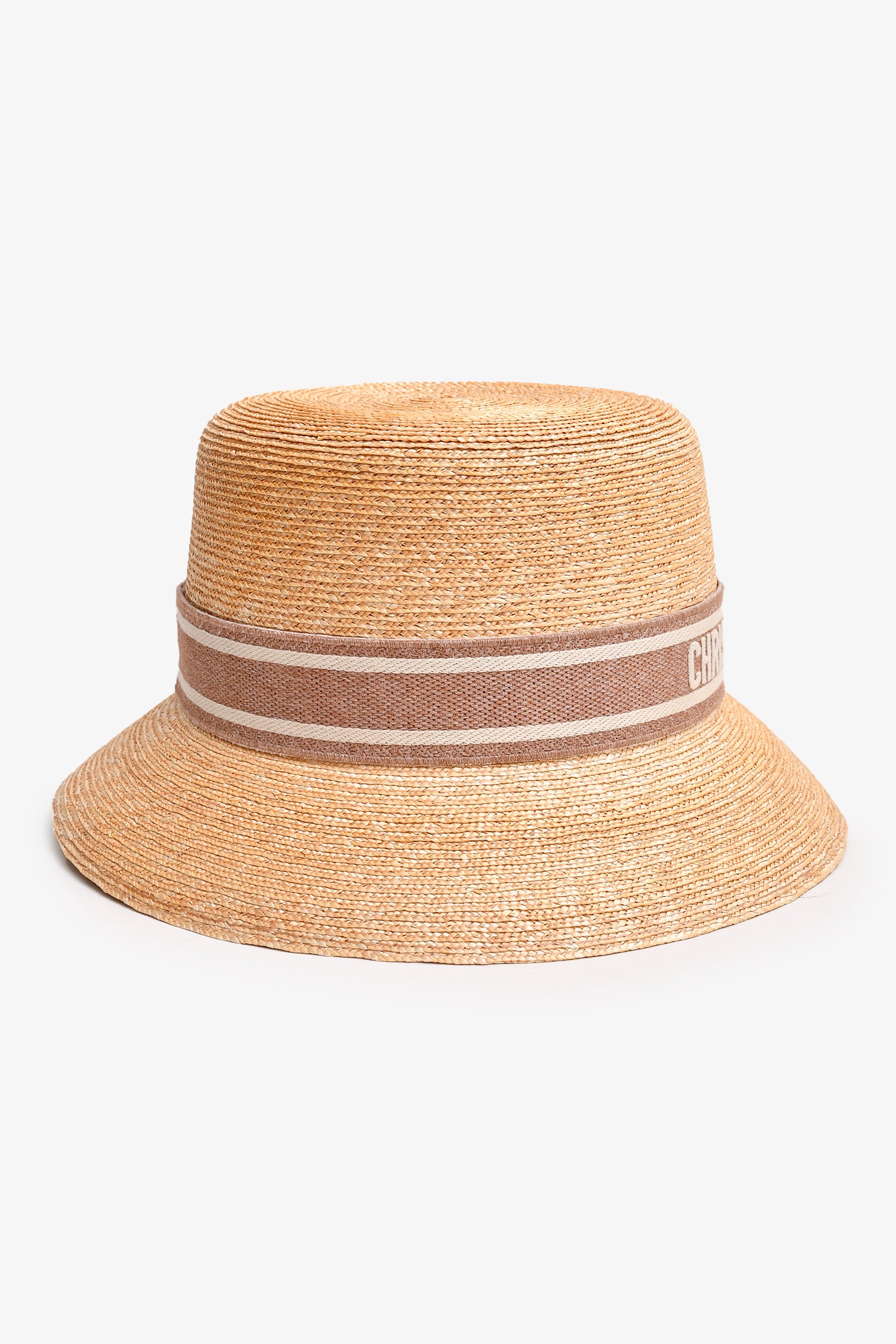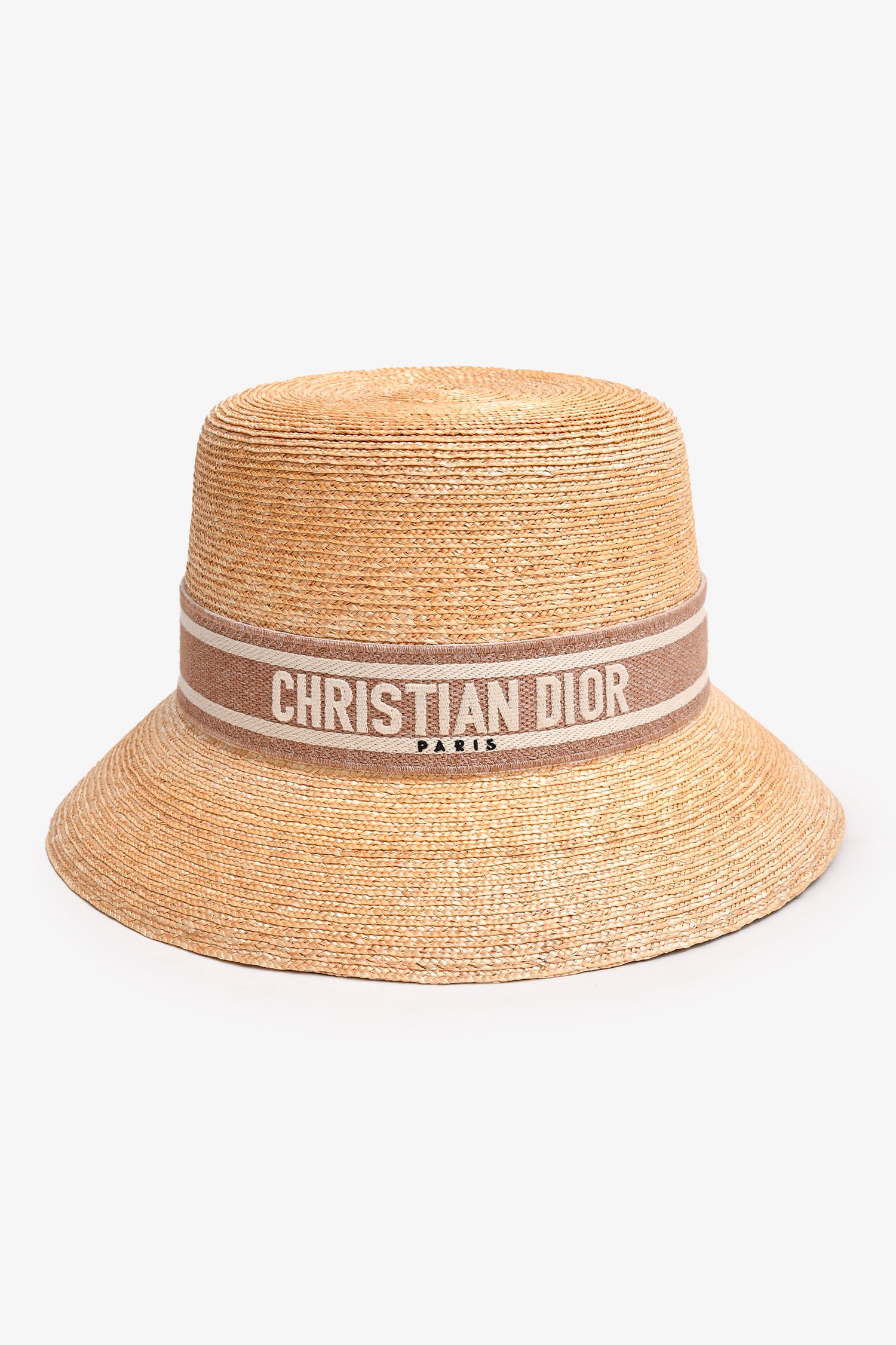 Refresh availabilityChristian Dior Pink Logo Straw Brim Sun Hat. Tonal stitching.
