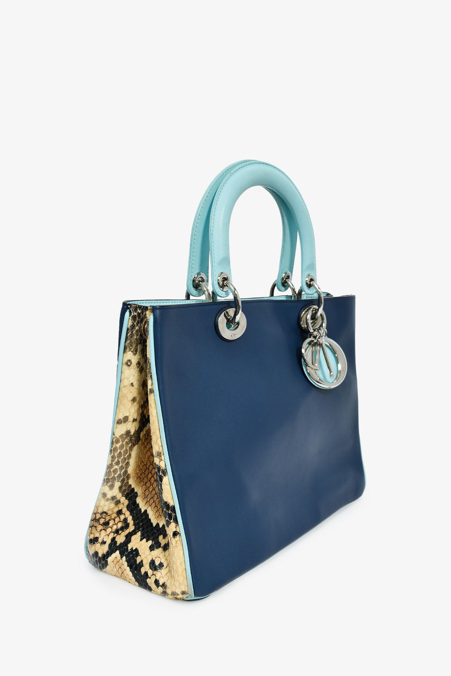 Christian Dior Python Navy/Light Blue Leather 'Diorissimo' Top Handle with Strap and Pouch
