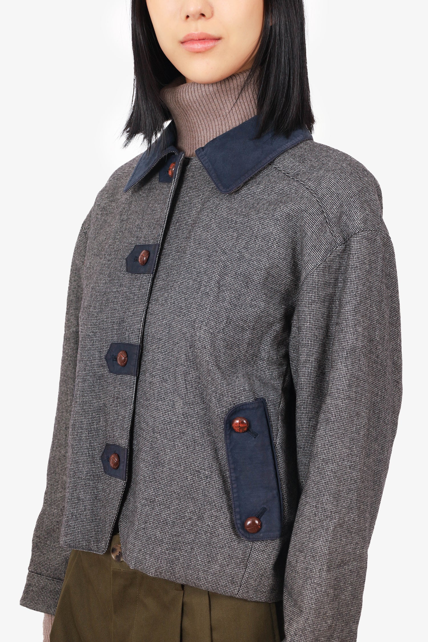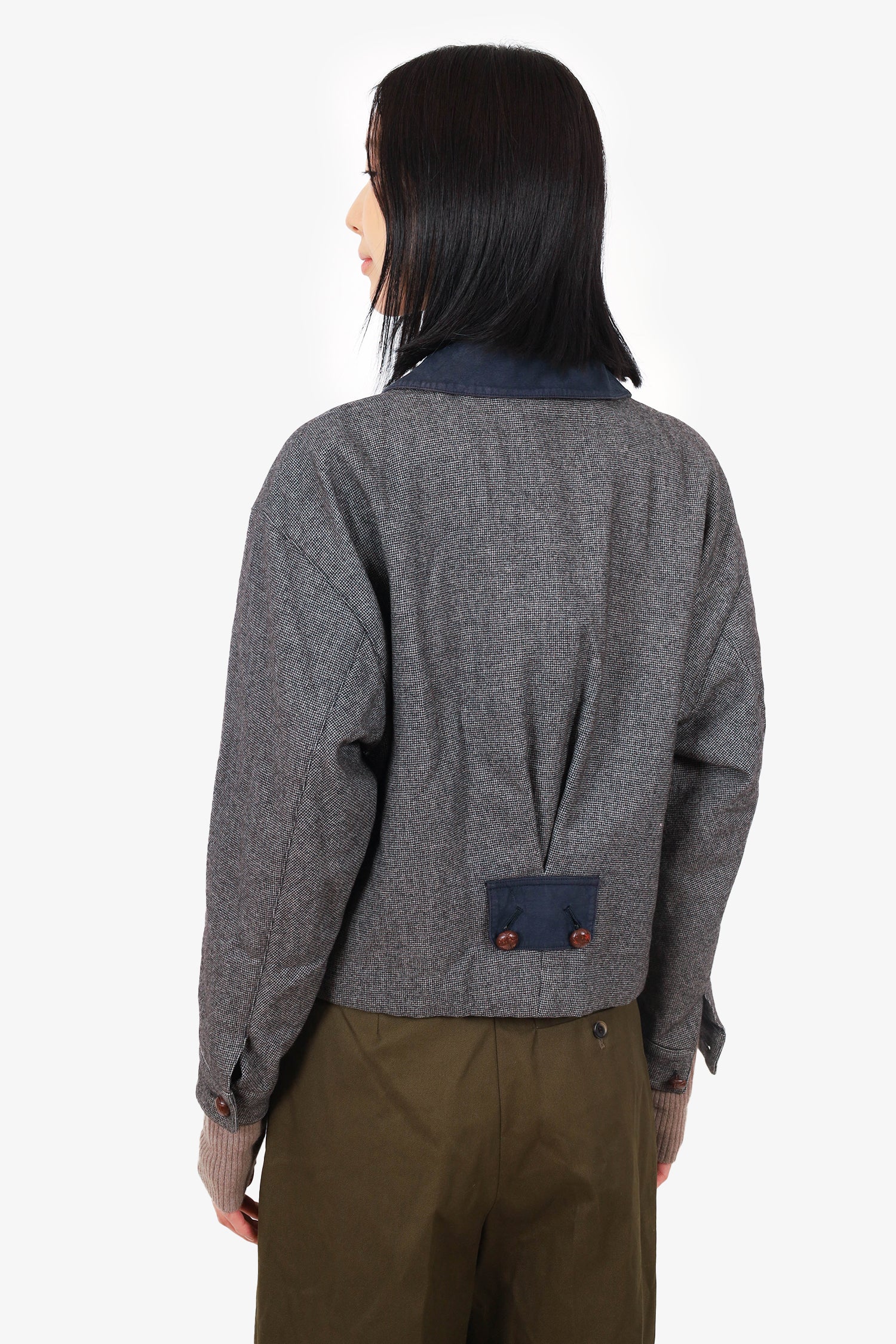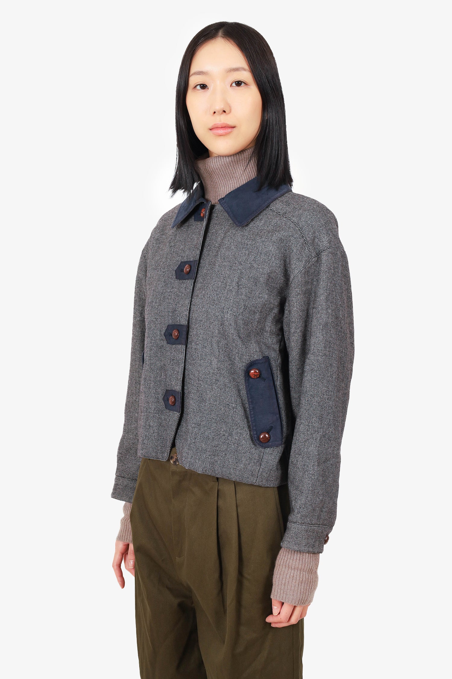 Christian Dior Sports Black/White/Navy Check Jacket with Suede Collar Size M