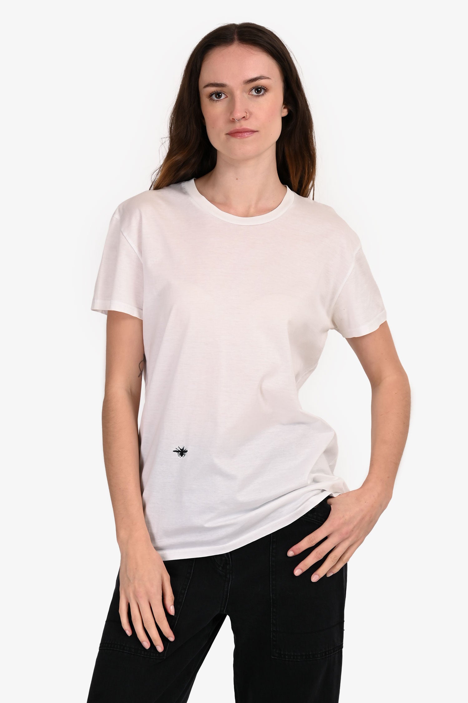 Refresh availabilityChristian Dior White Cotton Embroidered Bee T-Shirt. Pull-on. Round neckline. Tonal stitching.