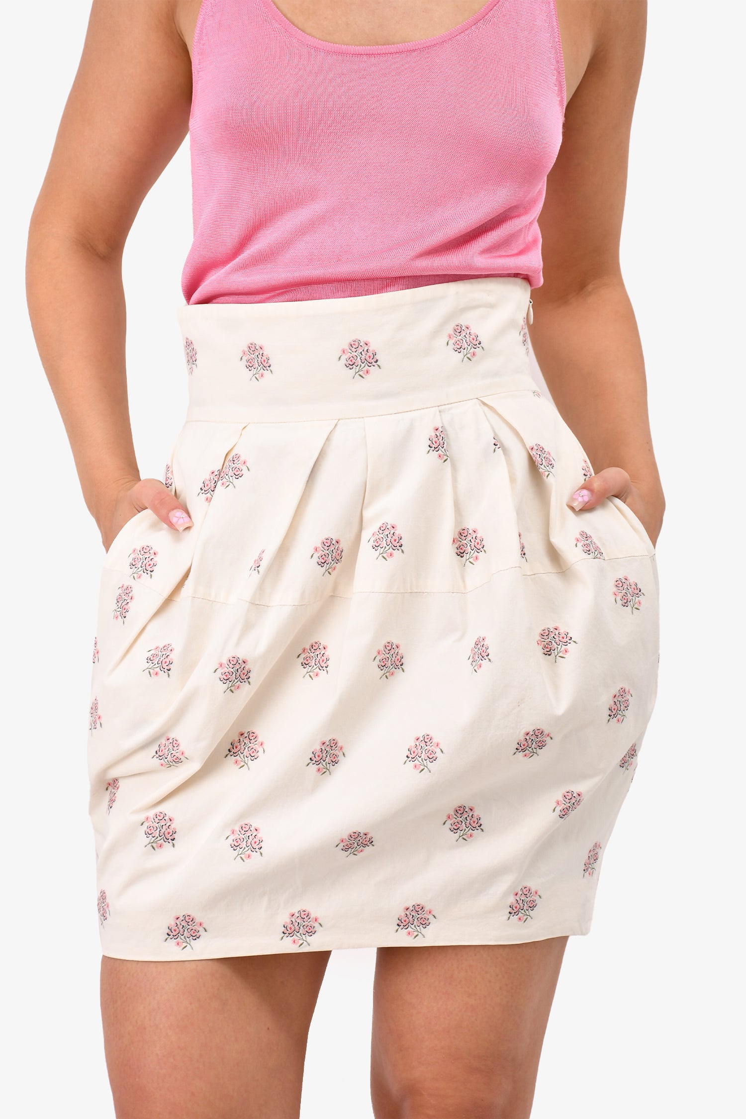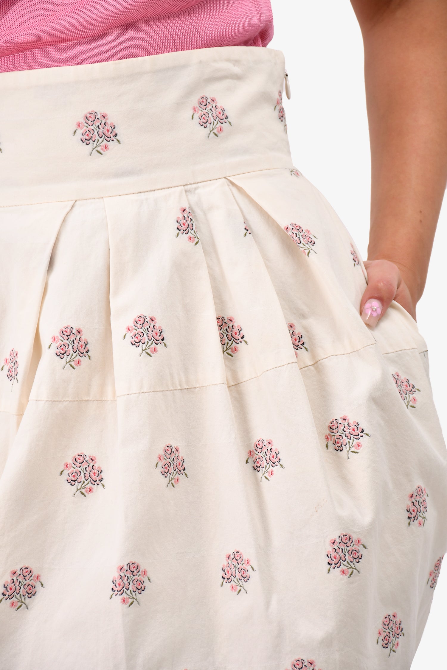 Refresh availabilityChristian Dior White/Pink Floral Embroidered Tapered Skirt. Side zipper closure. Pleated at the top. Mid length. Tonal stitching.