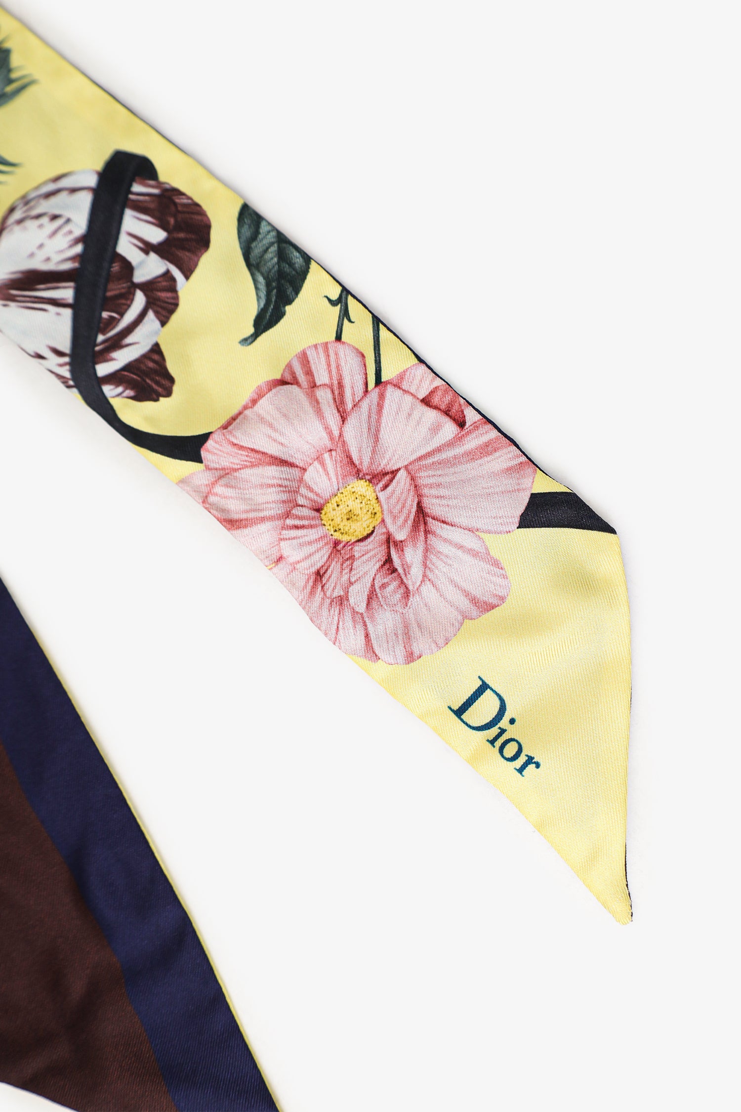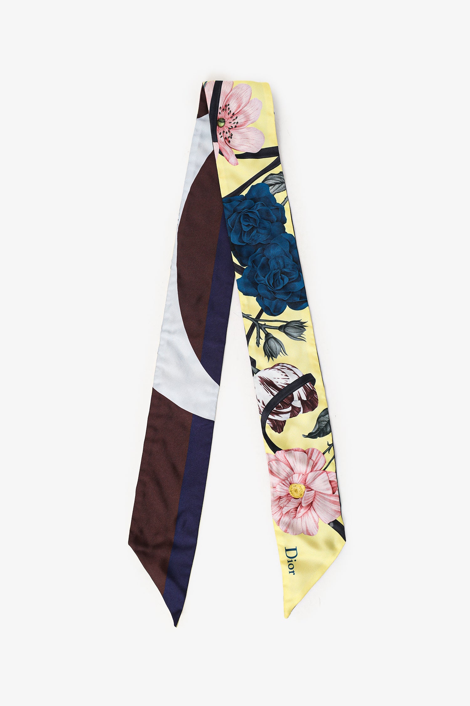 Refresh availabilityChristian Dior Yellow/Multicolour Silk Floral Print Twilly. Tonal stitching.