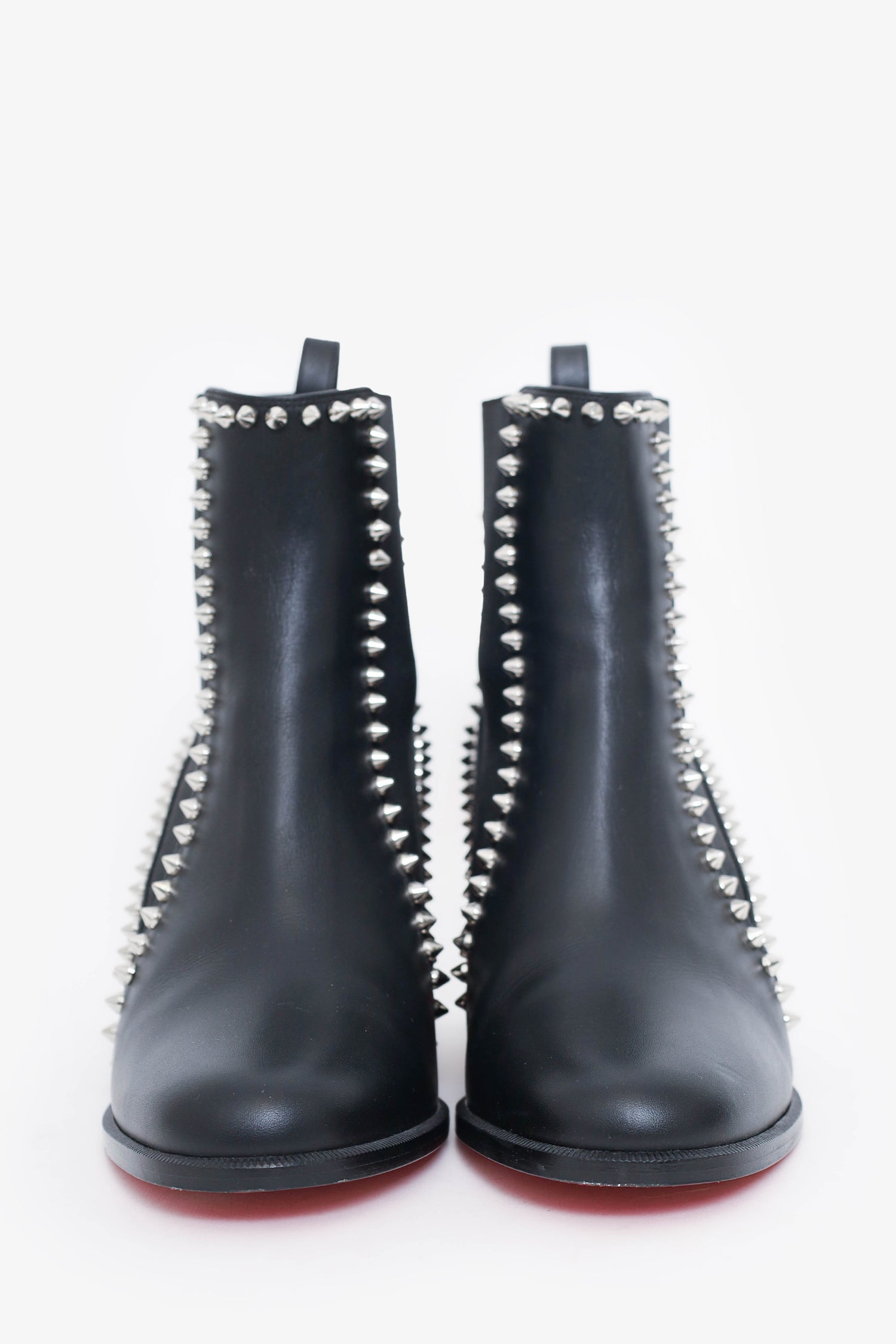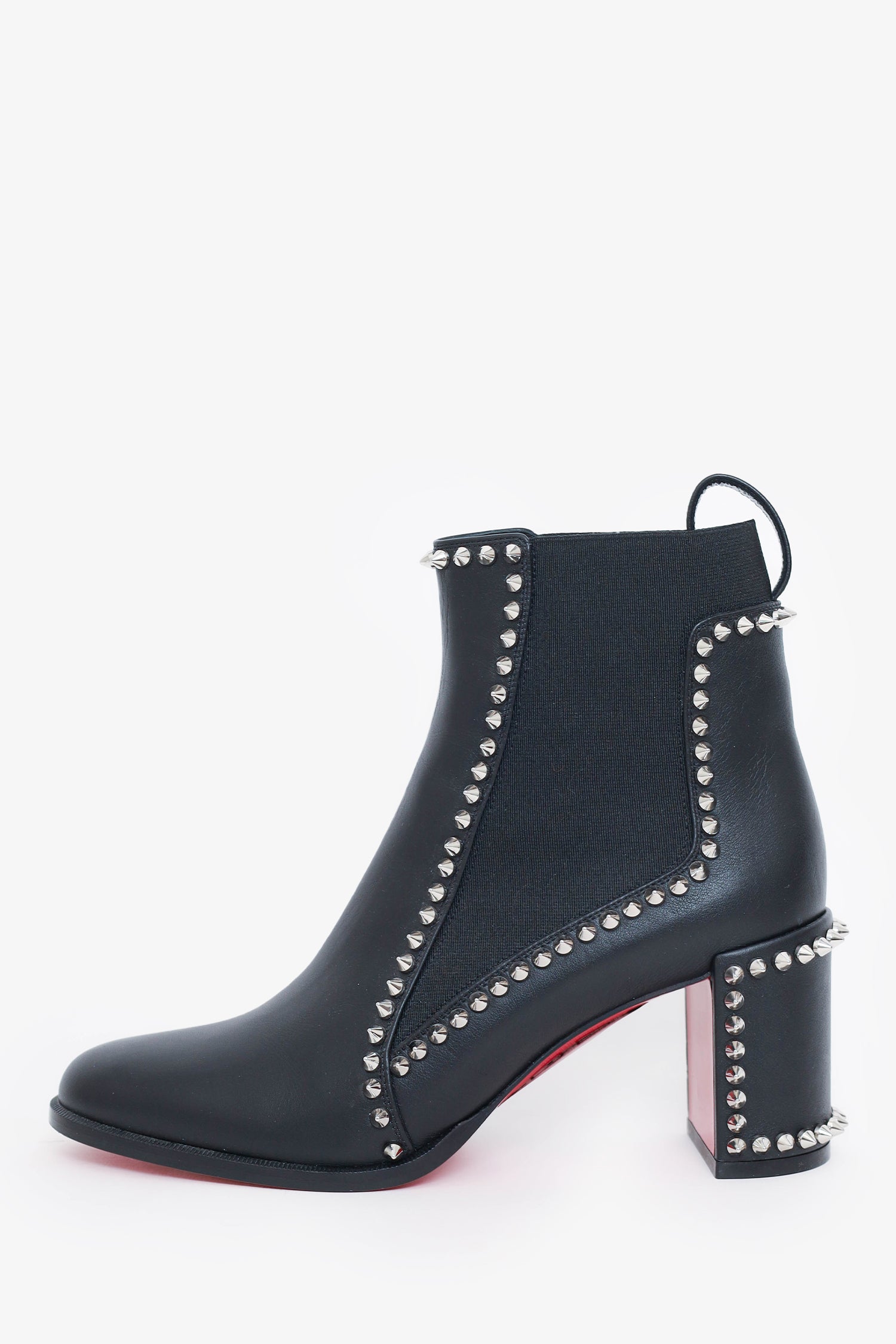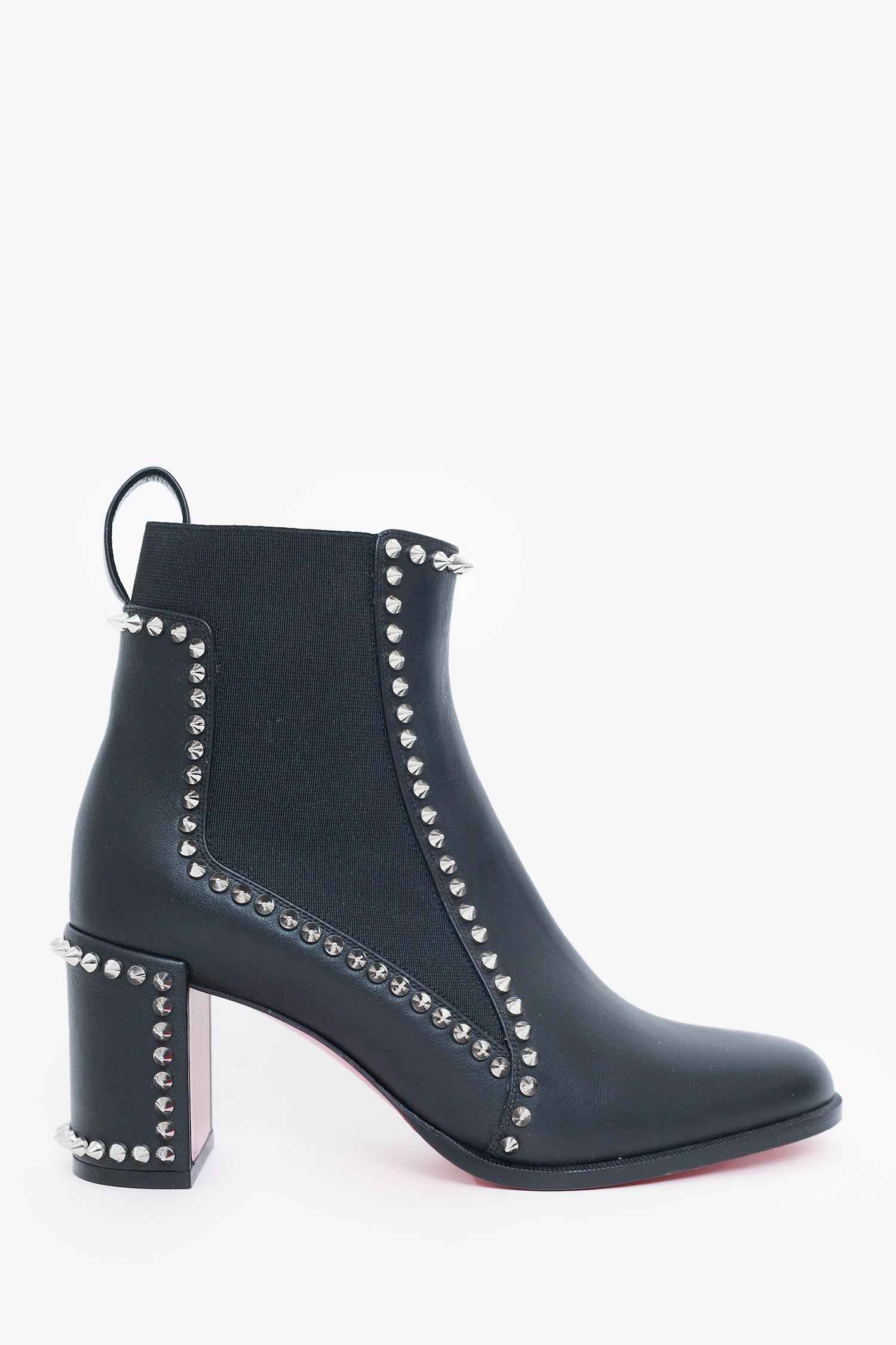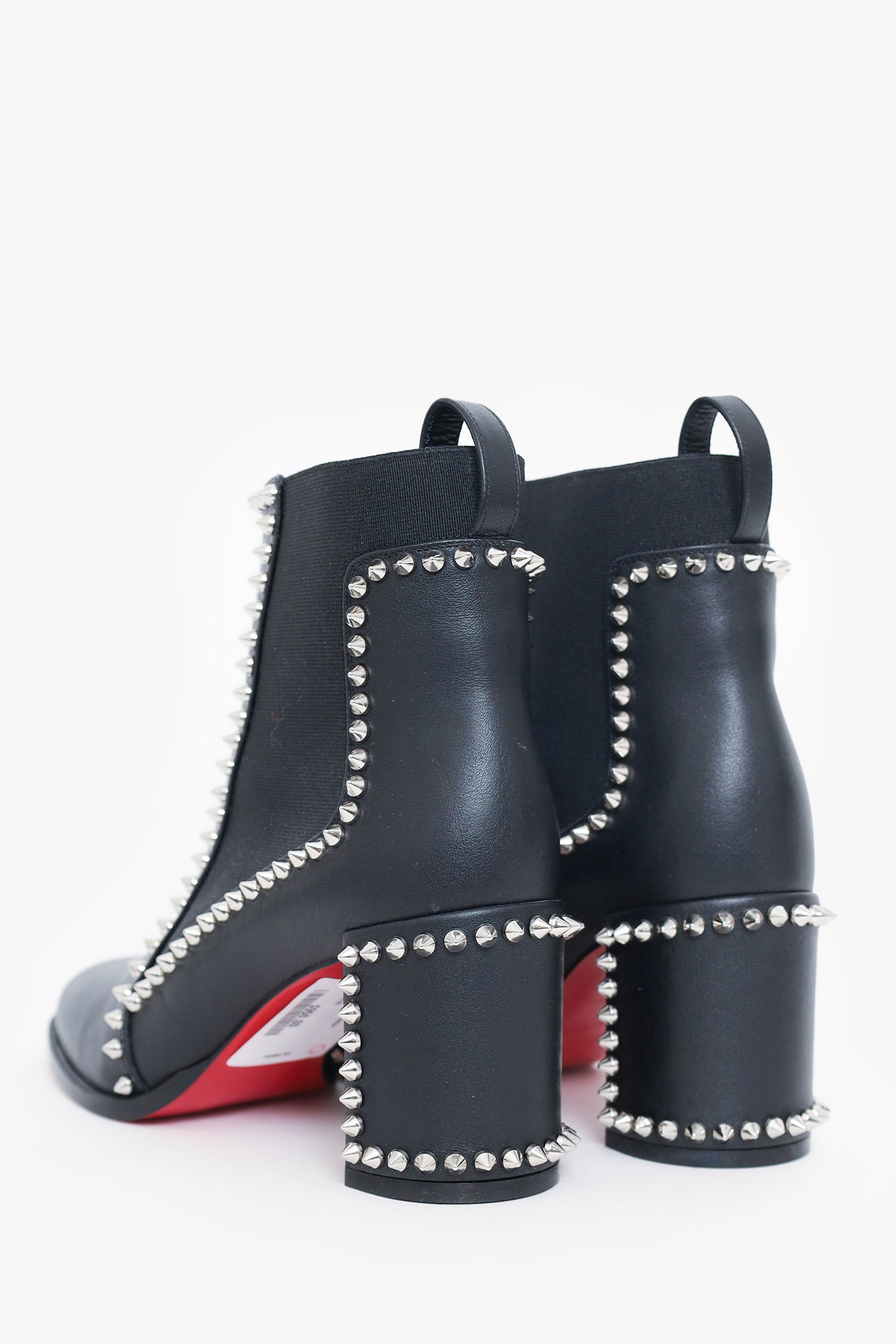Refresh availabilityChristian Louboutin Black Leather Studded Boots. Pull-on. Pull tabs on rear. Round toe. Silver-tone hardware. Tonal stitching.