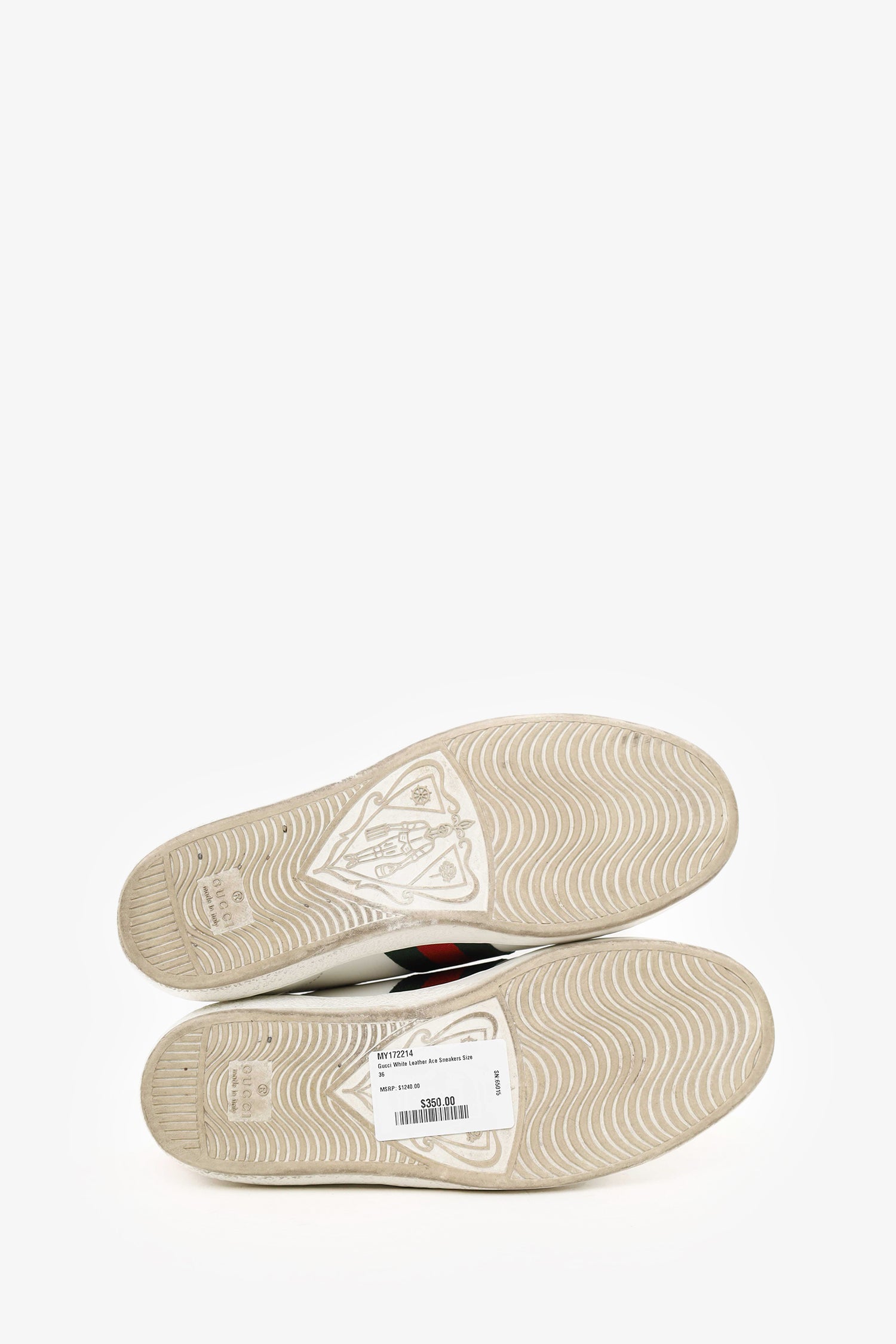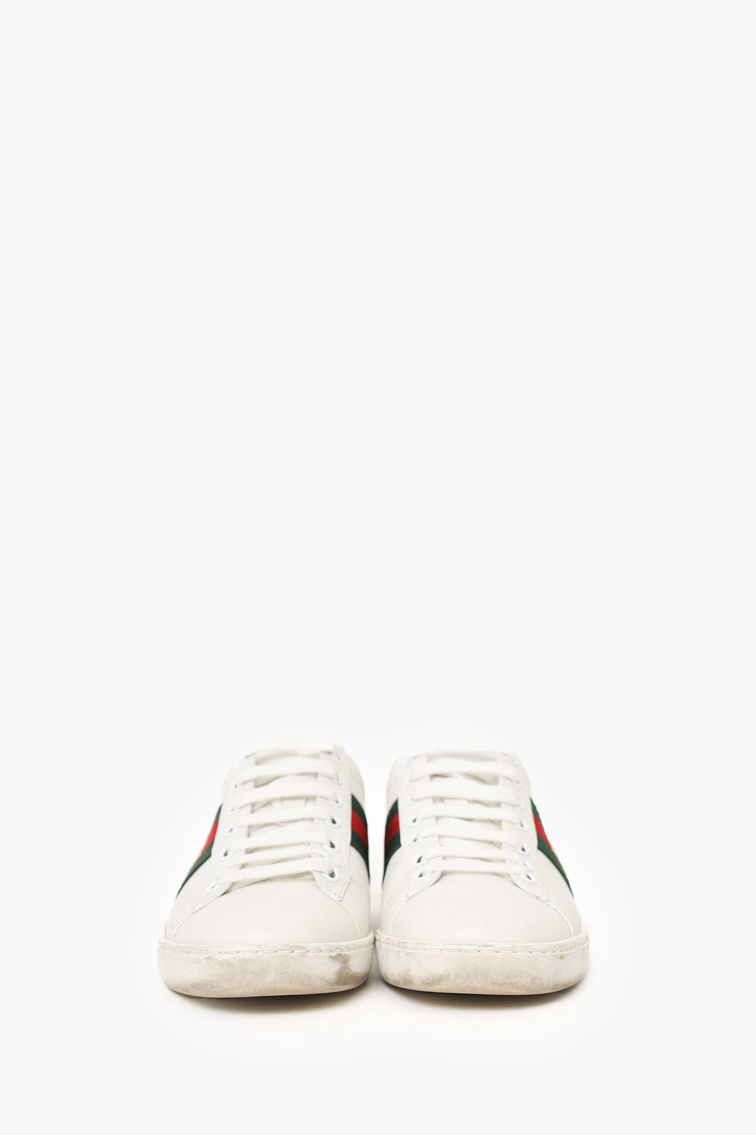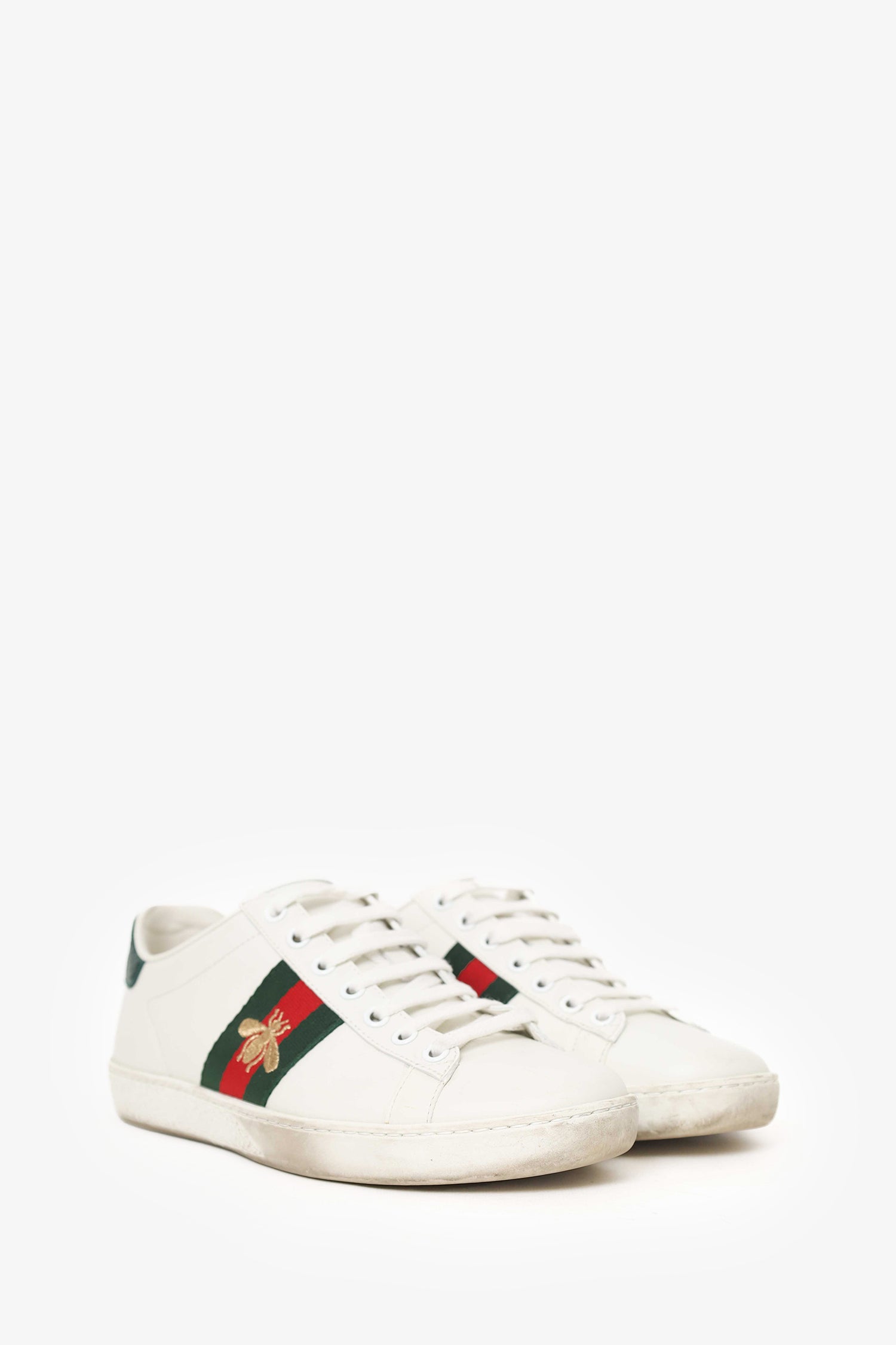 Refresh availabilityGucci White Leather Ace Sneakers. Pull-on. Round toe. Lace up closure. Gold-tone embroidering. Tonal stitching.