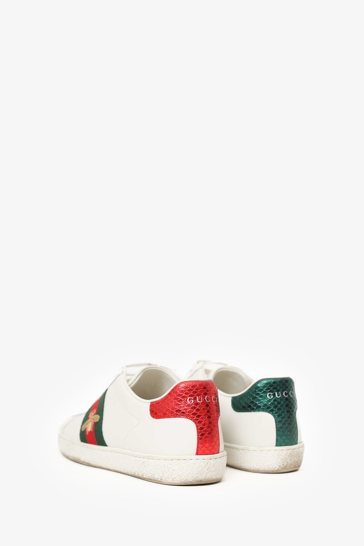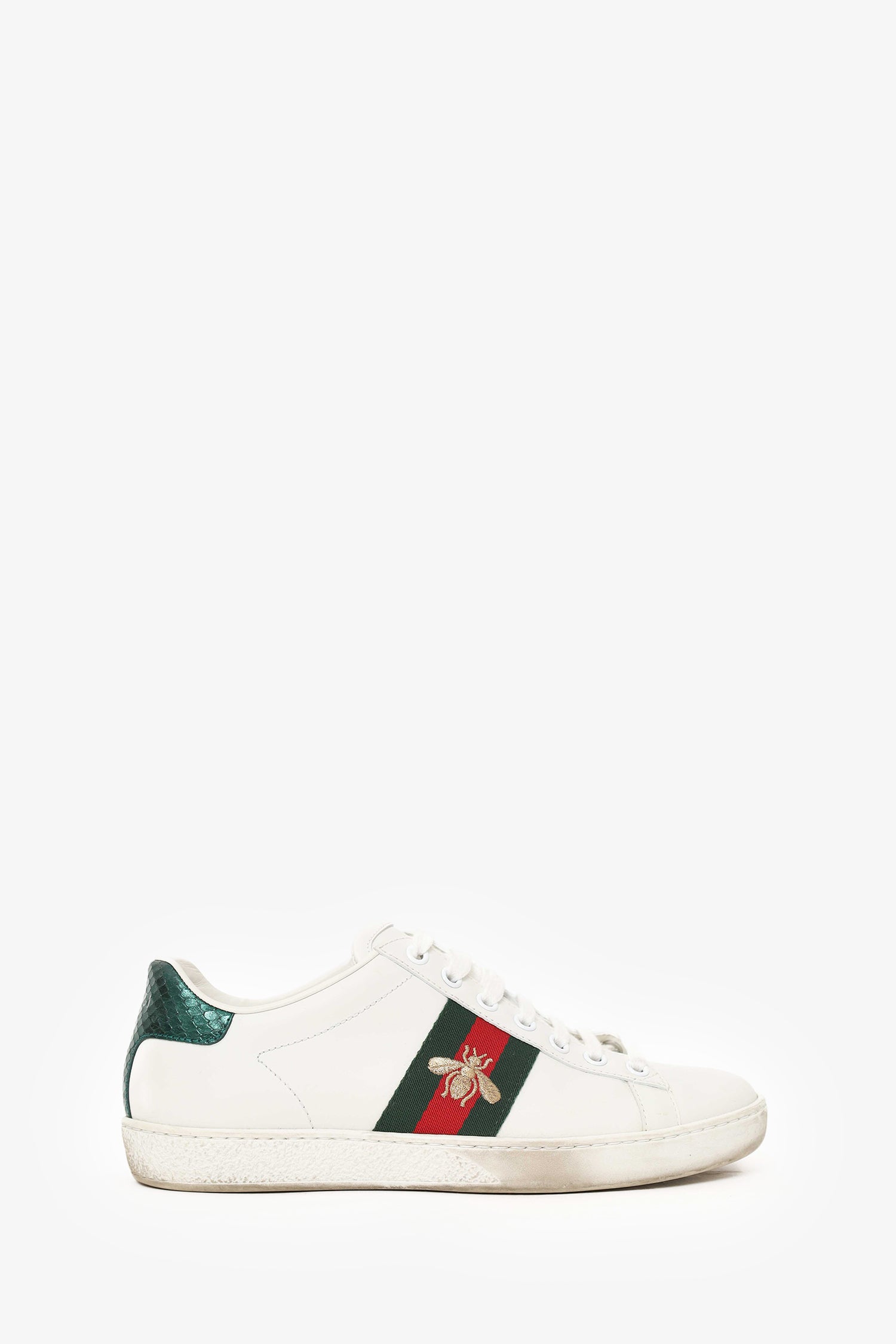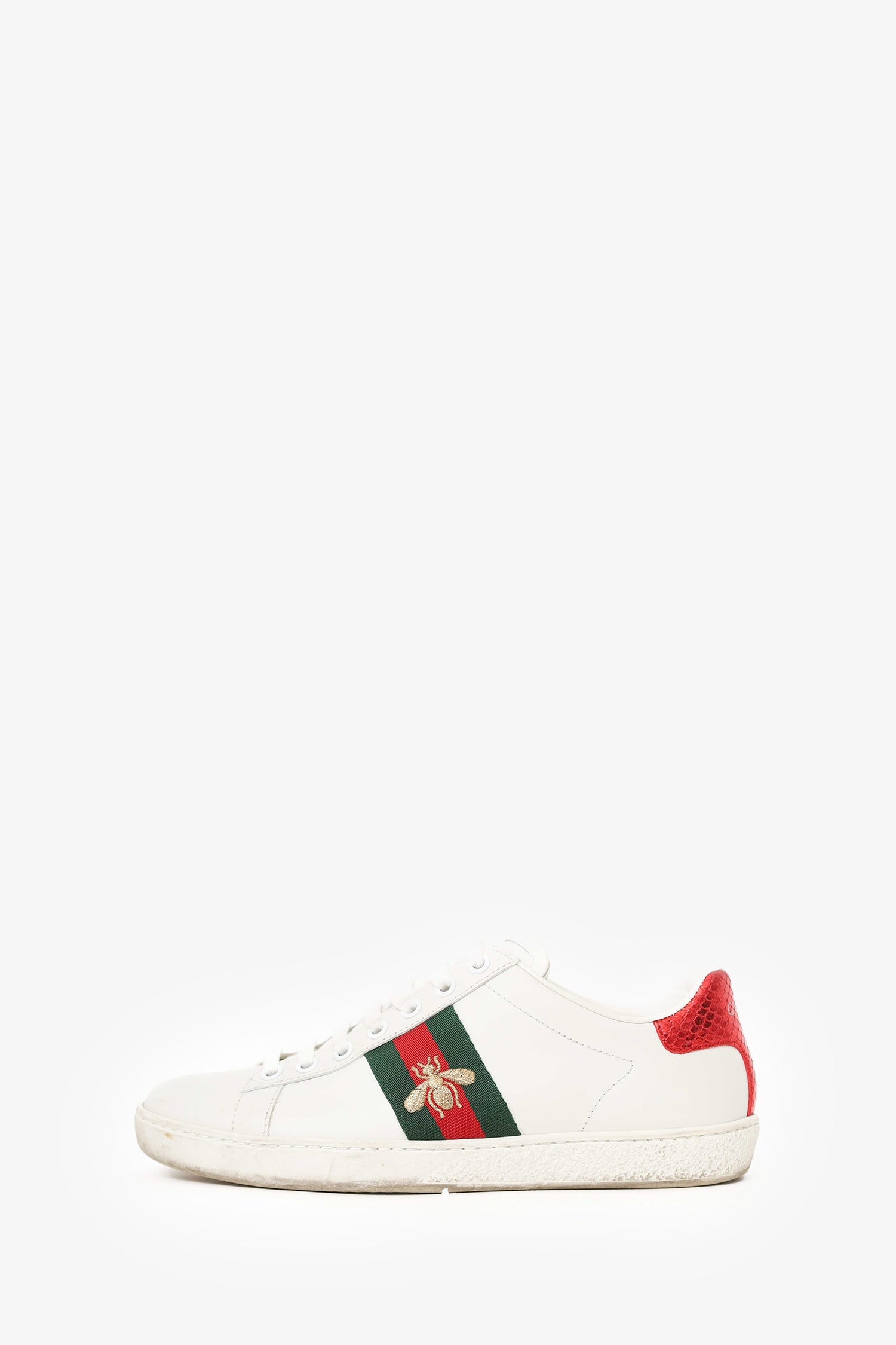 Refresh availabilityGucci White Leather Ace Sneakers. Pull-on. Round toe. Lace up closure. Gold-tone embroidering. Tonal stitching.