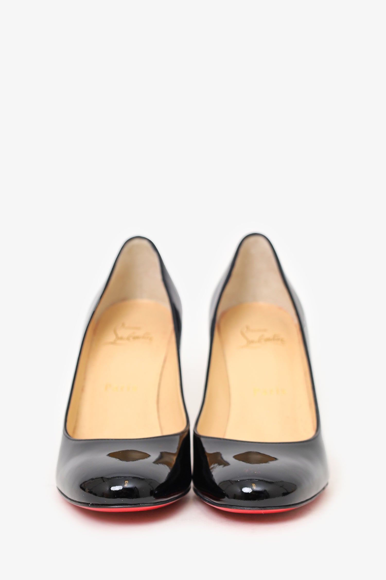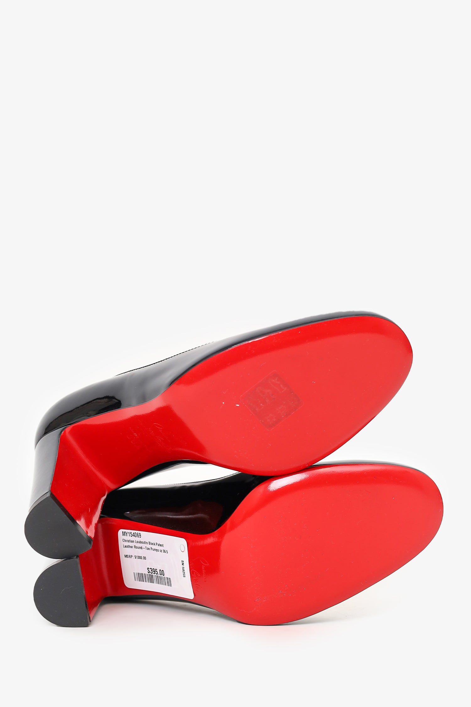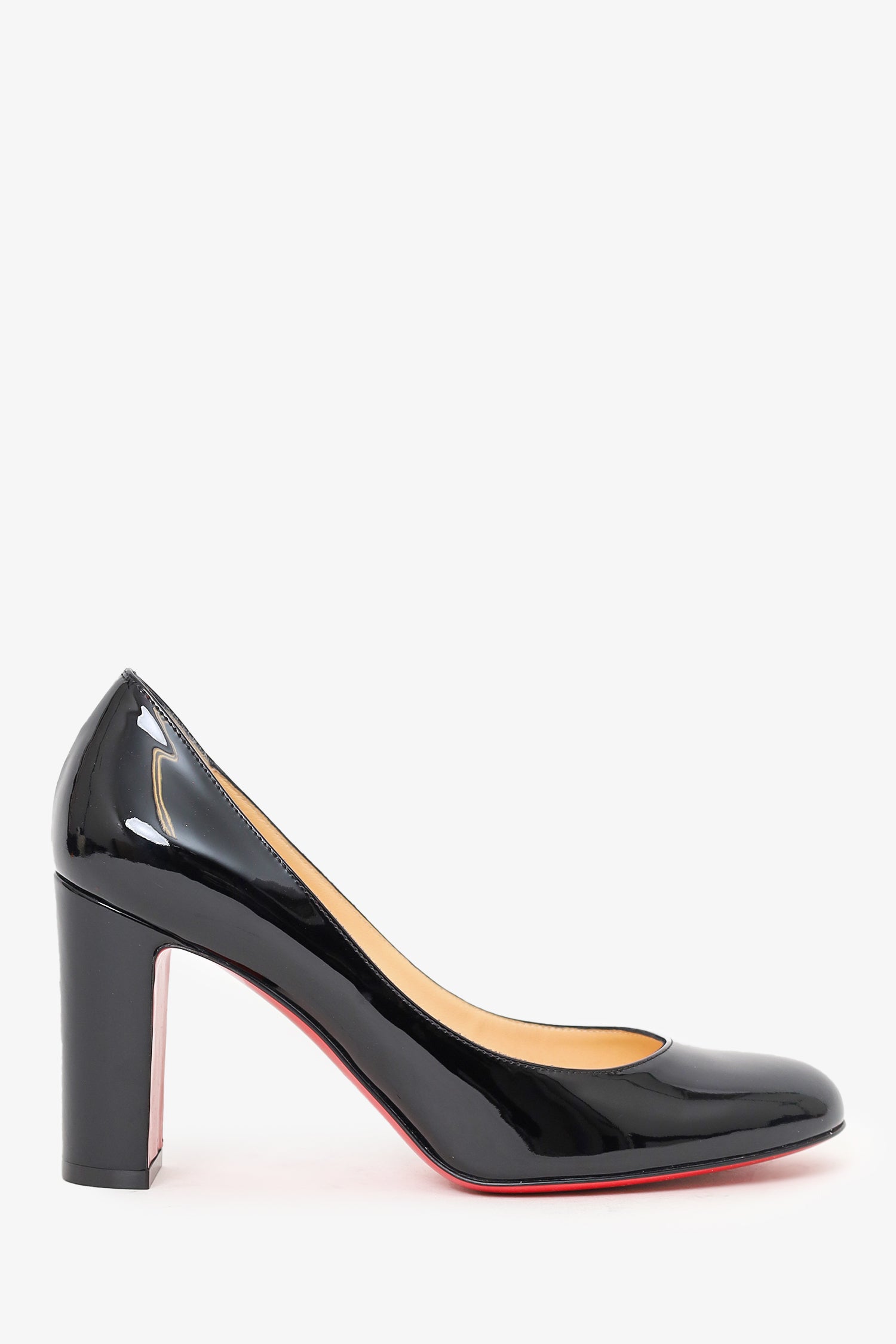 Refresh availabilityChristian Louboutin Black Patent Leather Round-Toe Pumps. Slip-on. Round toe. Tonal stitching.