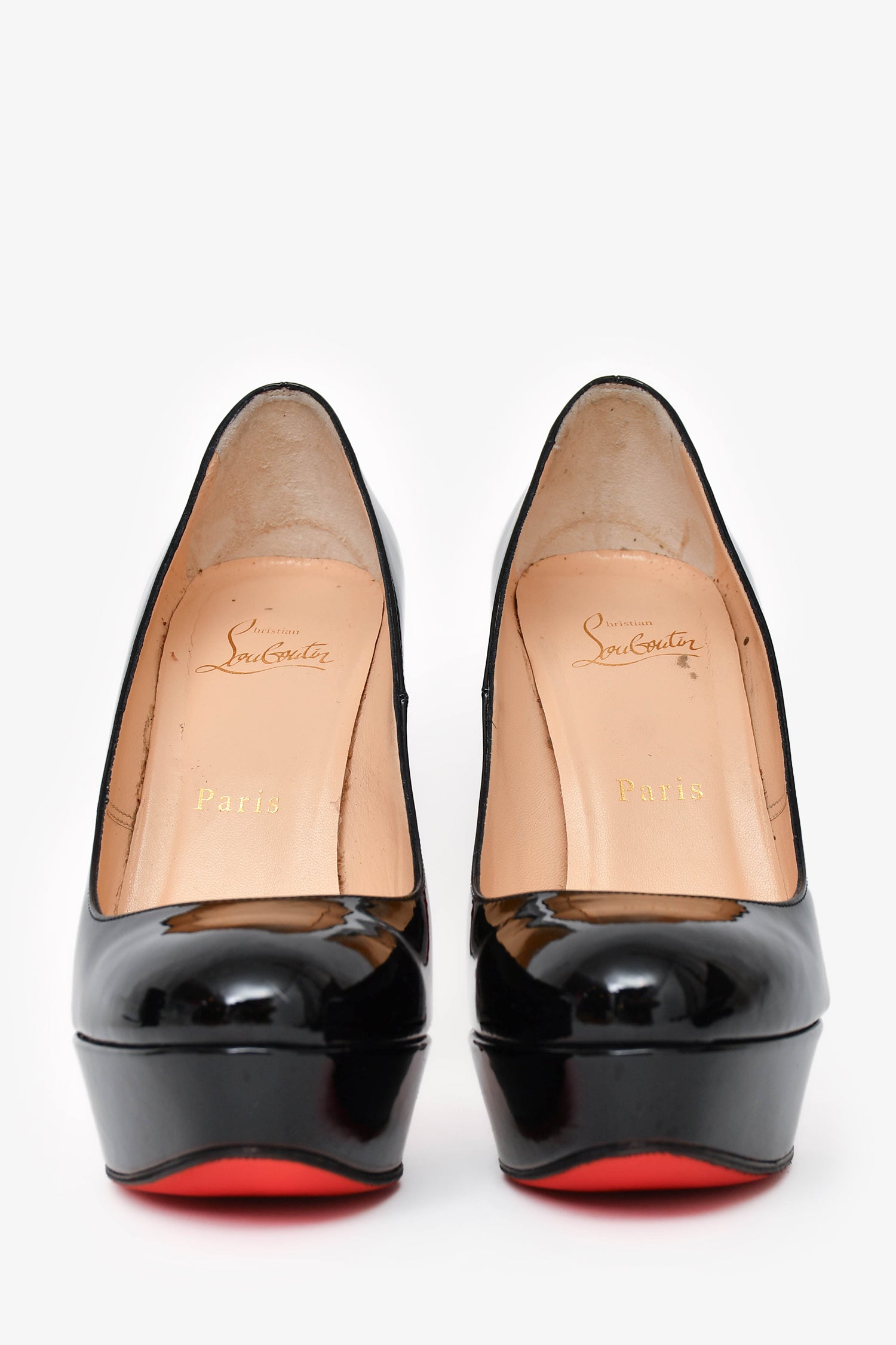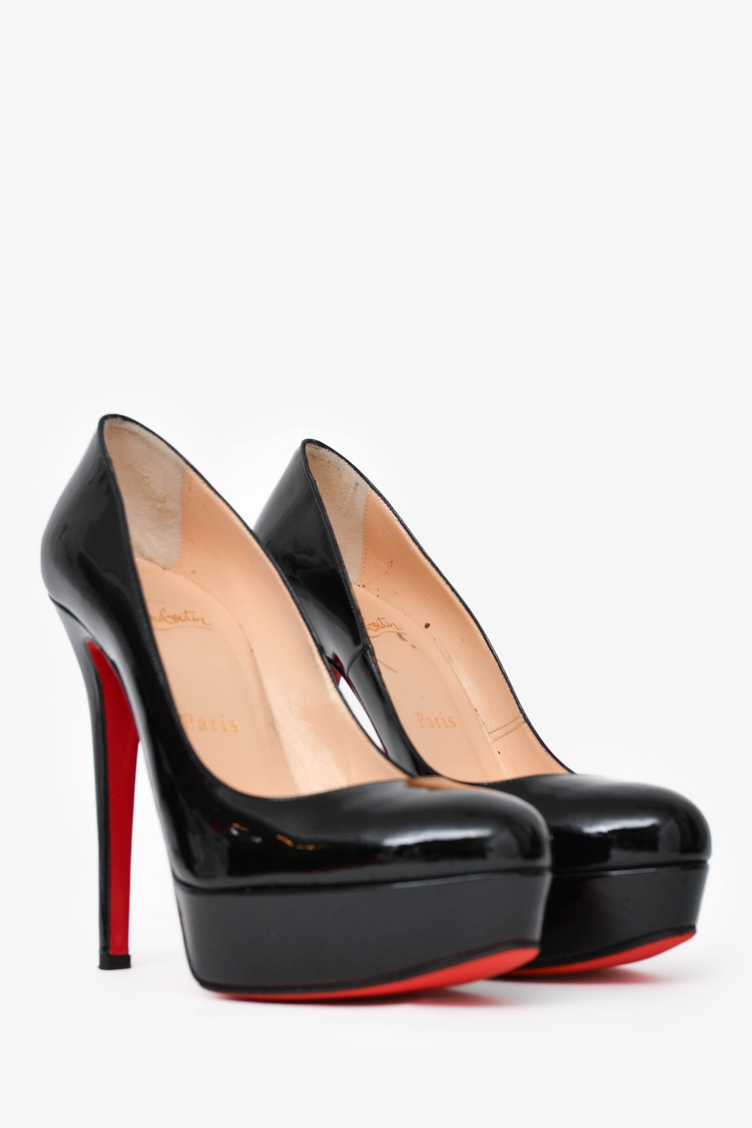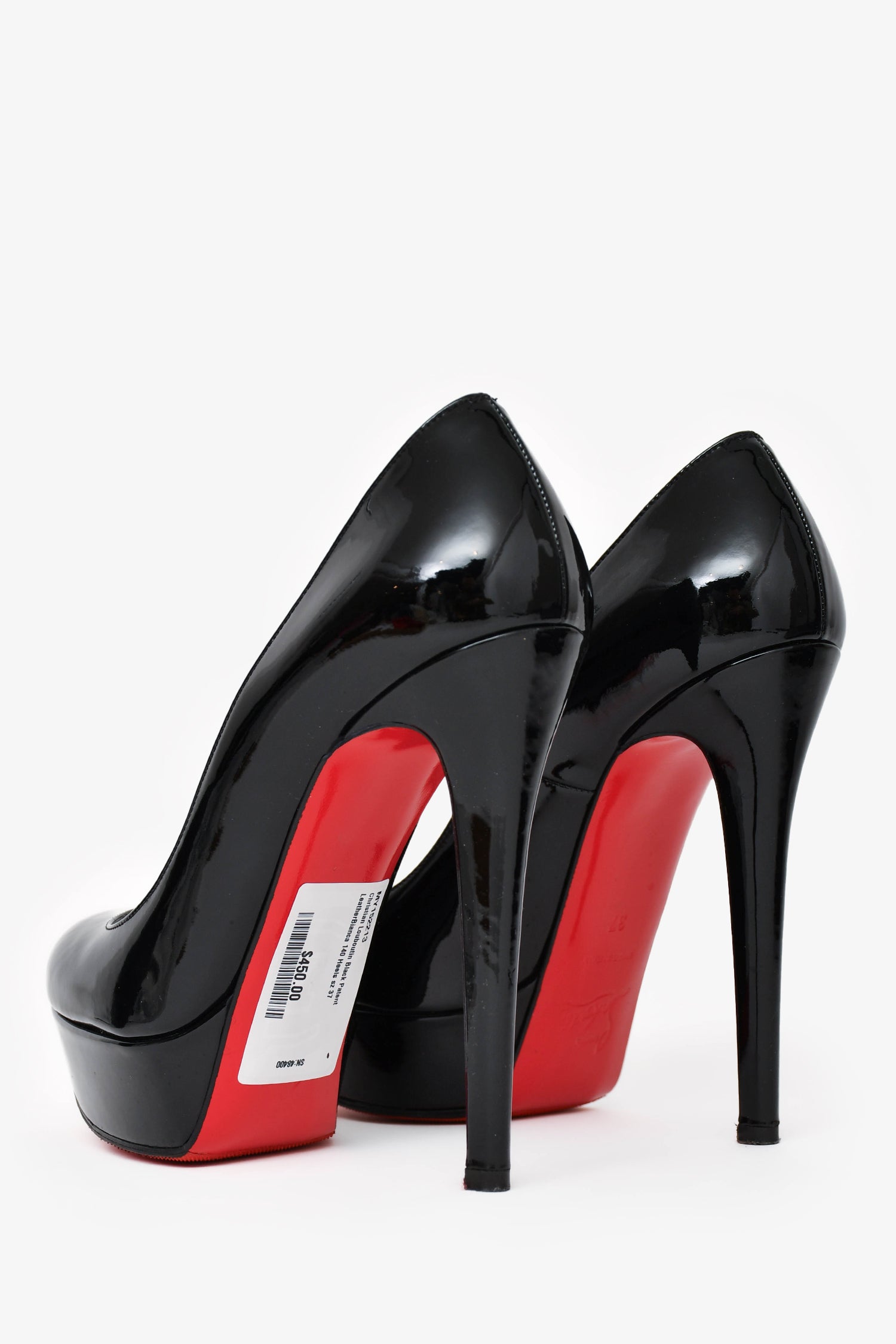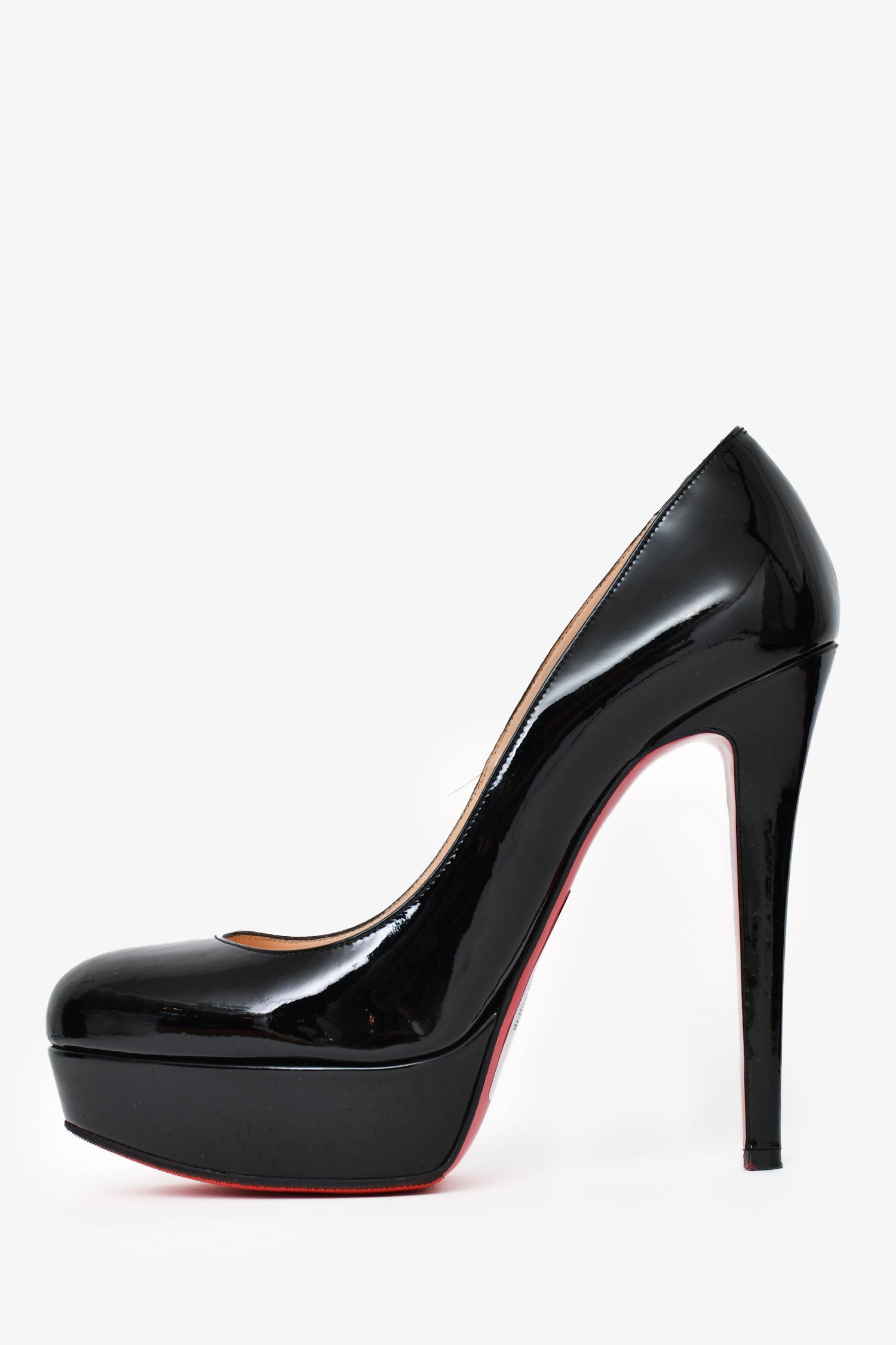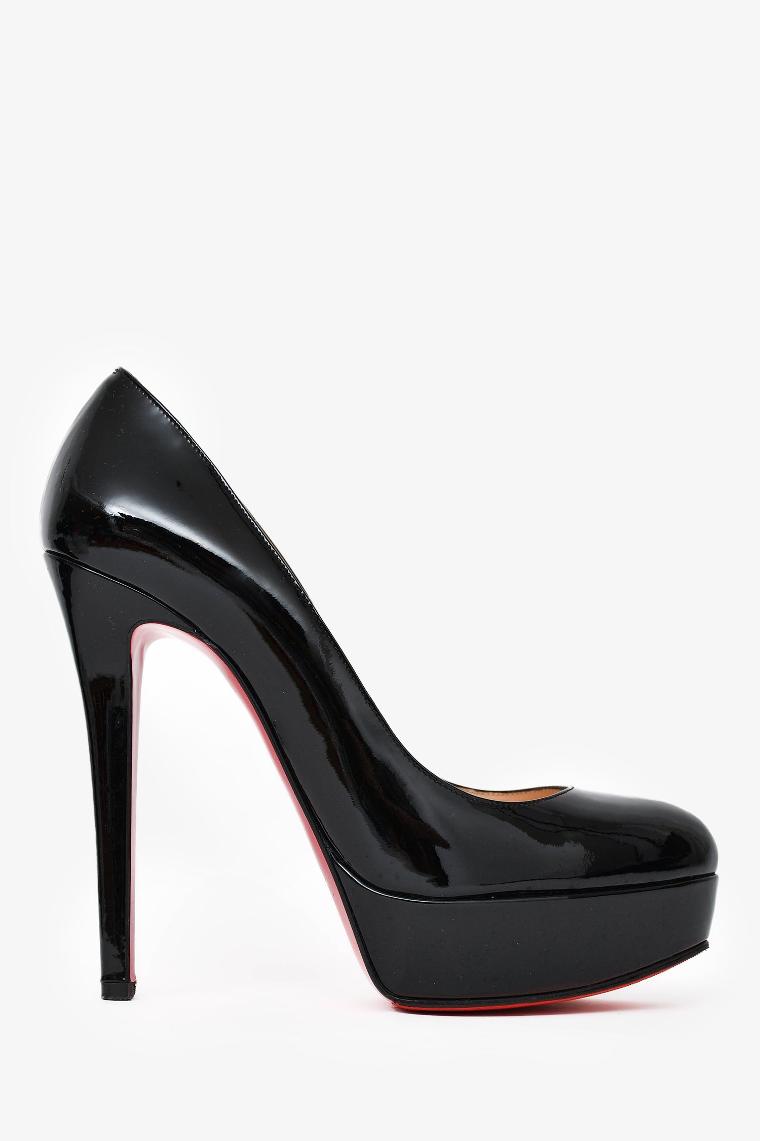Refresh availabilityChristian Louboutin Black Patent LeatherBianca 140 Heels. Slip-on and round toe design. Tonal stitching. Comes with dust bag and box.