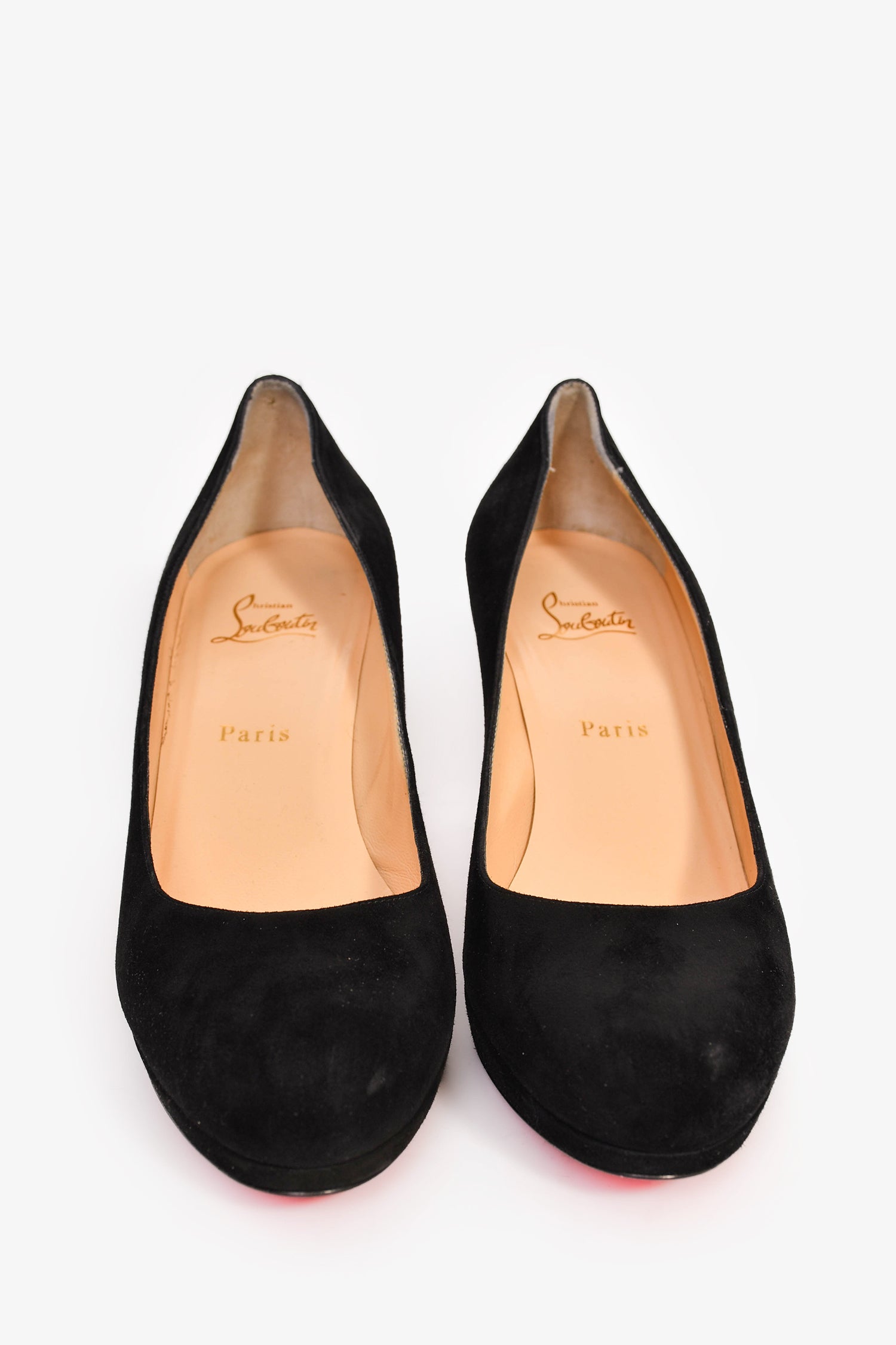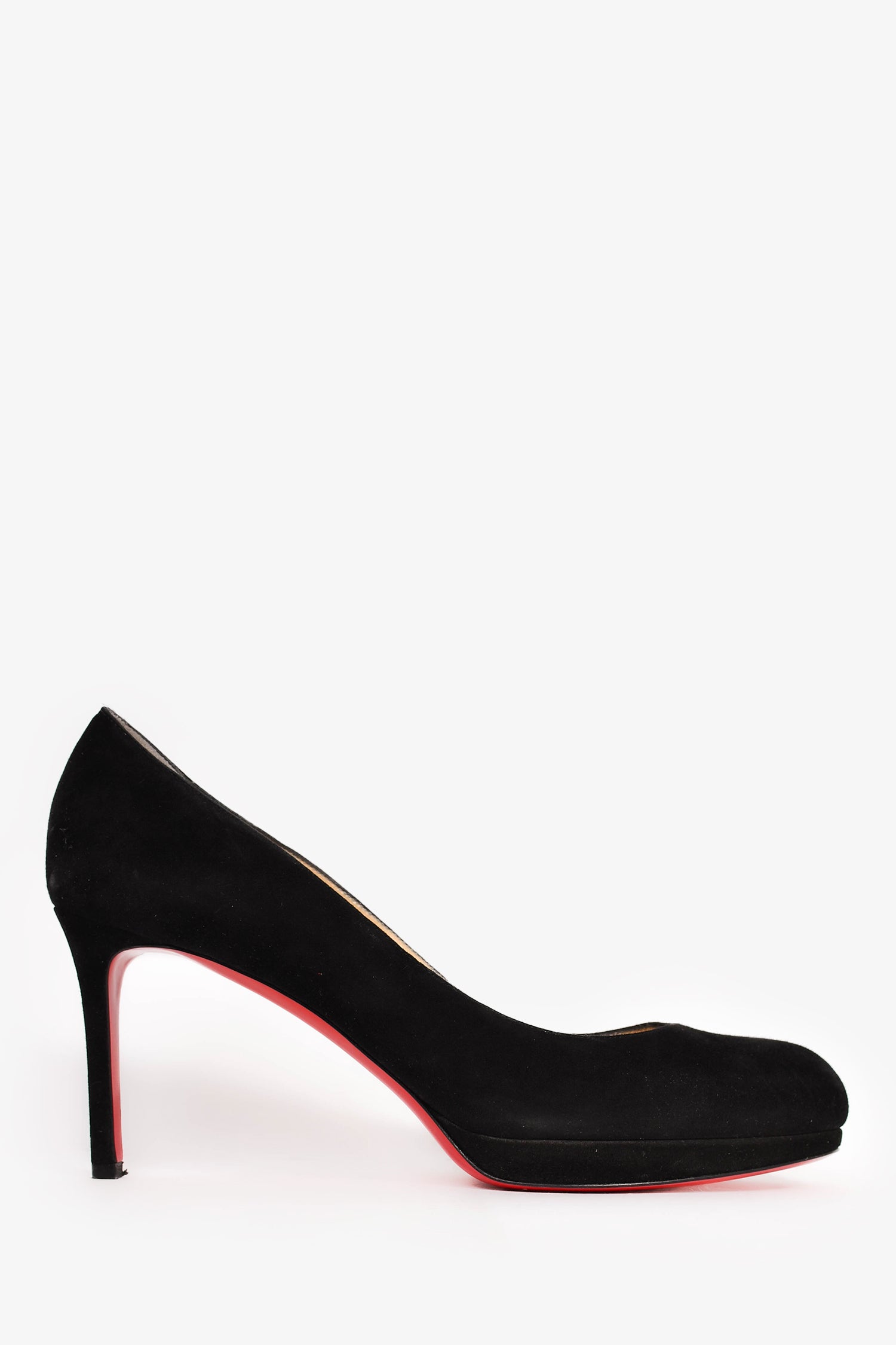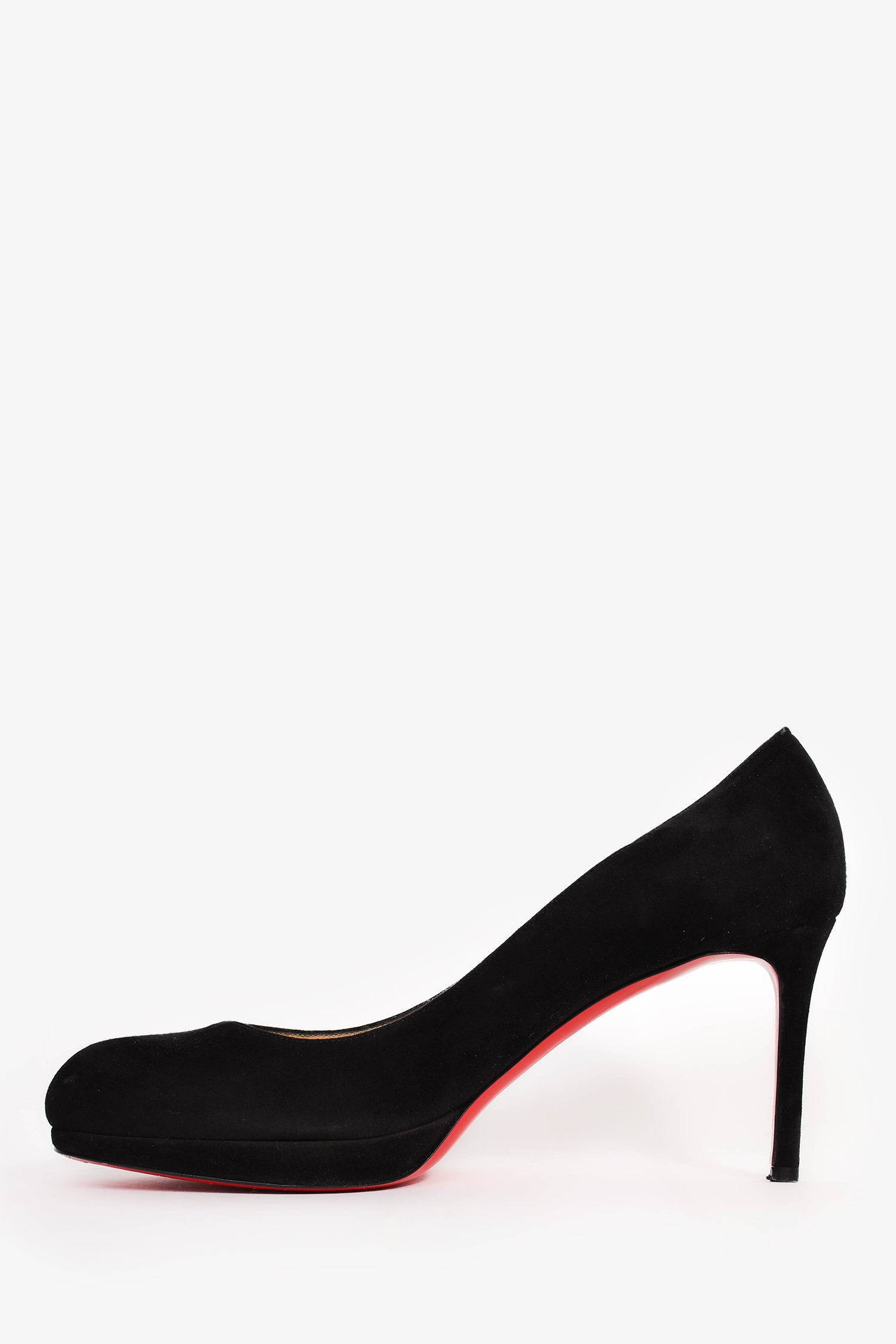 Refresh availabilityChristian Louboutin Black Suede 'New Simple Pump' 85. Signature red bottoms. Slip-on. Round toe.