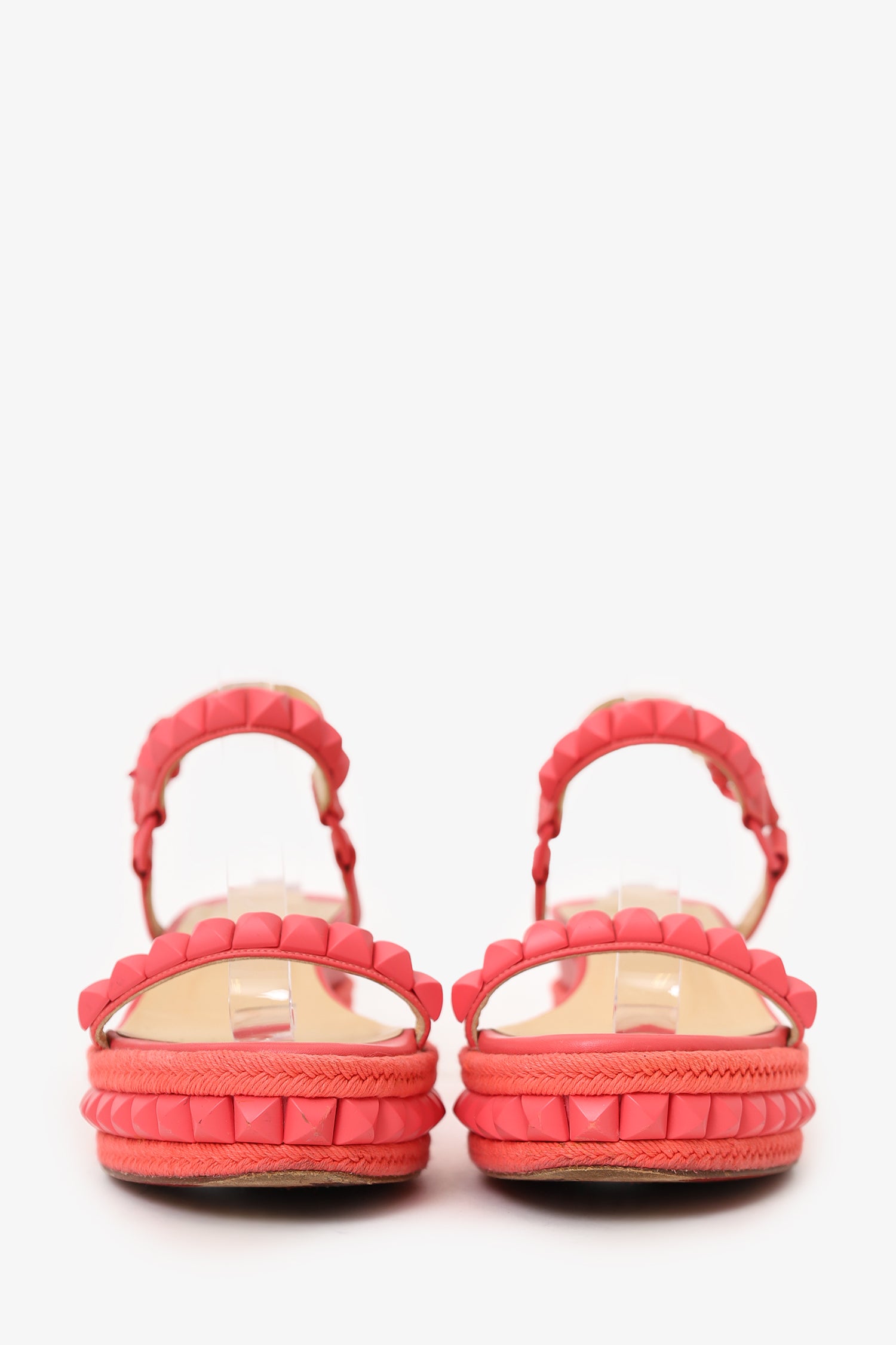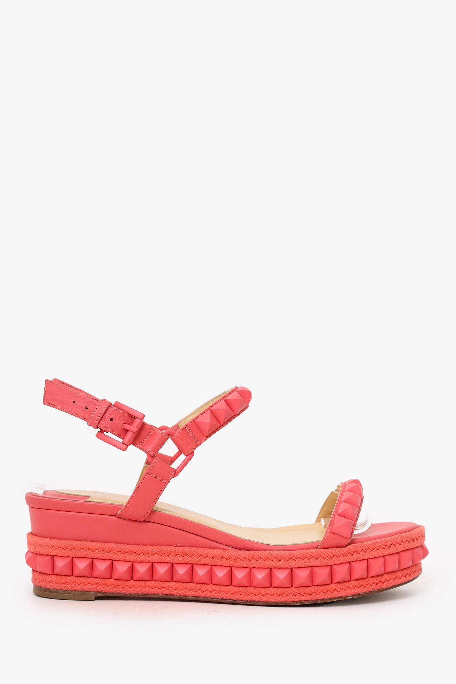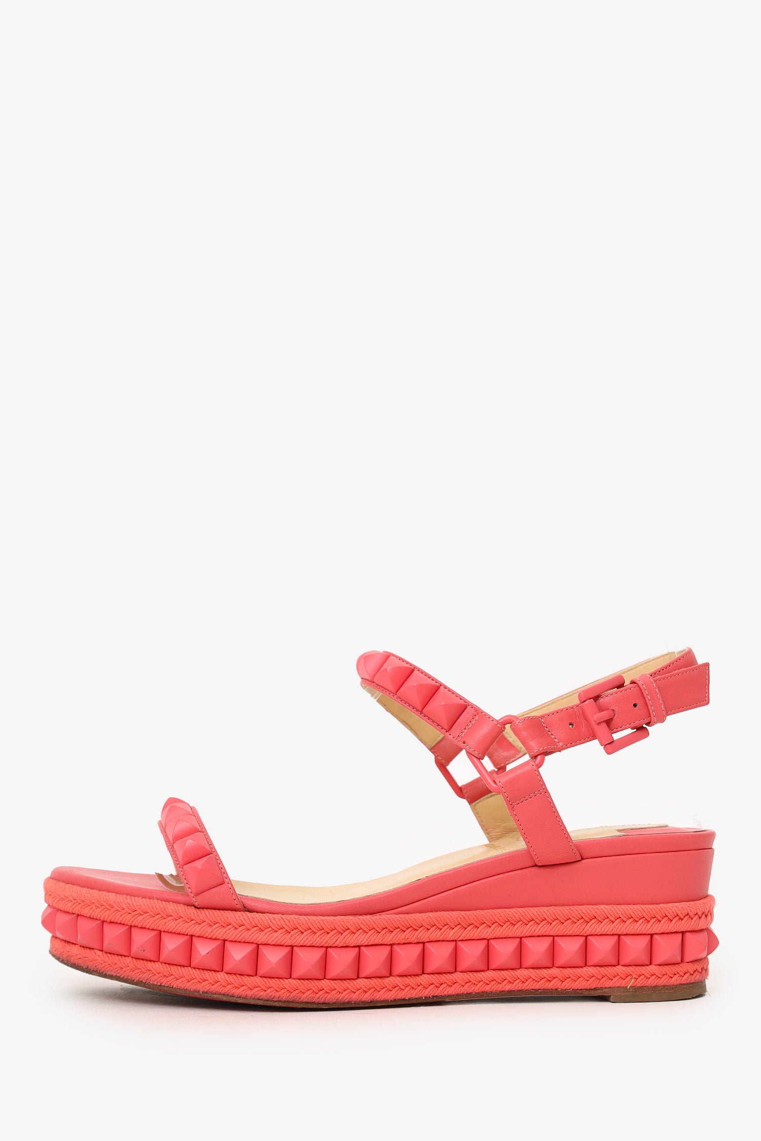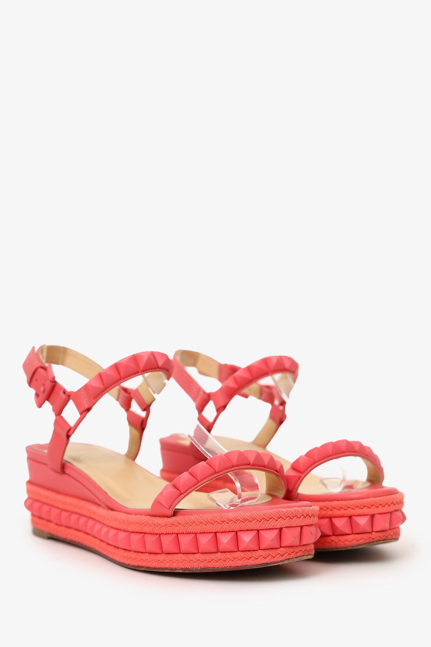 Refresh availabilityChristian Louboutin Pink Leather Studded Platform Sandals. Slip-on. Pointed-round toe. Ankle strap with adjustable buckle closure. Tonal stitching.
