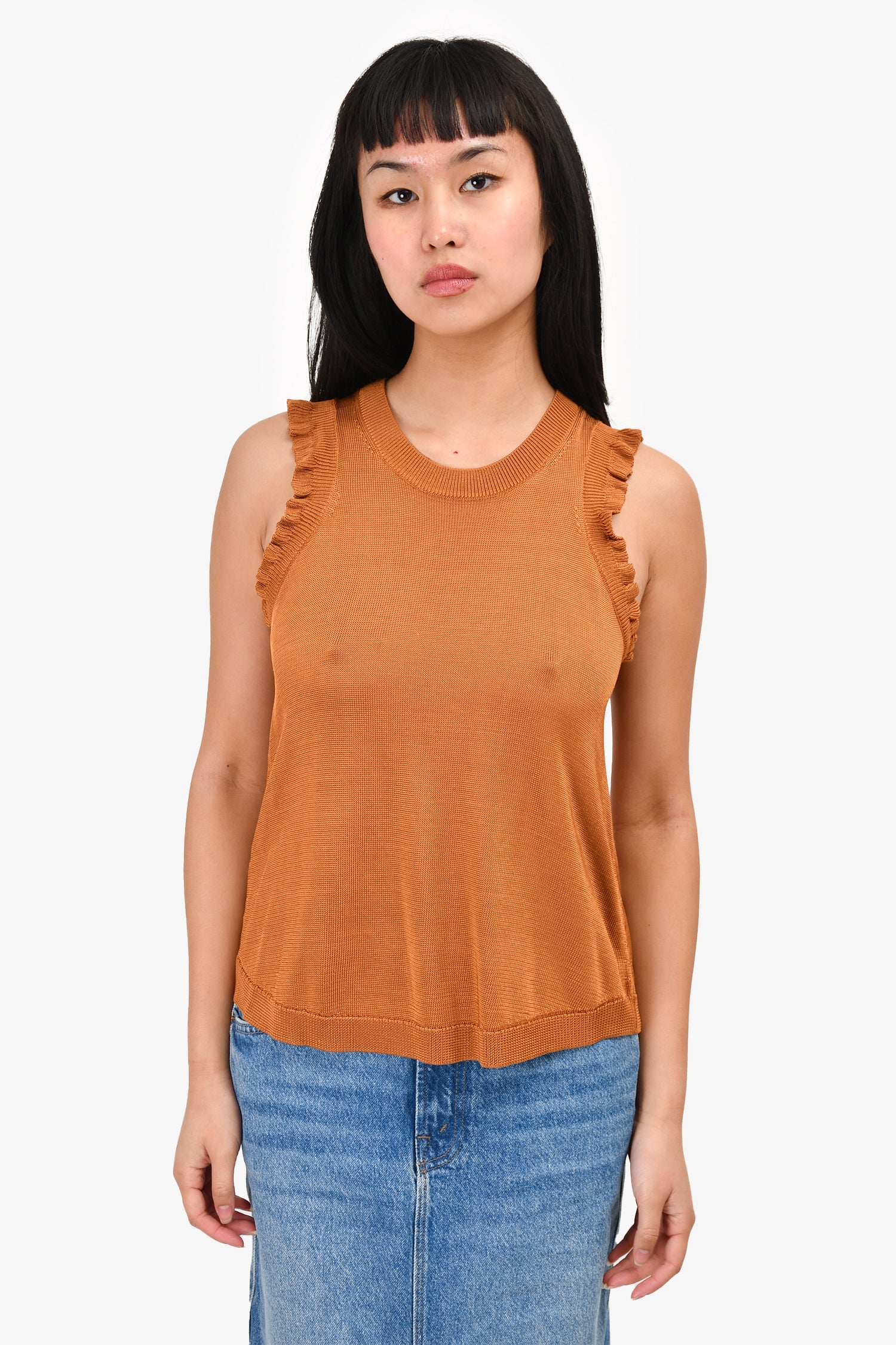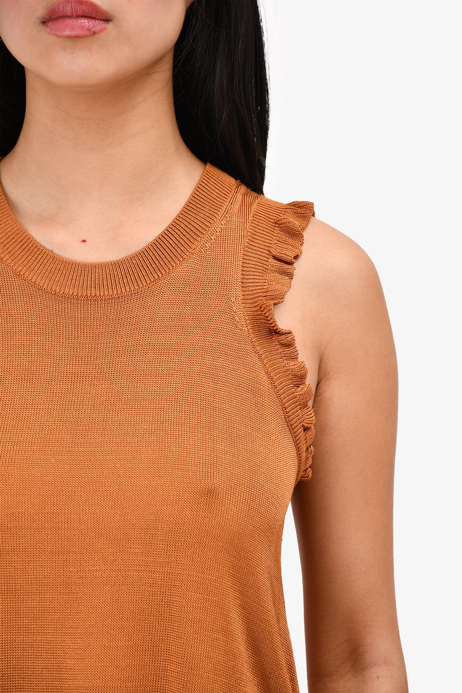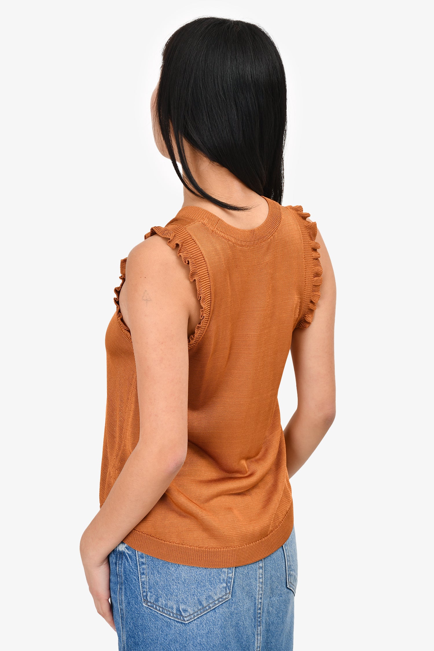 Cinq a Sept Brown Metallic Knit Ruffle Sleeveless Top Size XS