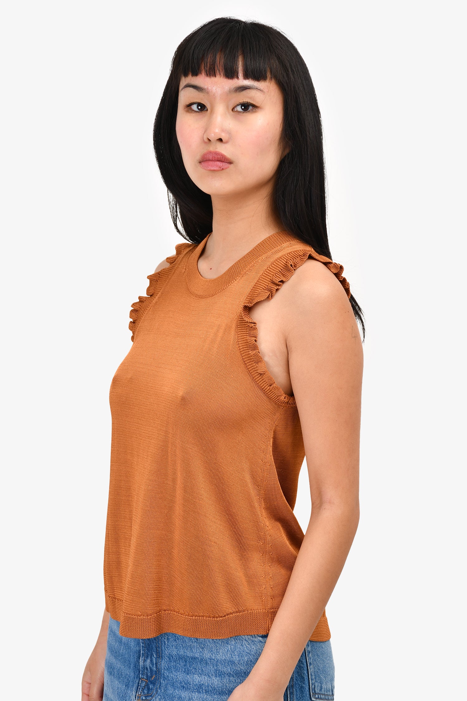 Refresh availabilityCinq a Sept Brown Metallic Knit Ruffle Sleeveless Top. Pull-on.