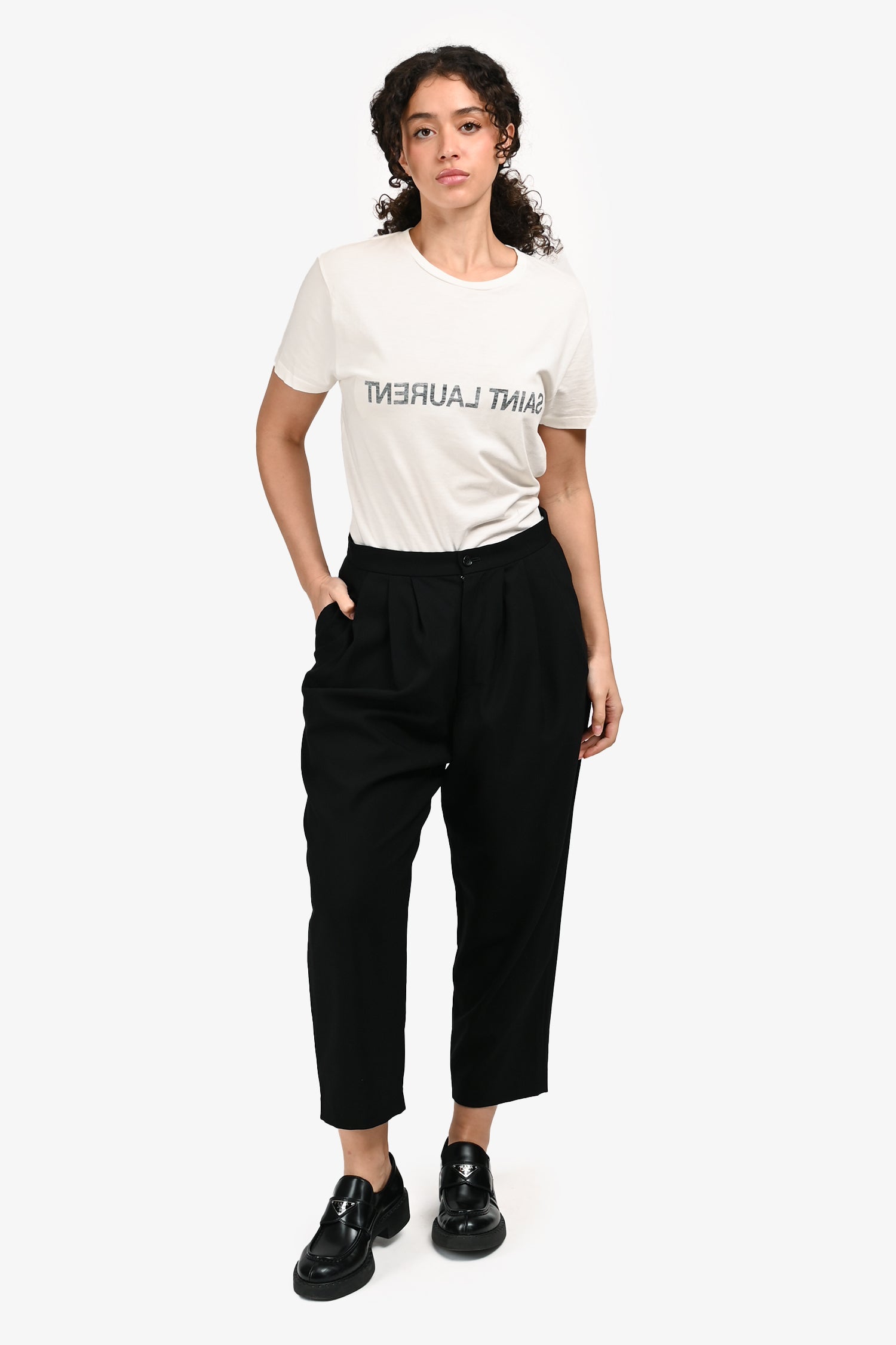 Comme Dees Garcons Black Wool Pleated Detail Baggy Pants Size M
