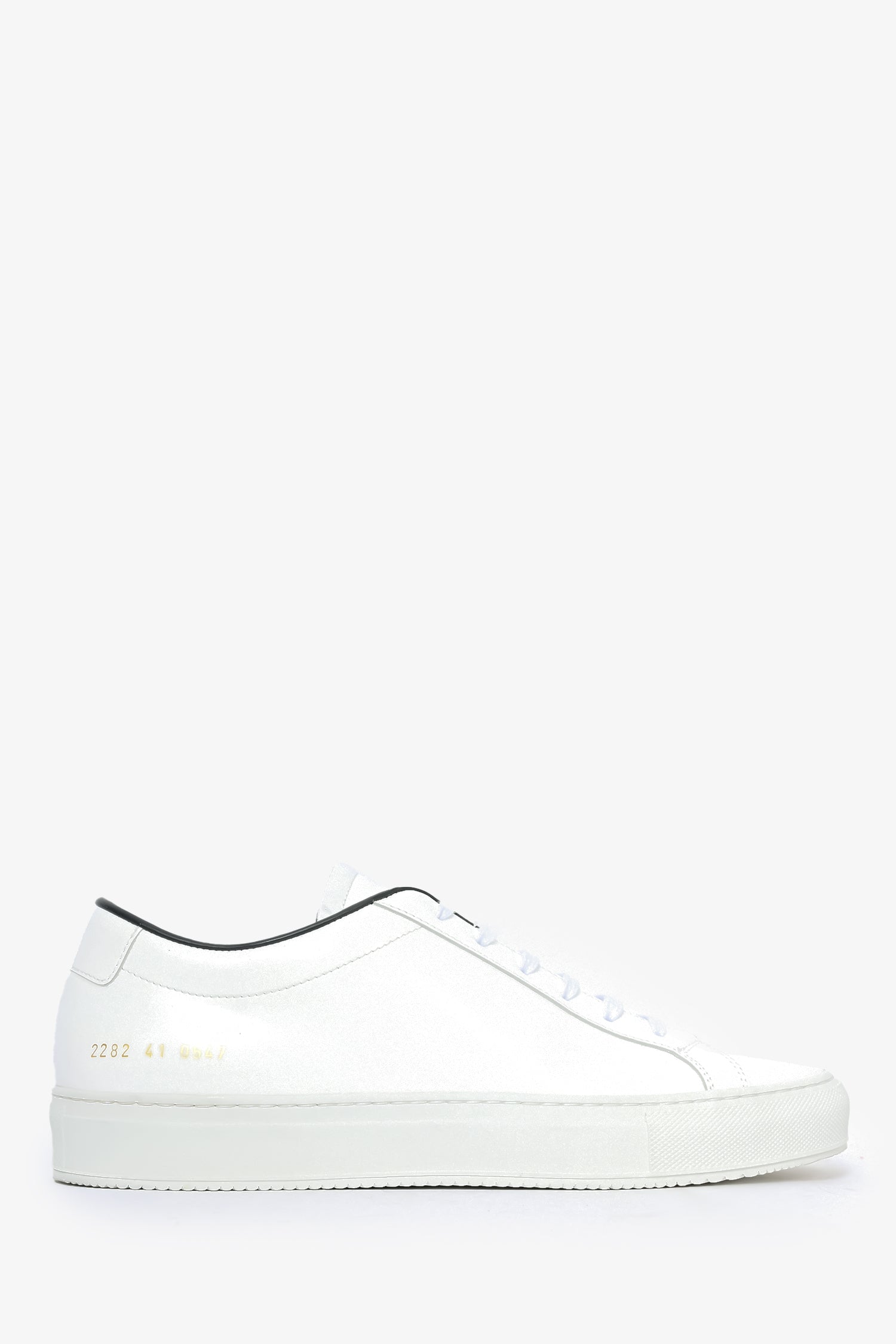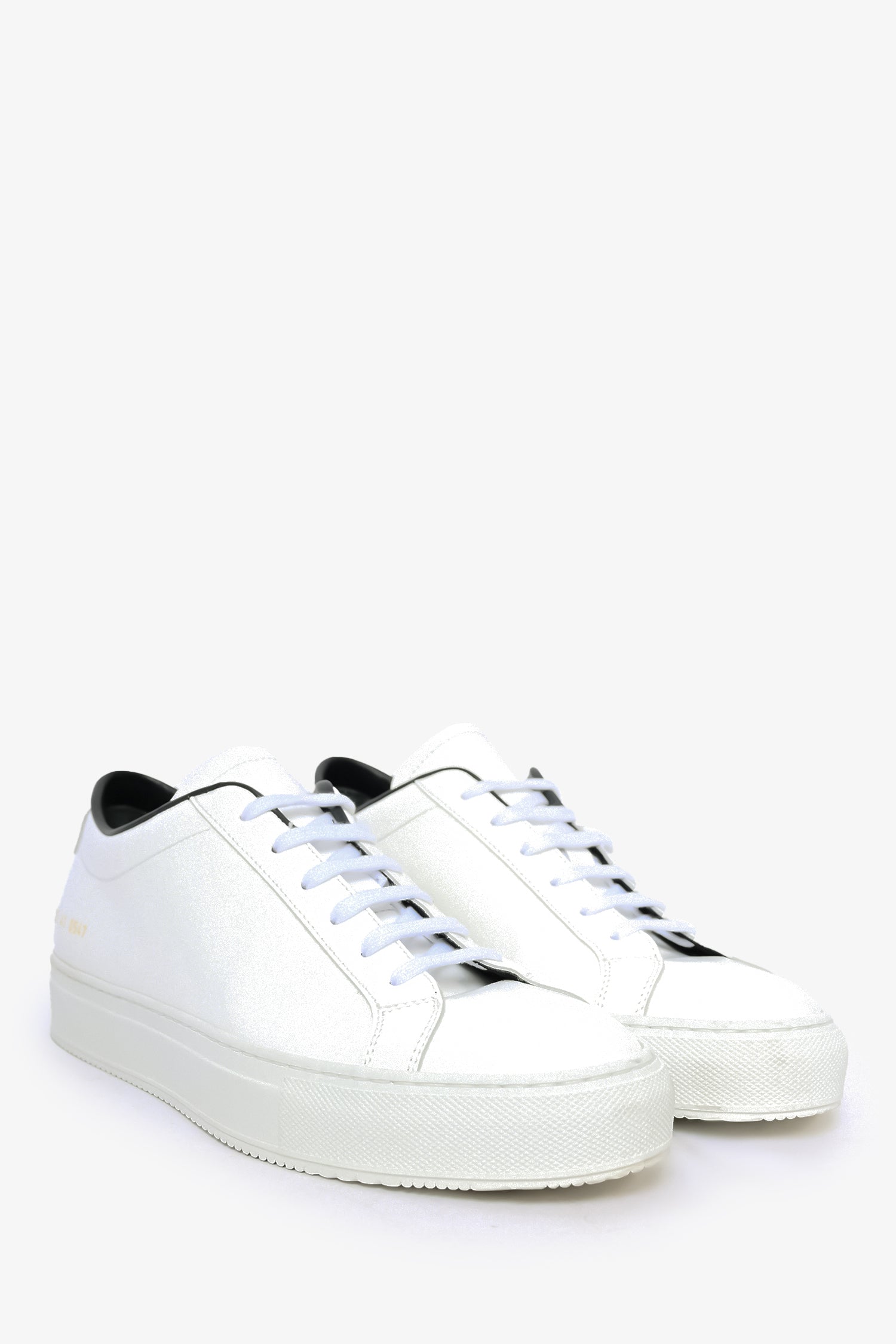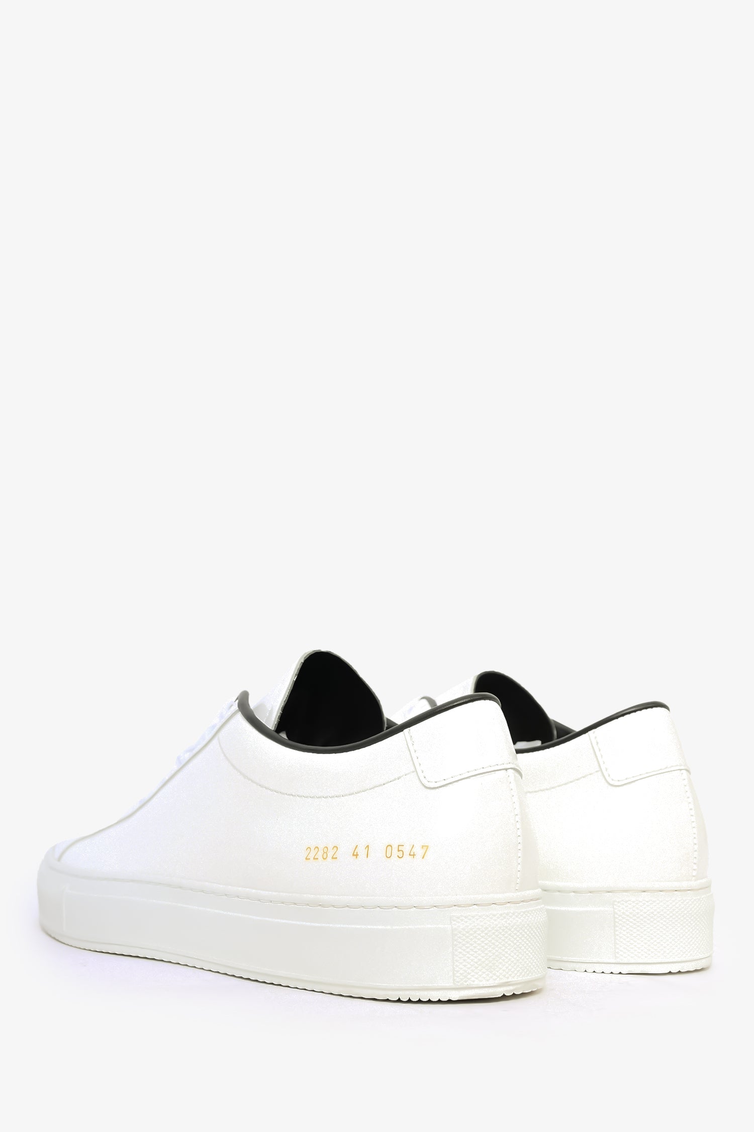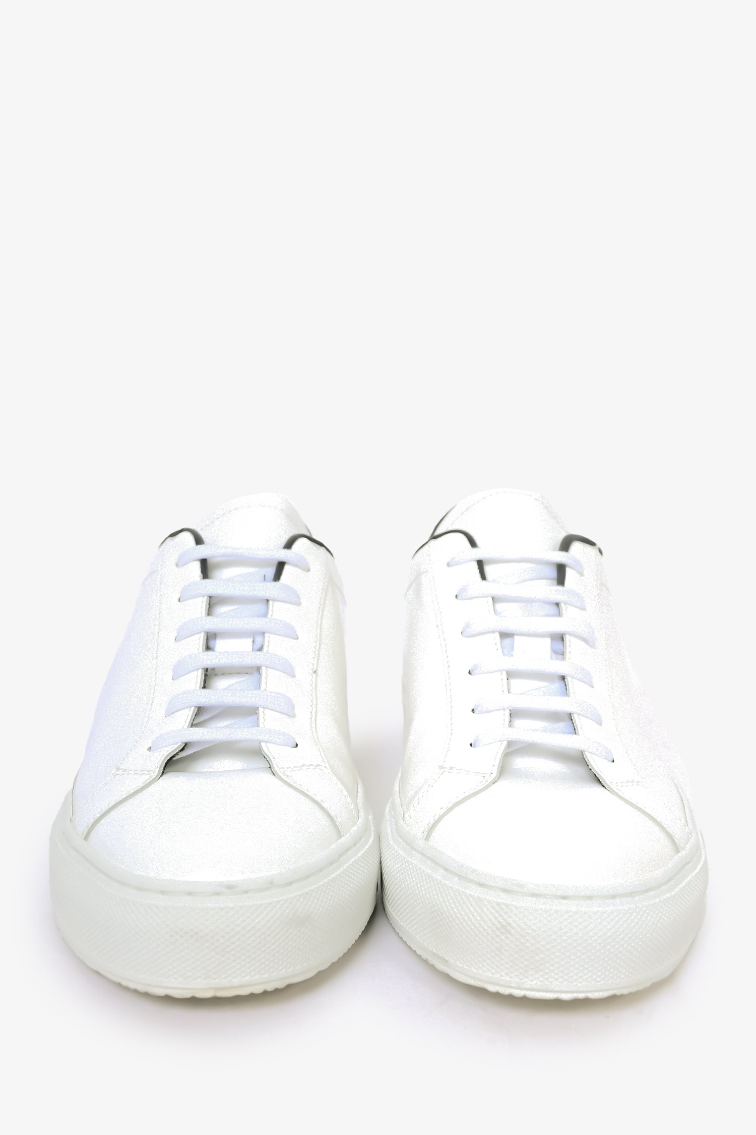 Common Projects White Patent Leather Low Top Sneakers with Black Trim Size 41 Mens