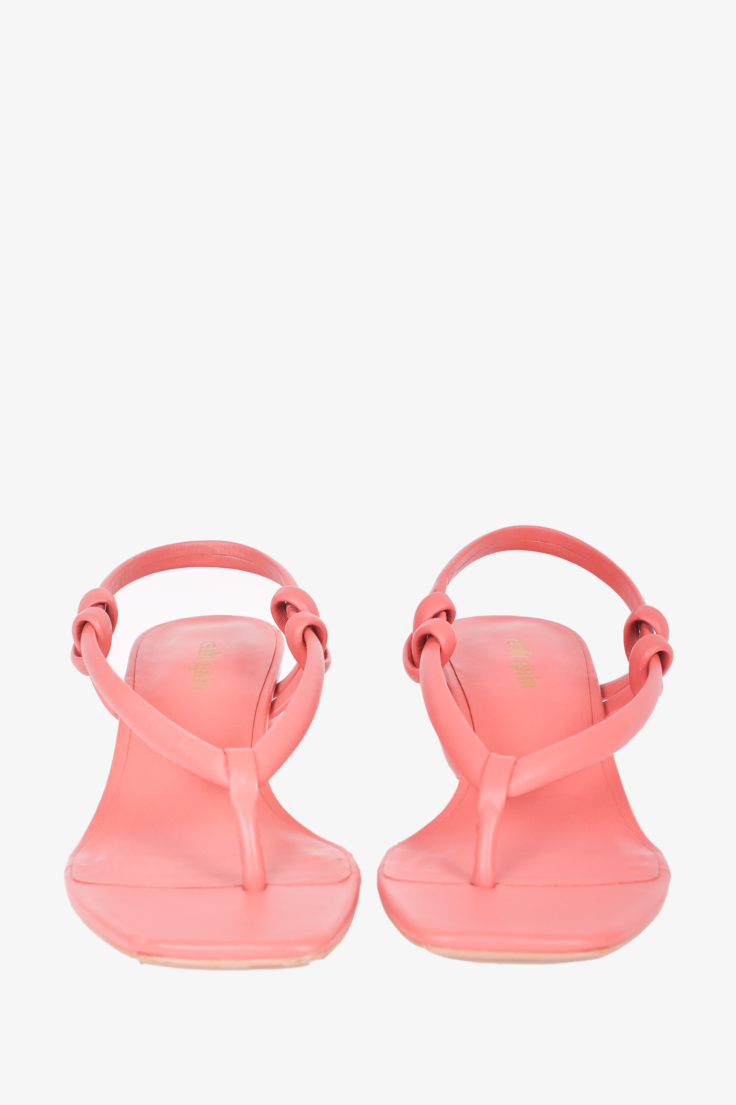 Refresh availabilityCult Gaia Pink Leather 'Aviva' Heeled Thong Sandals. Open toe. Square toe. Circle heel. Tonal stitching.