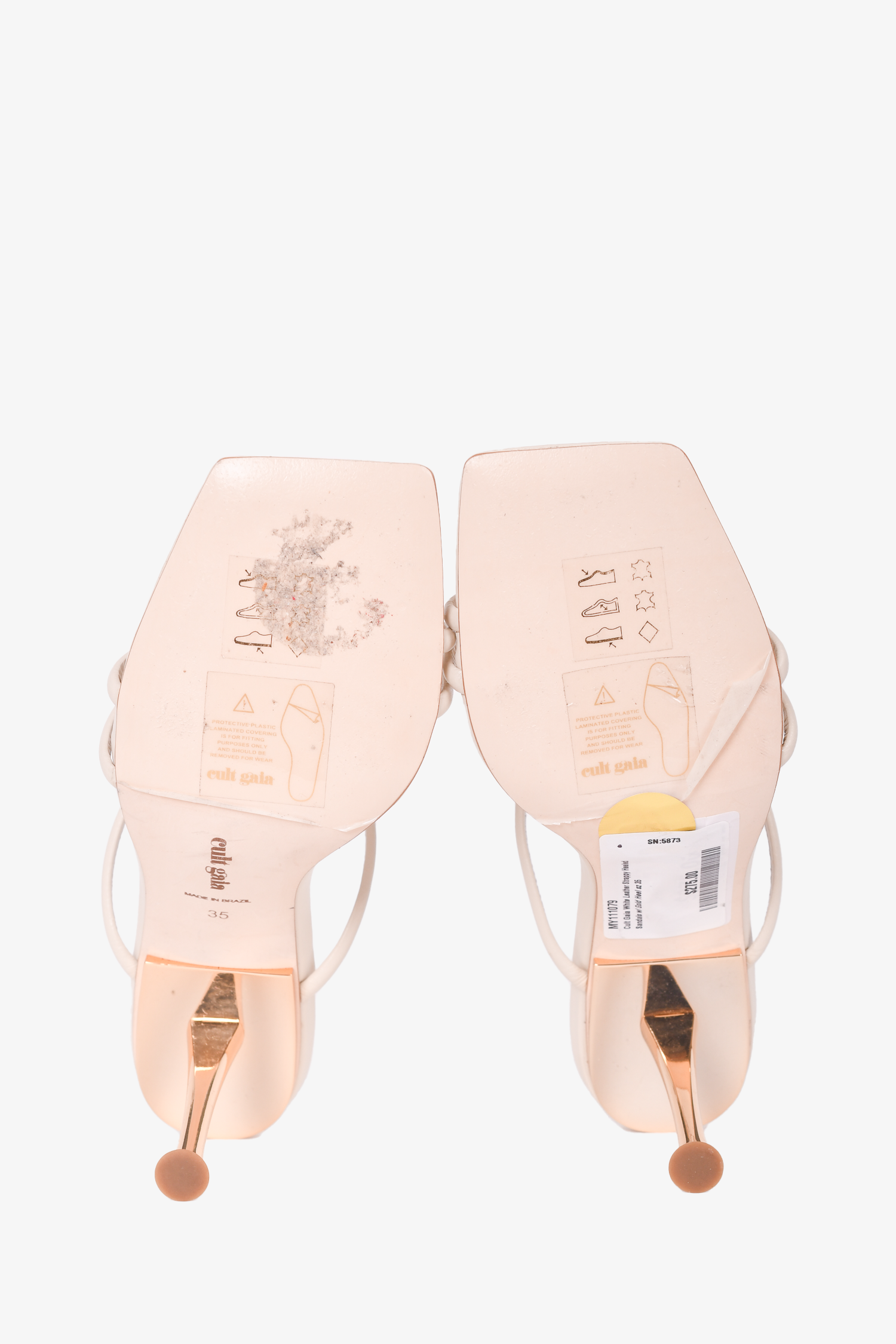 Cult Gaia White Leather Strappy Heeled Sandals with Gold Heel Size 35