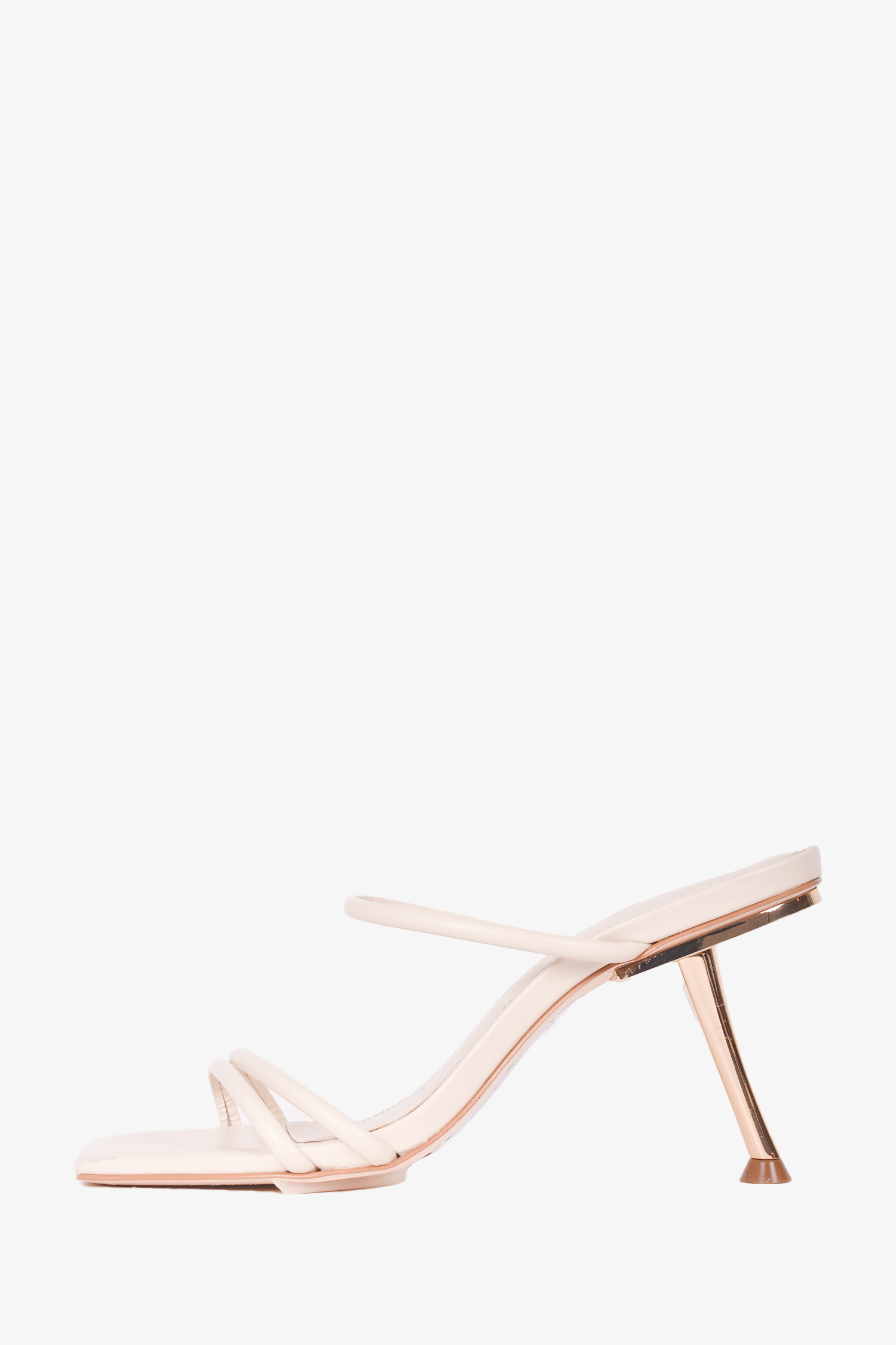 Refresh availabilityCult Gaia White Leather Strappy Heeled Sandals with Gold Heel. Open square toe. Slip-on. Tonal stitching.