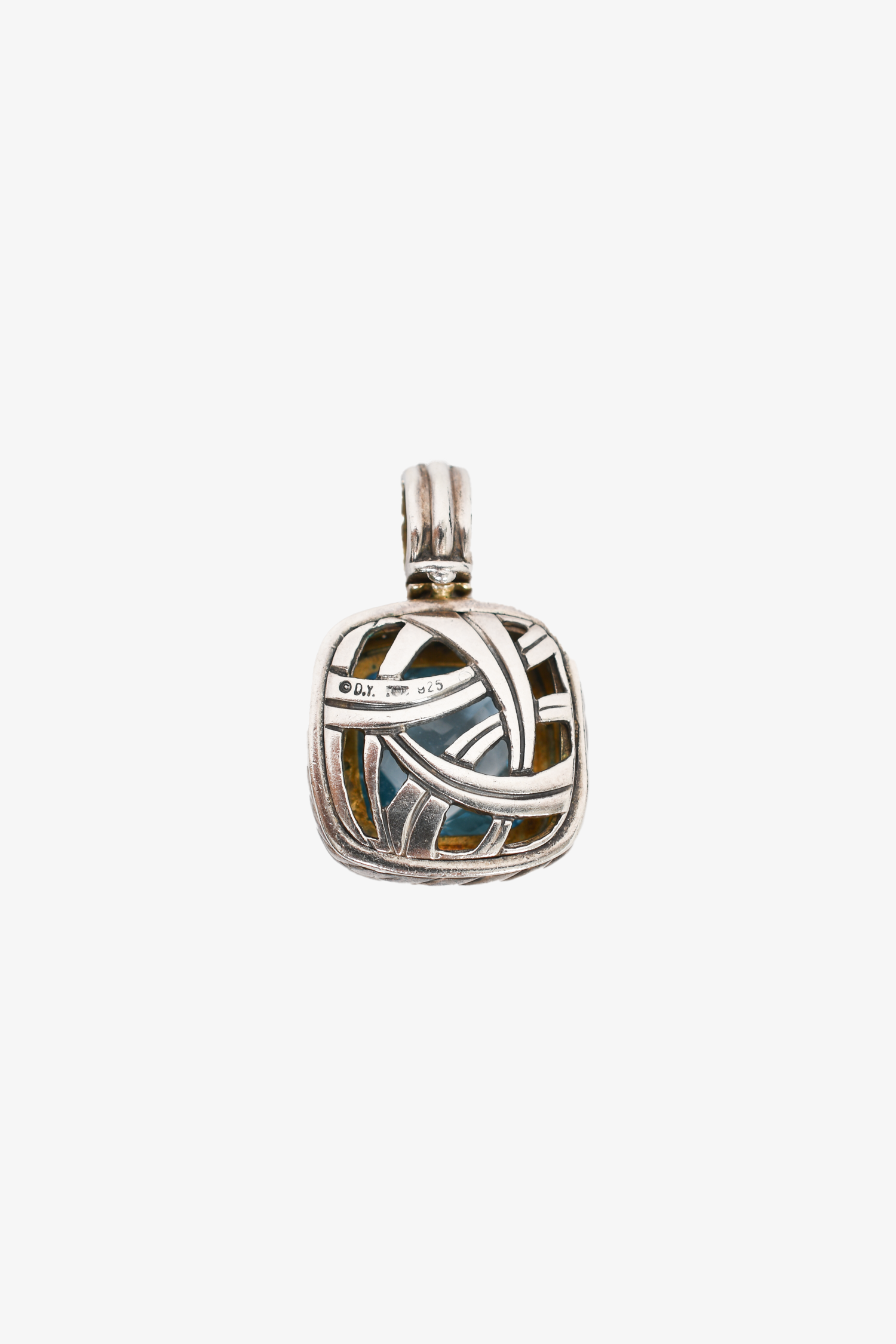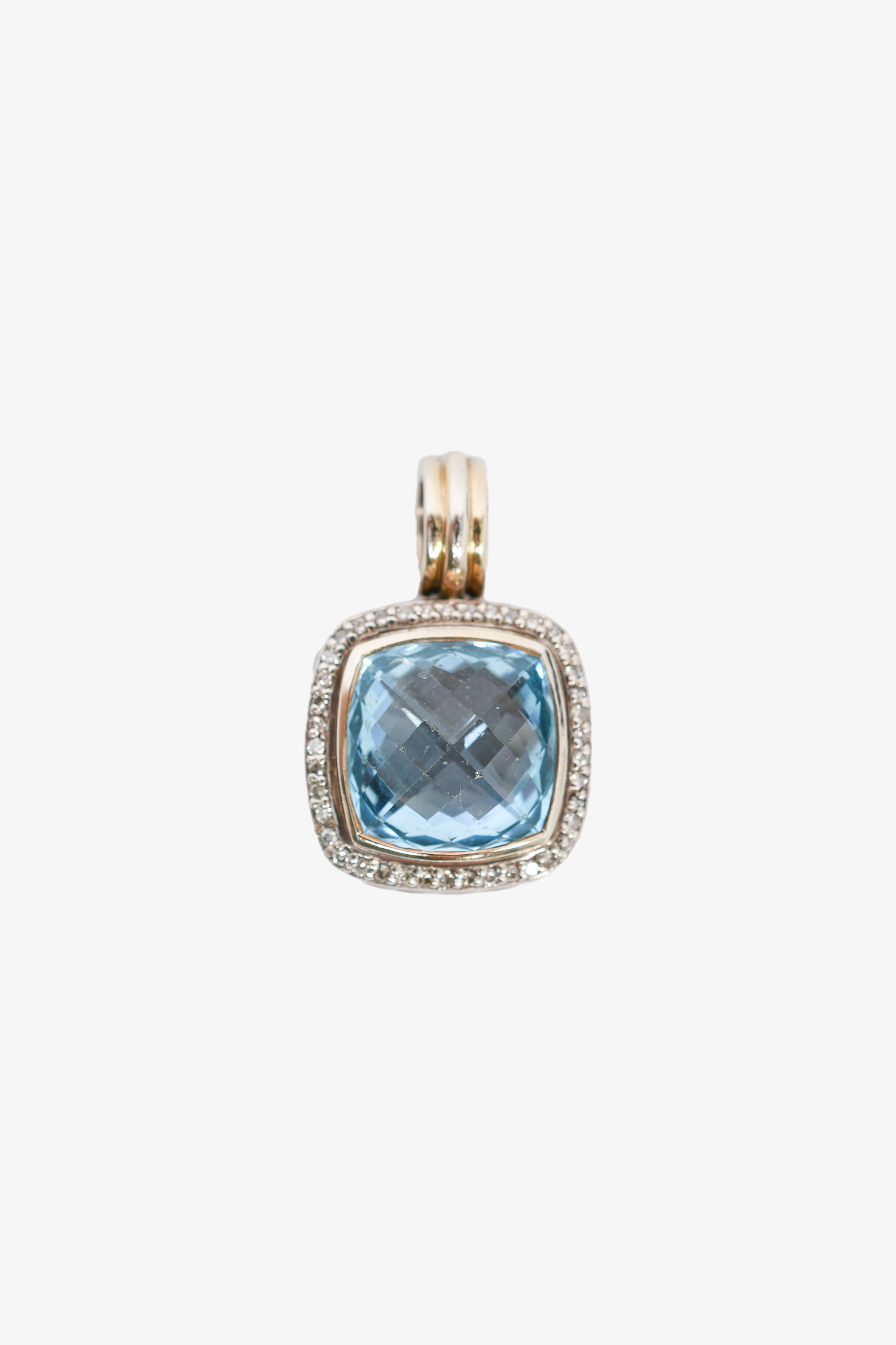 David Yurman Sterling Silver Pave Diamond 14mm Blue Topaz Albion Pendant