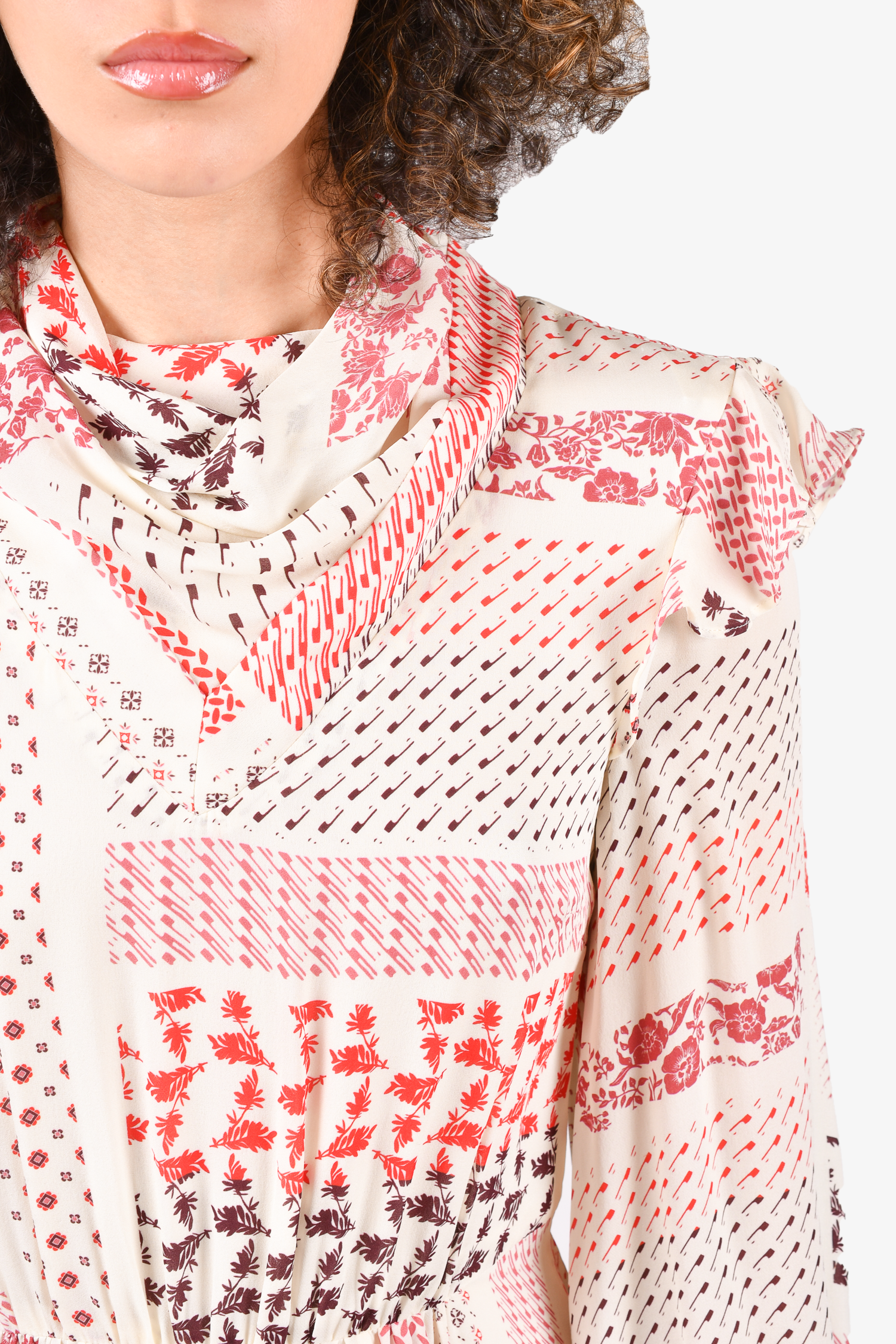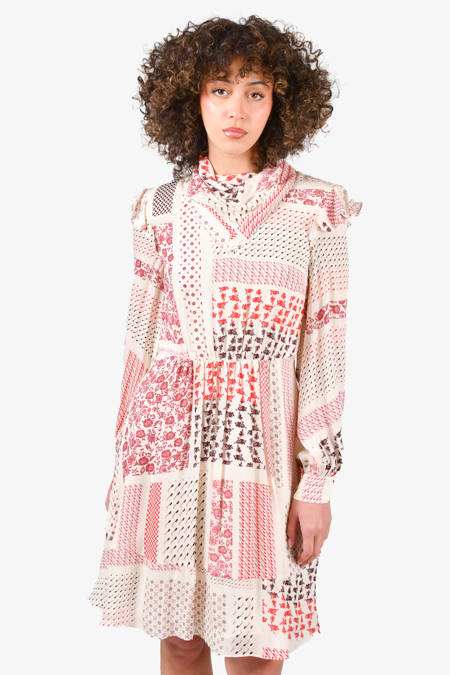 Derek Lam 10 Crosby White/Red Silk Foliage Print Dress Size 2