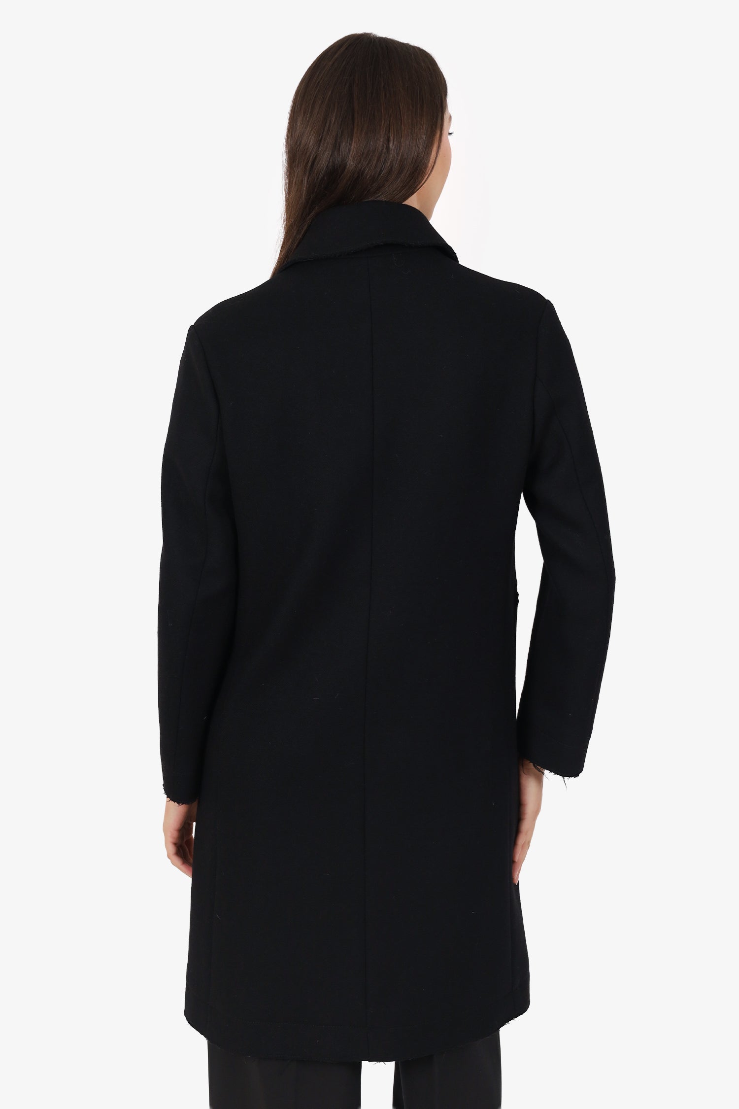 Derek Lam Black Wool/Cashmere Double Breasted Frayed Edge Coat Size 4