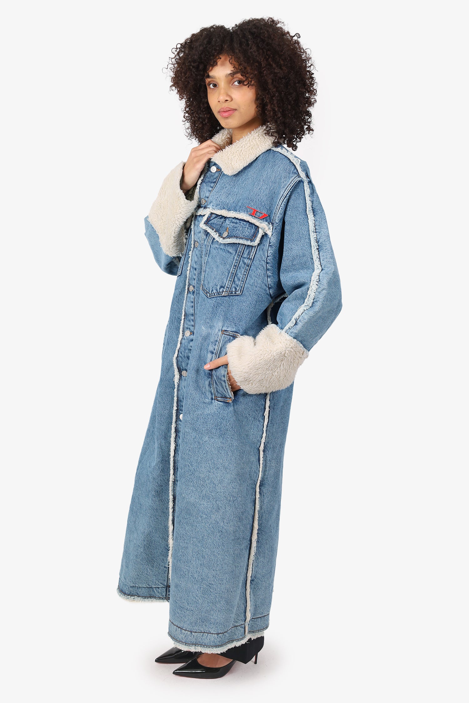 Diesel Blue Denim/Faux Shearling Long Coat Size S