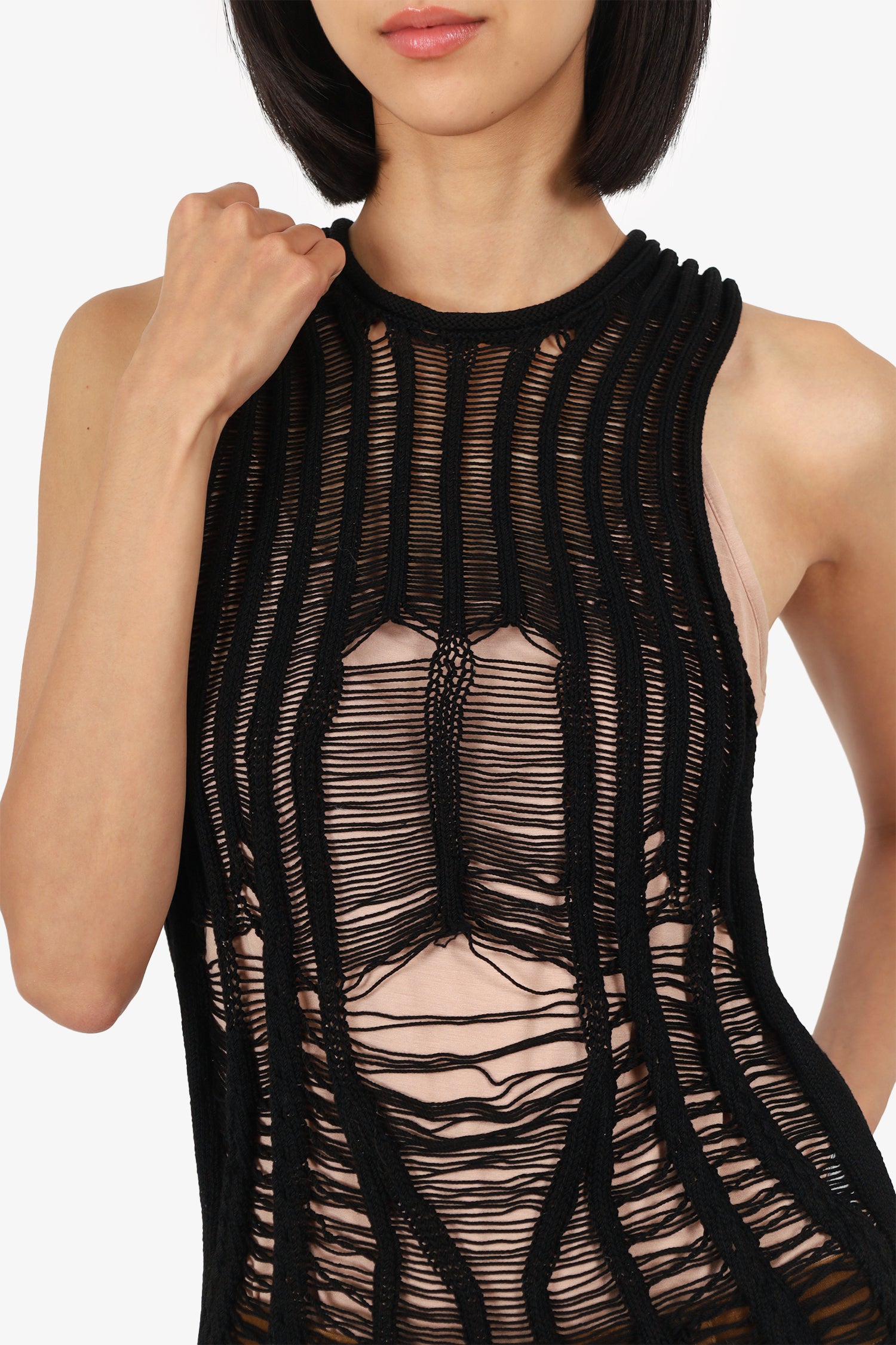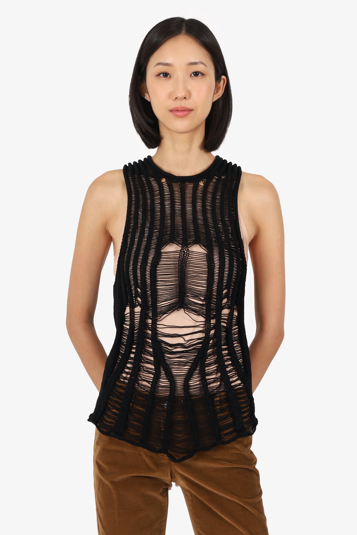 Refresh availabilityDion Lee Black Distressed Knit Tank Top. Pull-on. Round-neckline. Tonal stitching.