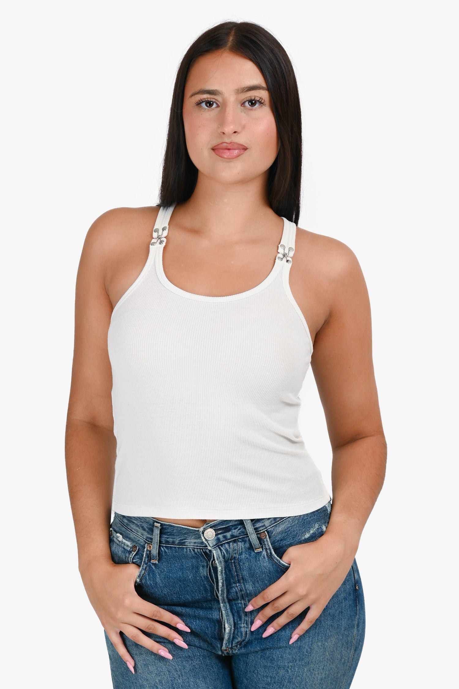 Refresh availabilityDion Lee White Cotton Clasp Tank. Round neck. Pull-on.