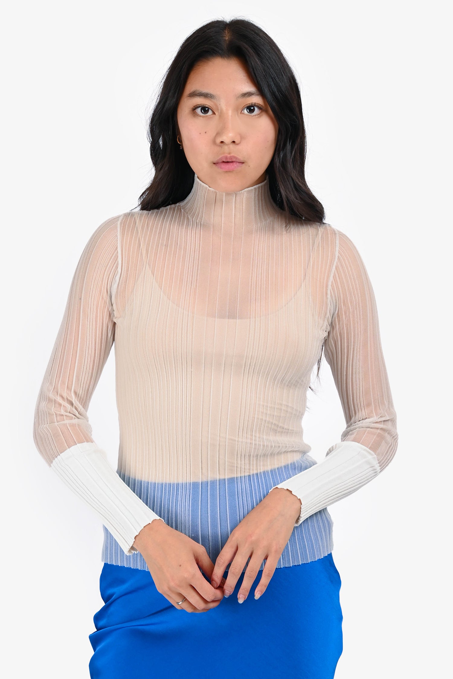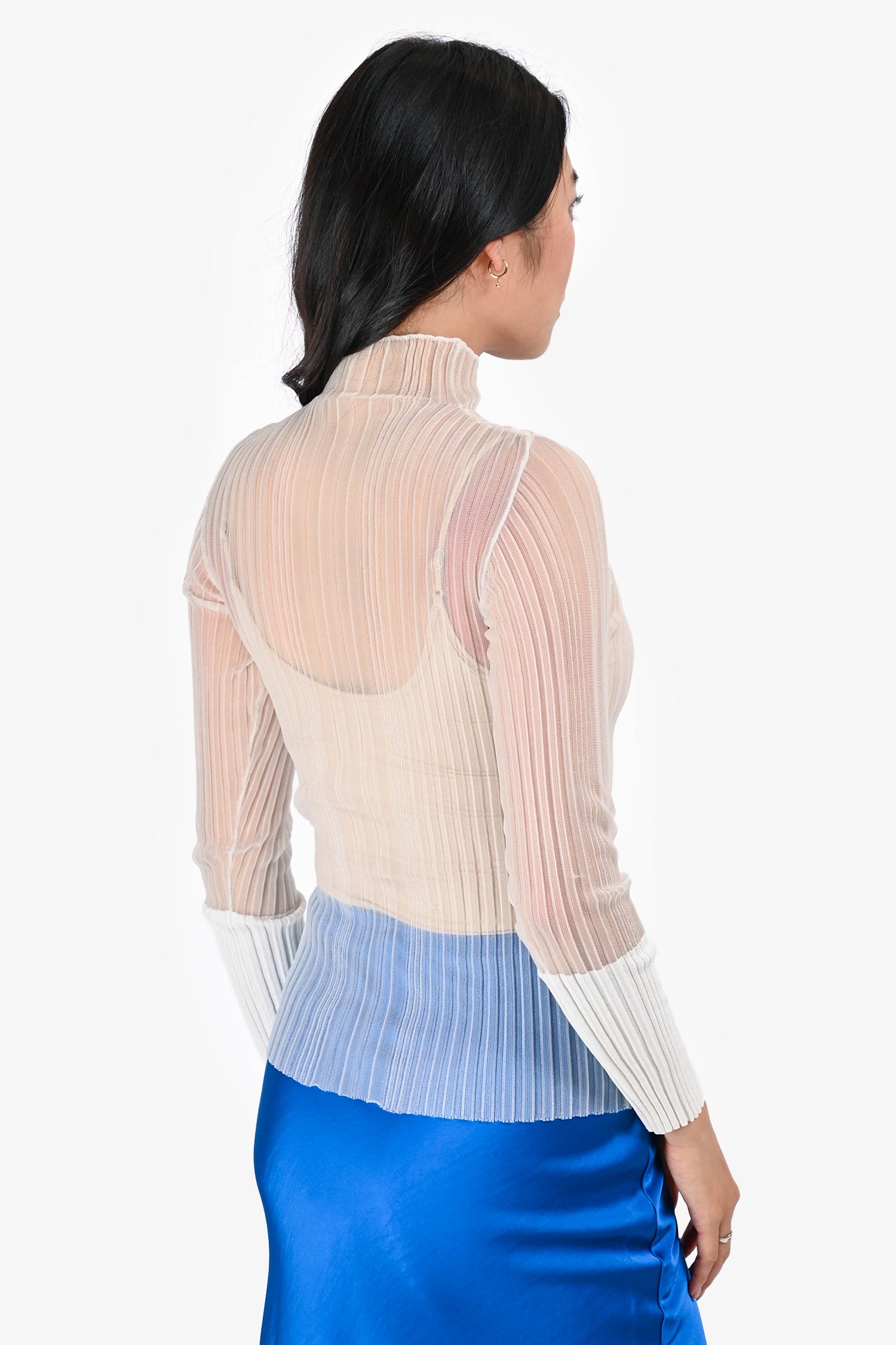 Refresh availabilityDion Lee White Sheer Pleated High Neck Top. Mock neck. Tonal stitching.