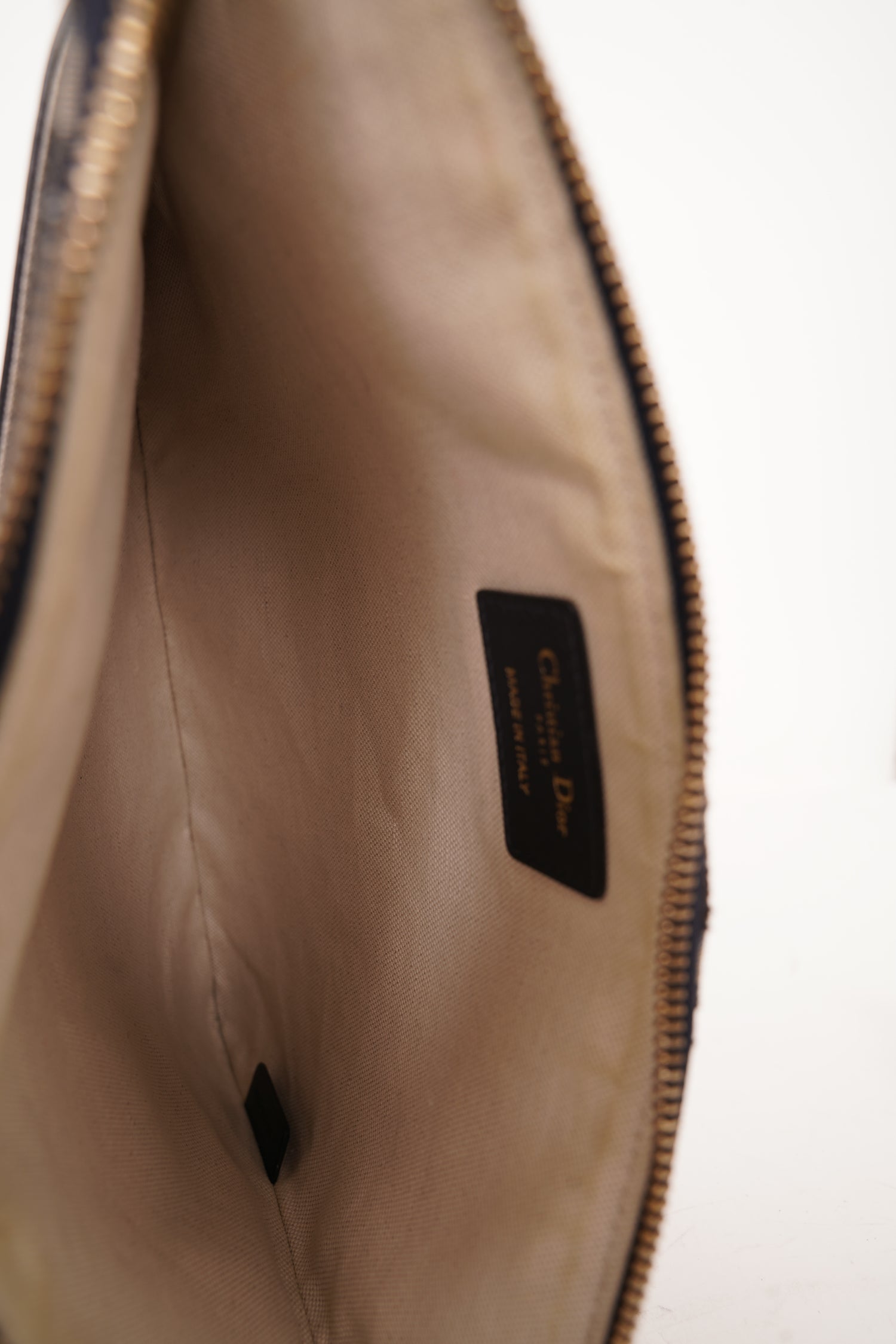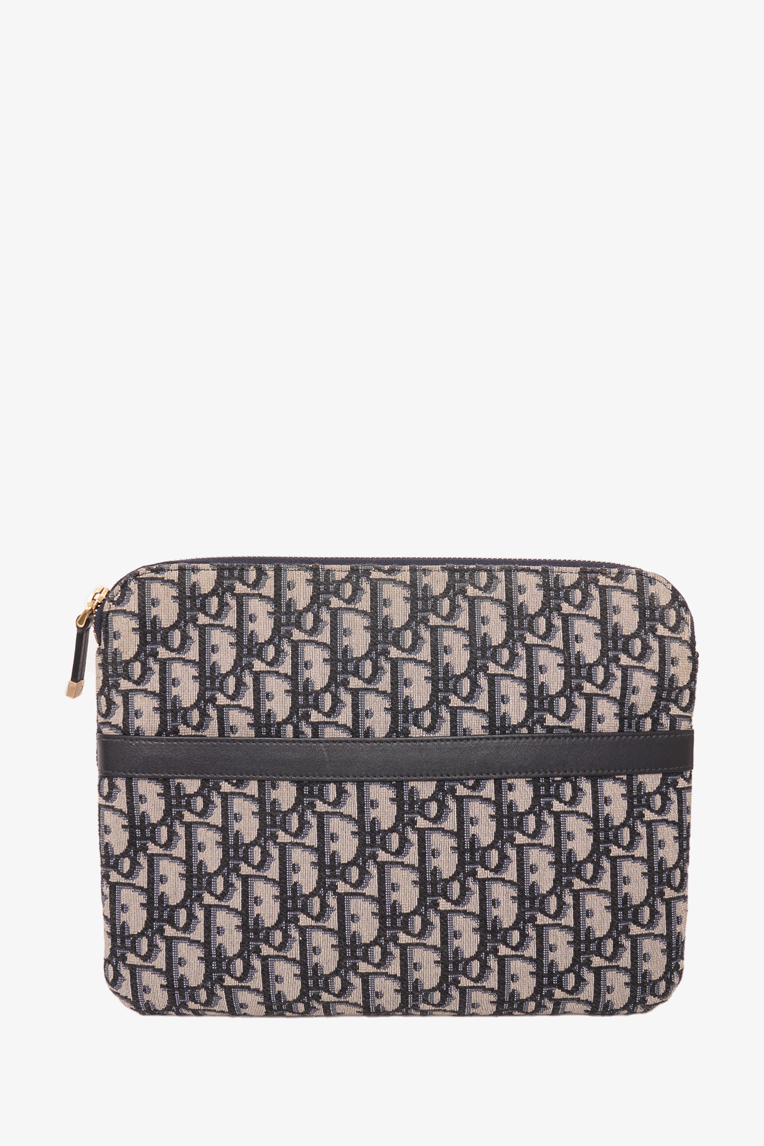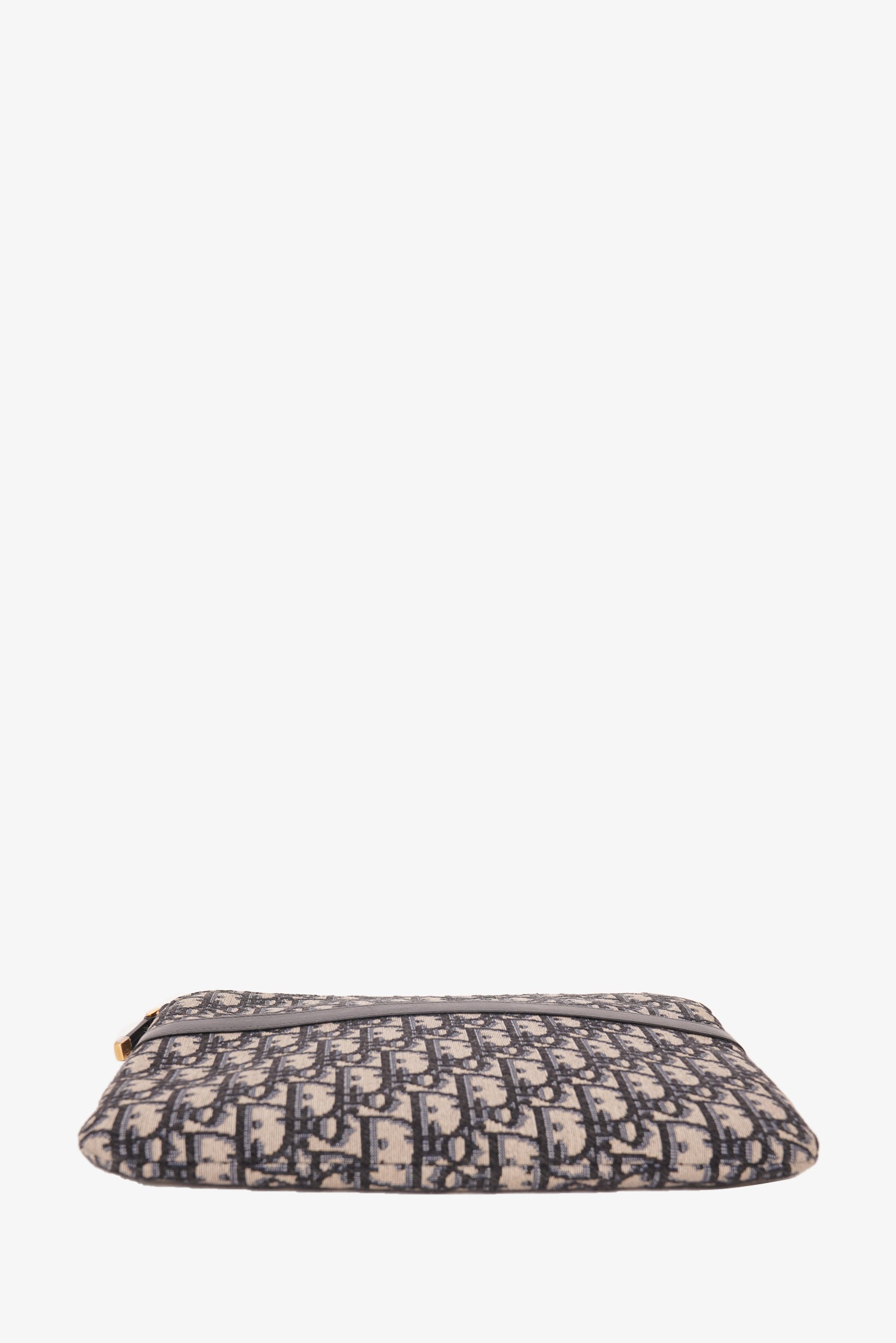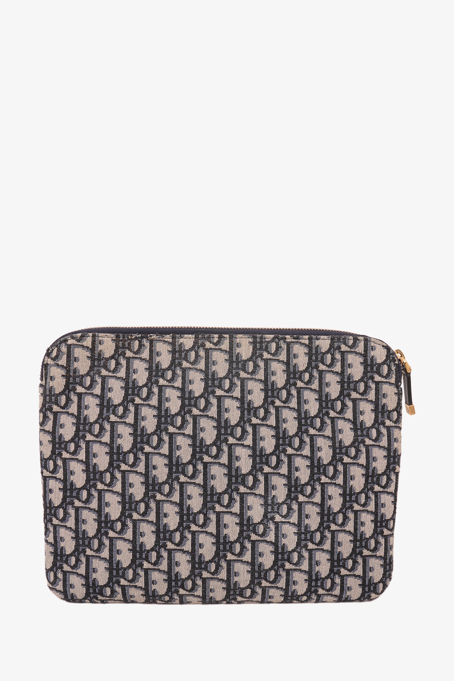Refresh availabilityChristian Dior Blue Oblique Canvas Travel Kit Pouch. Top zipper closure. Front slip pocket. Canvas interior lining. Gold-tone hardware. Tonal stitching.