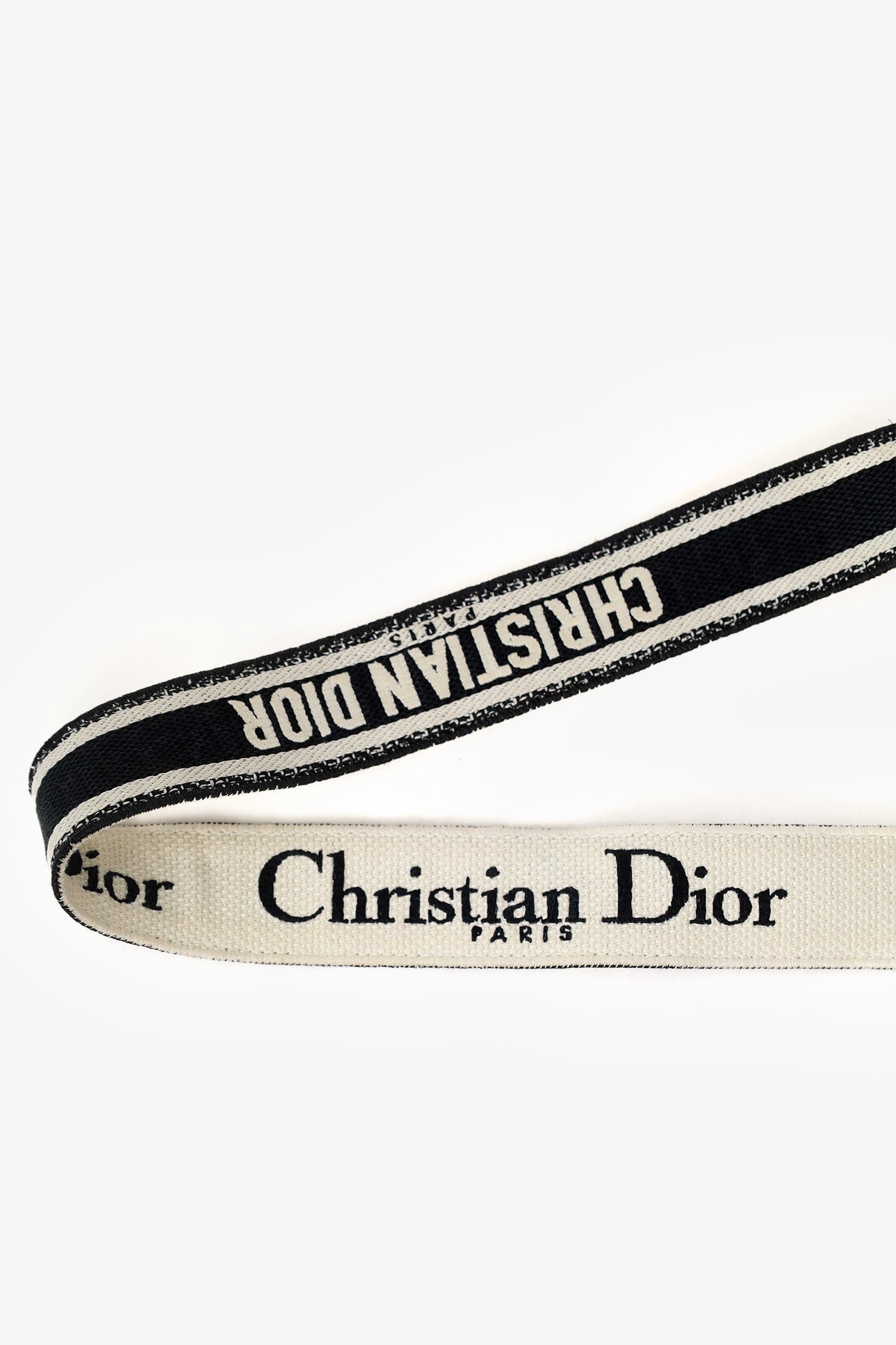 Refresh availabilityDior Navy/Beige Embroidered Strap. Lobster clasp closure at each end. Adjustable with sliding buckle closure. Tonal stitching.
