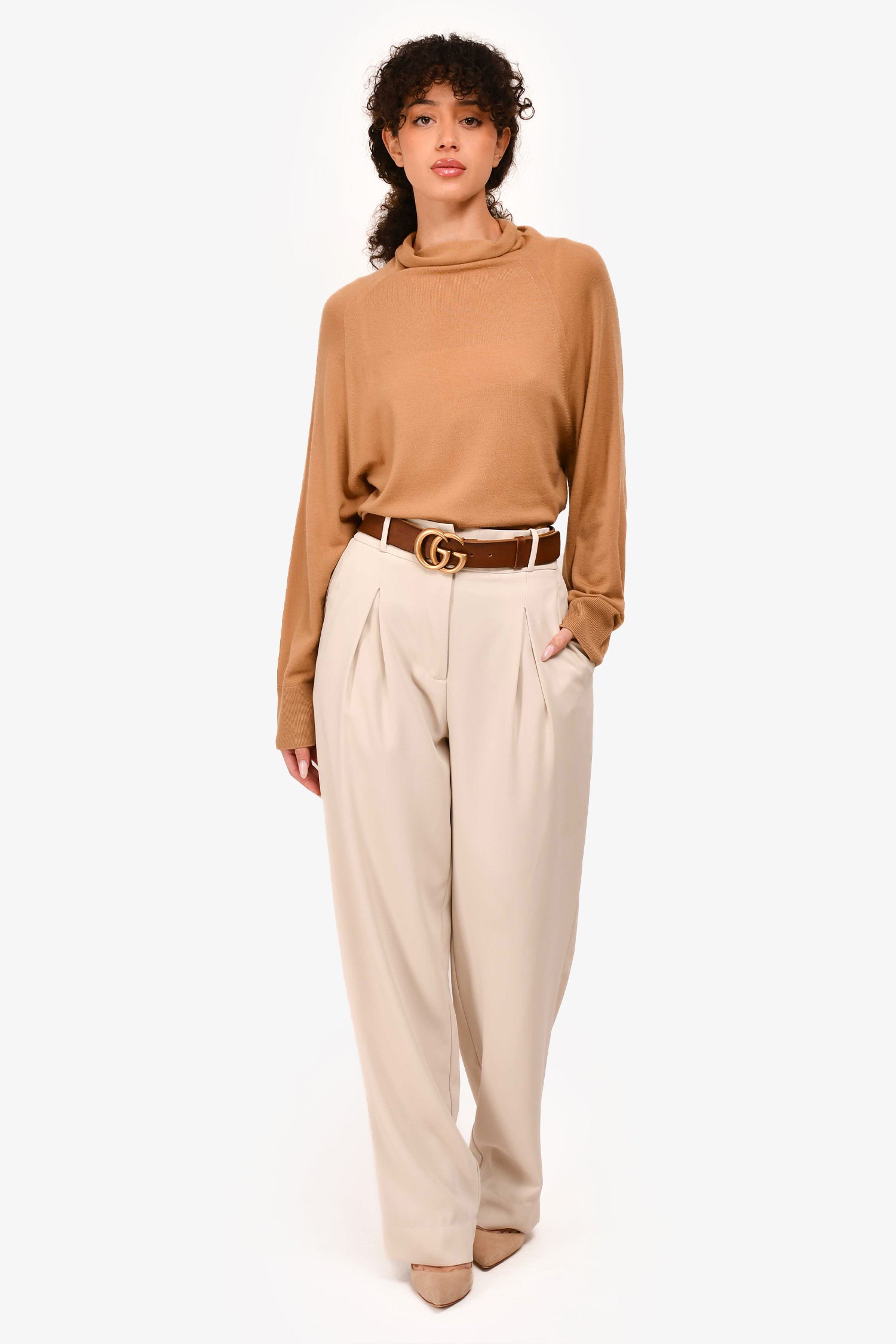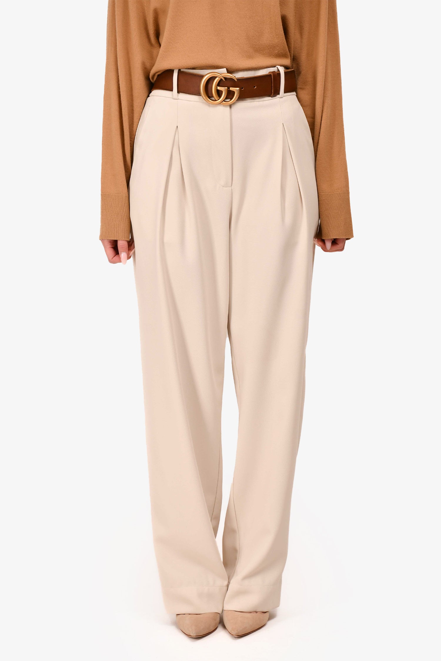 Refresh availabilityDissh Greige Wide Leg Pleated Trousers. Front hook closures. Zip-up. Front pockets. Rear welt pockets. Tonal stitching.
