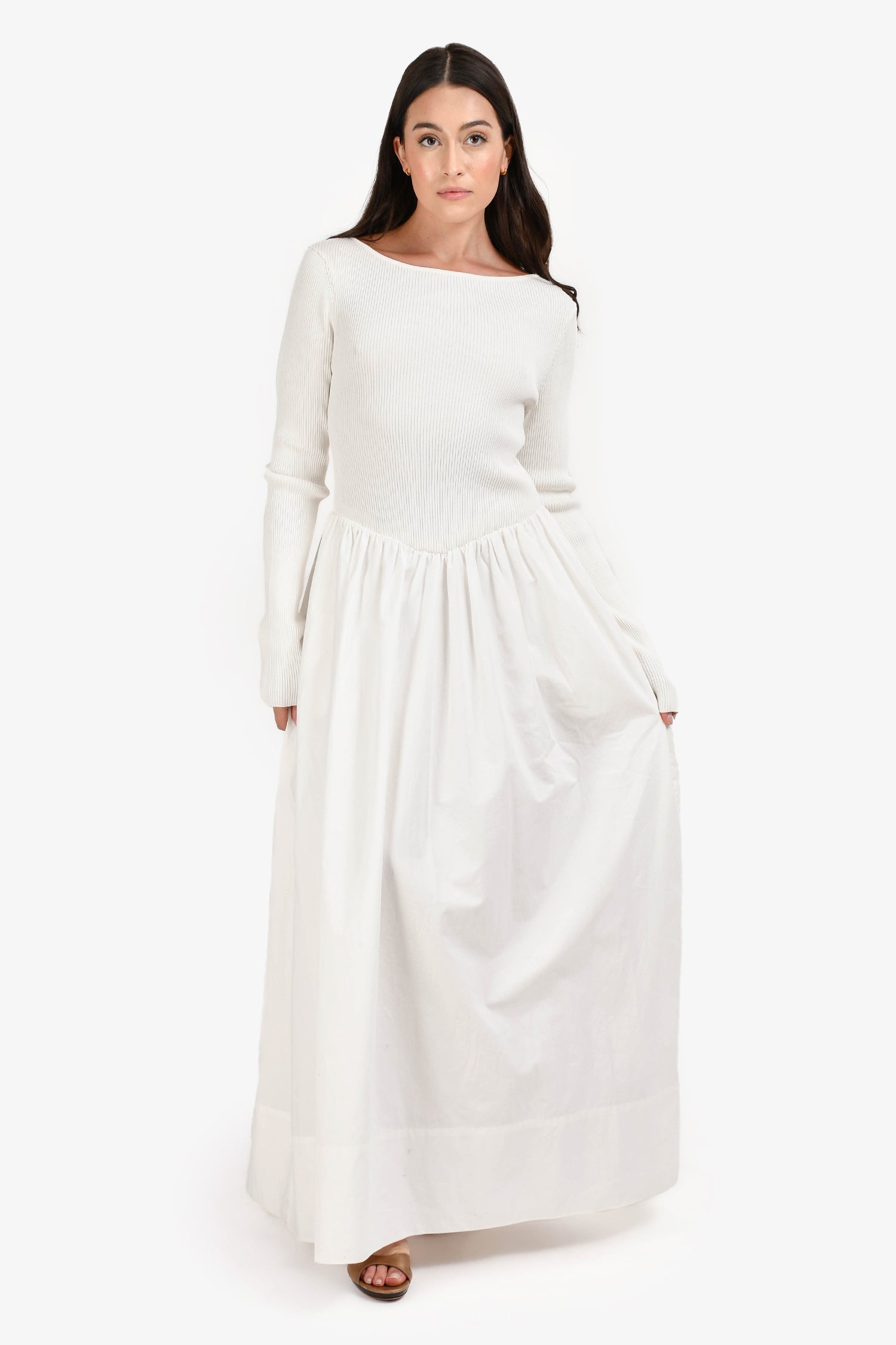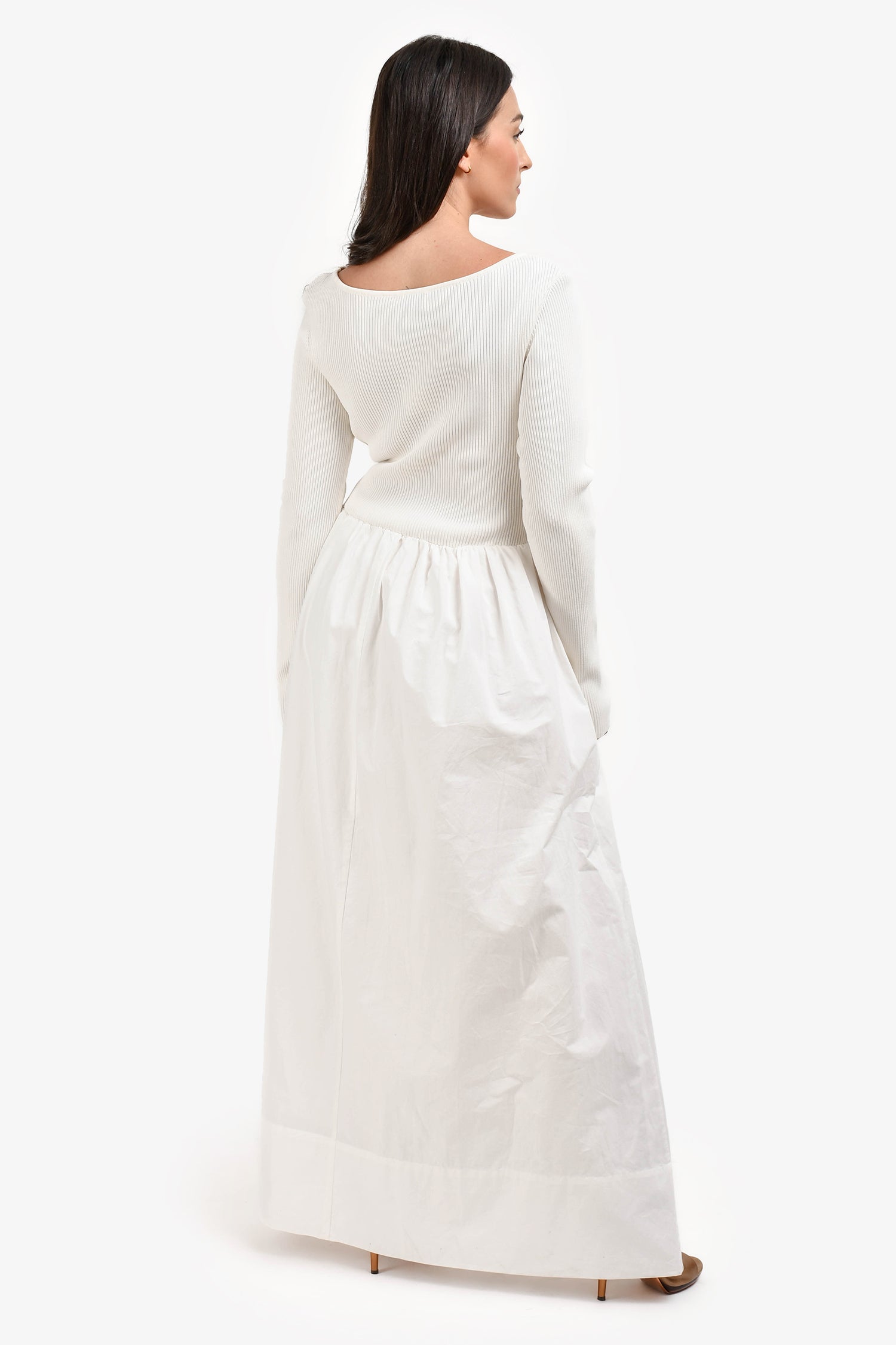 Refresh availabilityDissh White Ribbed/Cotton Long Sleeves Maxi Dress. Crew neckline. Long sleeves. Tonal stitching. Pull-on style.