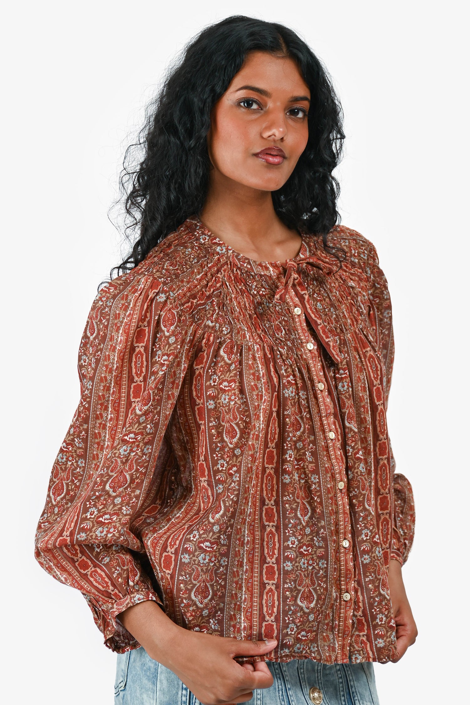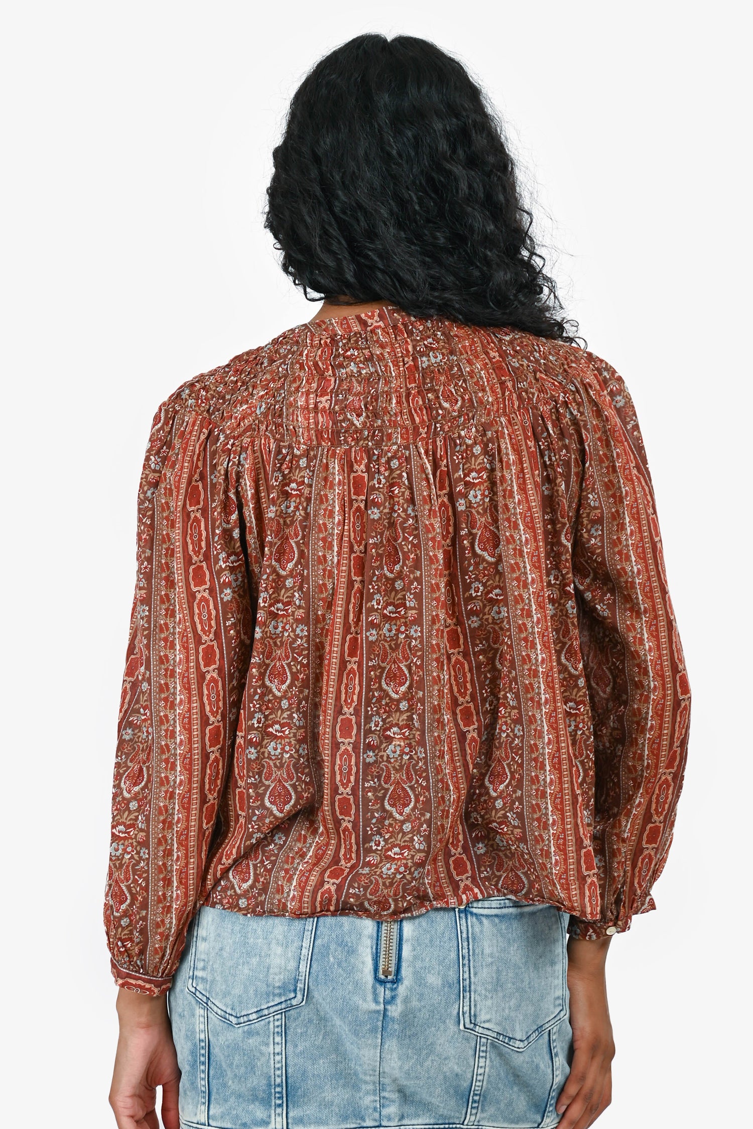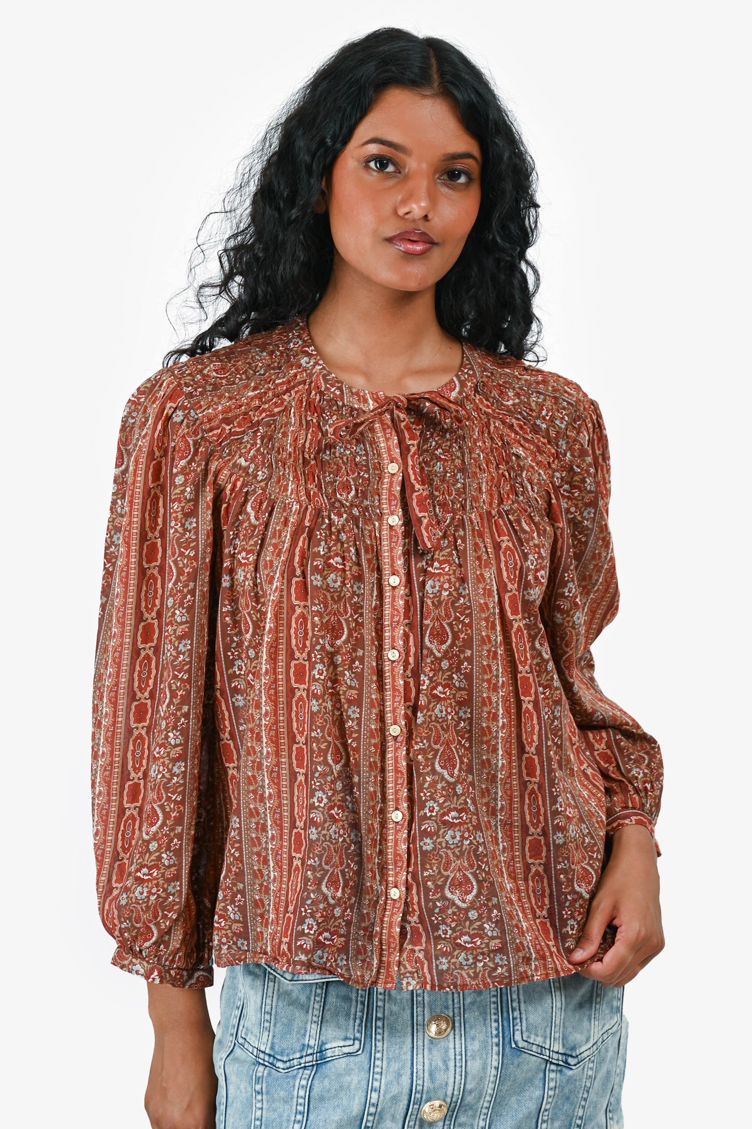 Doen Brown Cotton Floral Print 'Camina' Top Size S