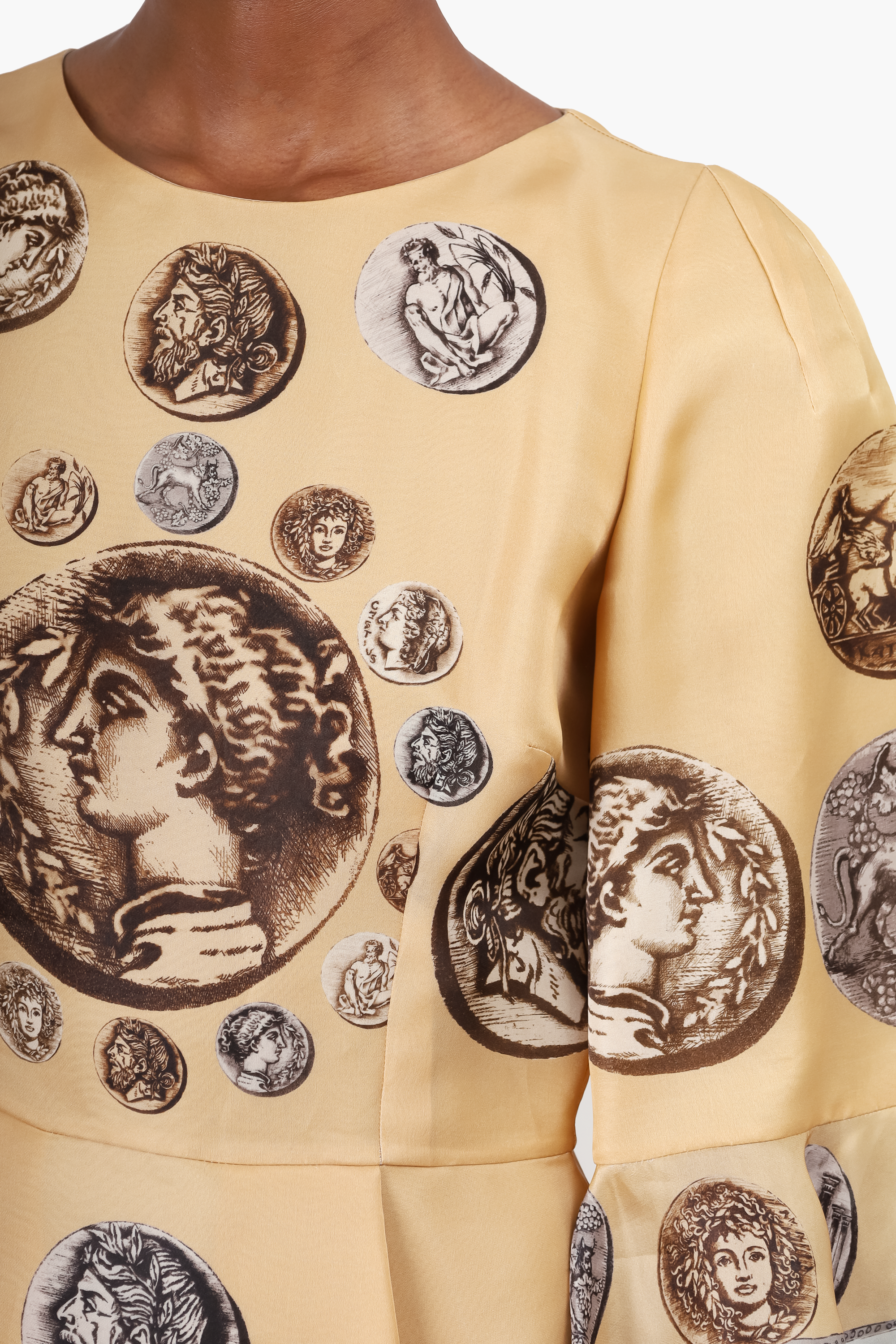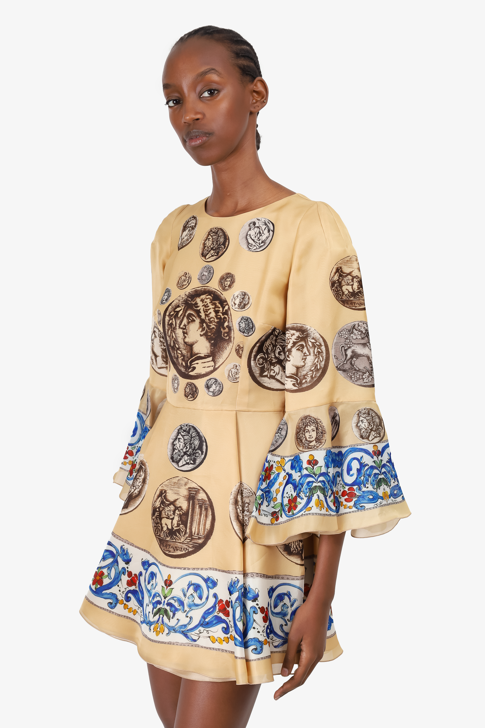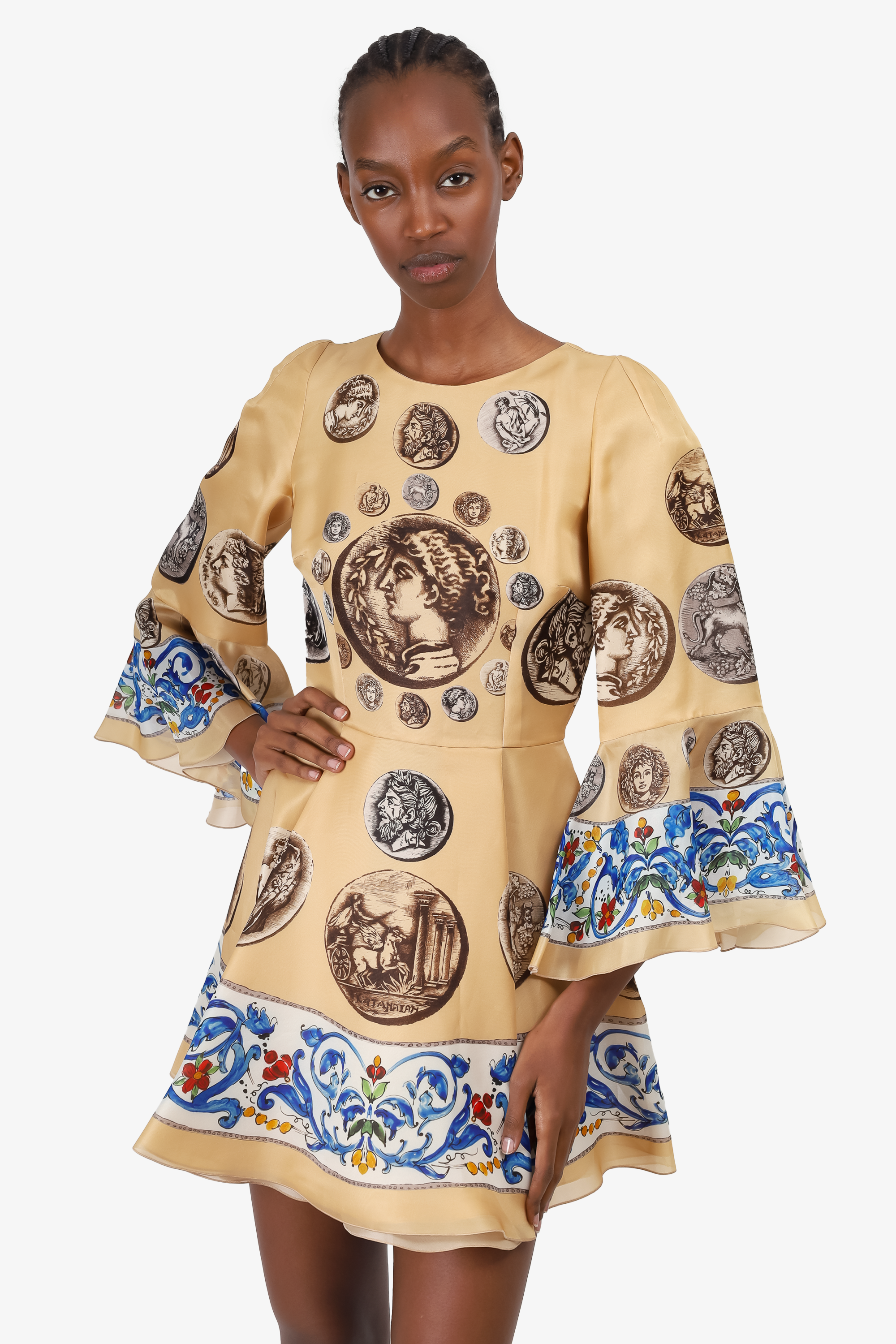 Refresh availabilityDolce & Gabbana Beige/Blue Silk Organza Coin Dress. Rear snap button and zip closure. Tonal stitching.