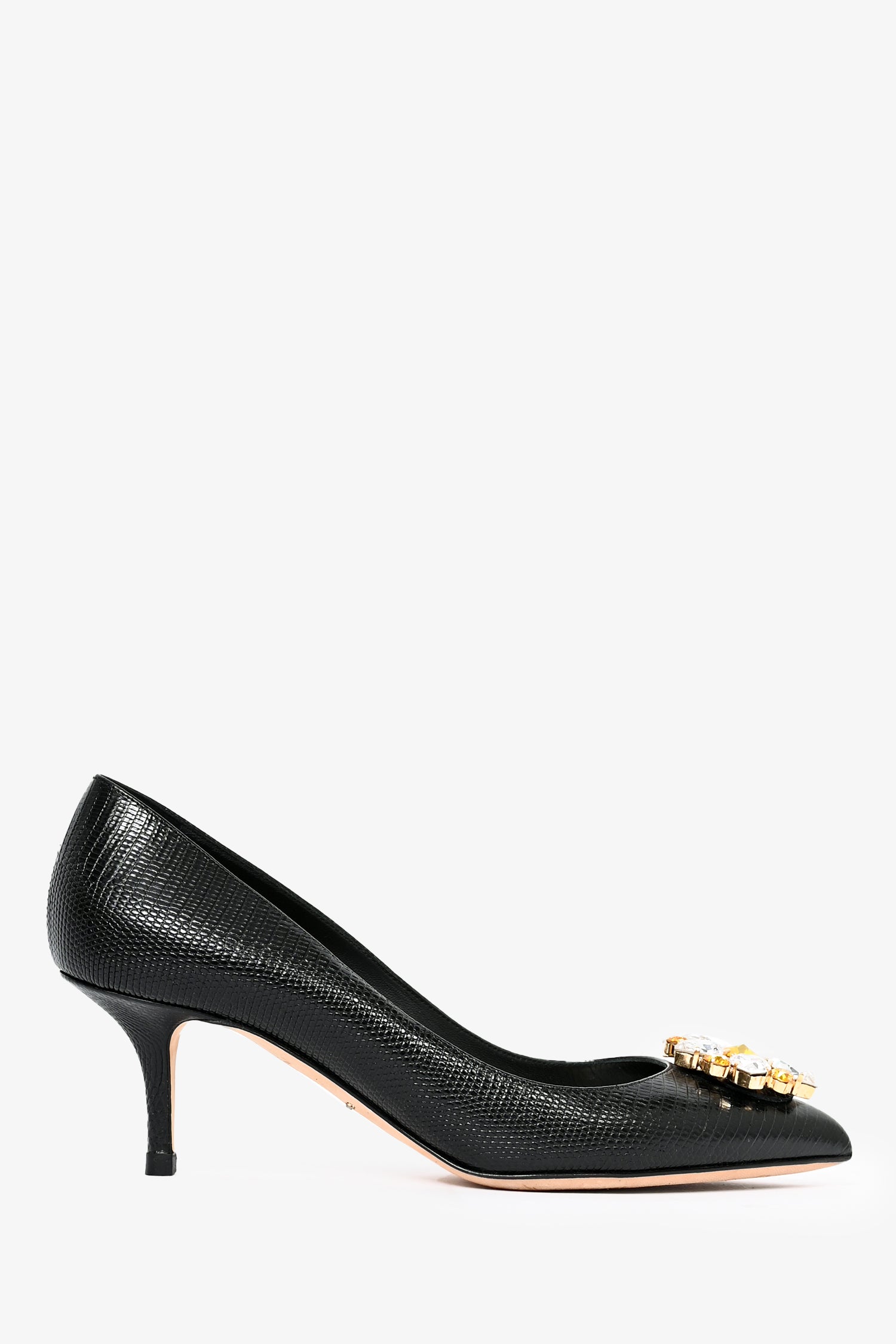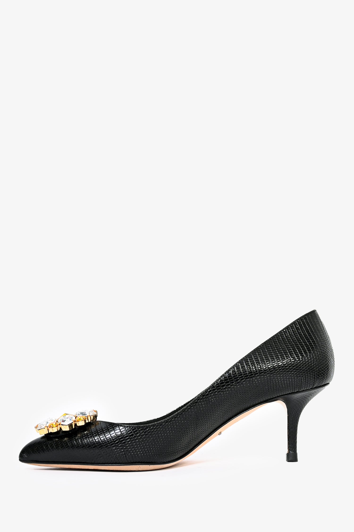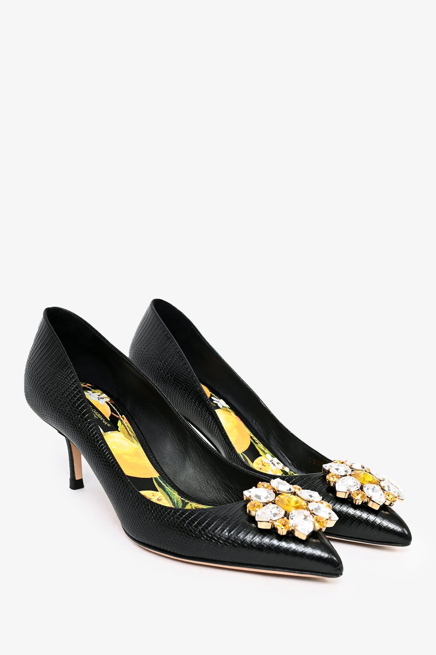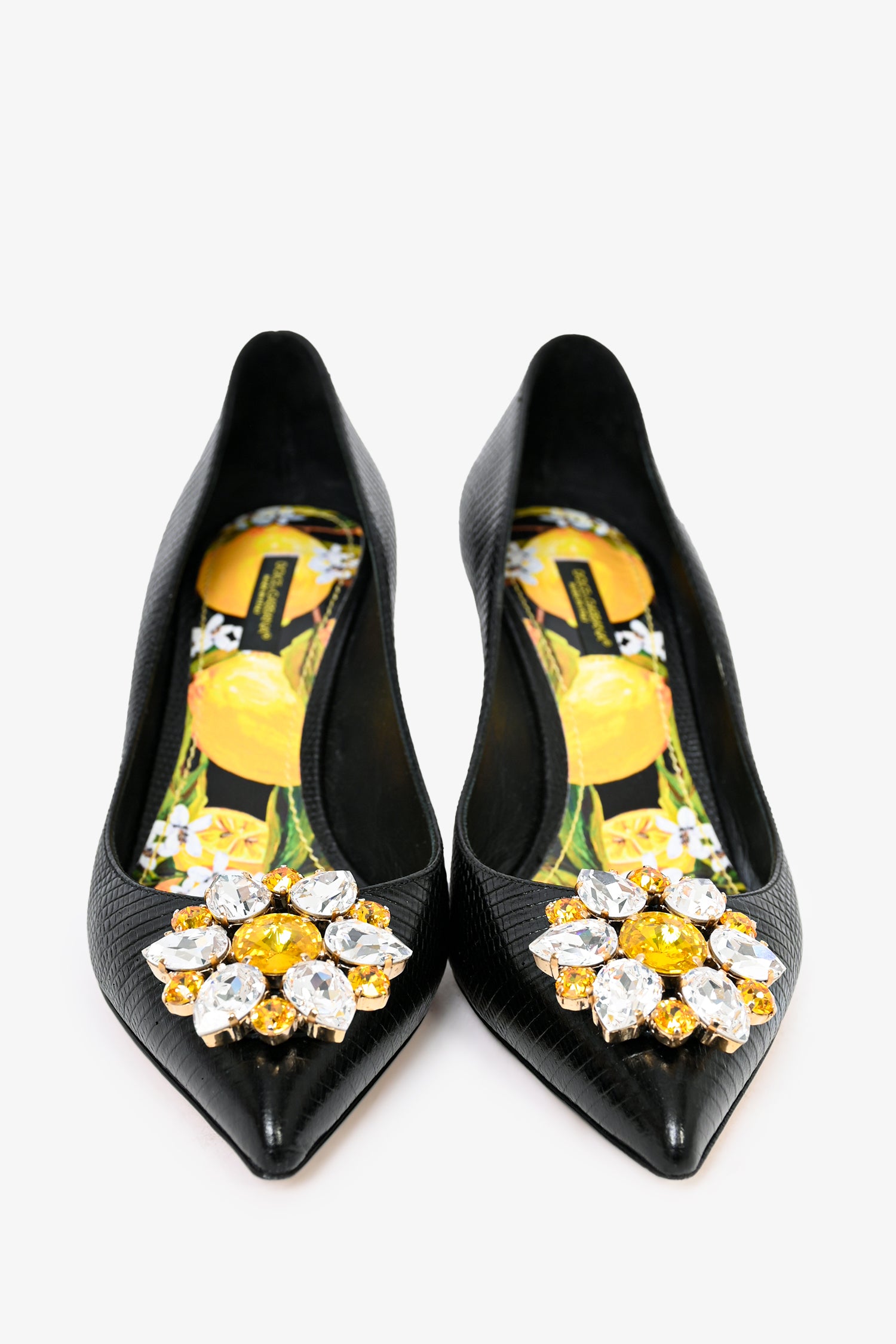 Refresh availabilityDolce & Gabbana Black Embossed Leather Crystal Flower Pointed Toe Pumps. Slip-on.