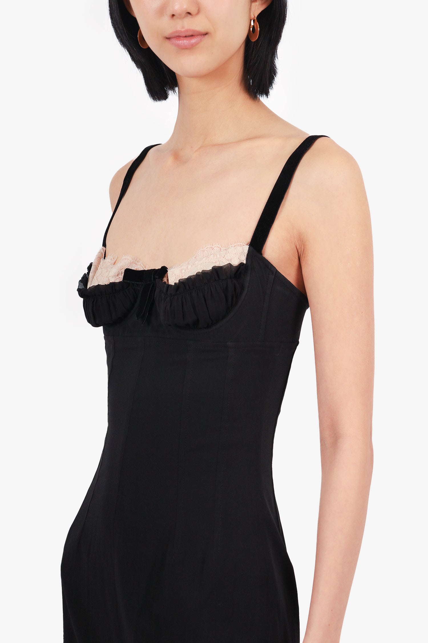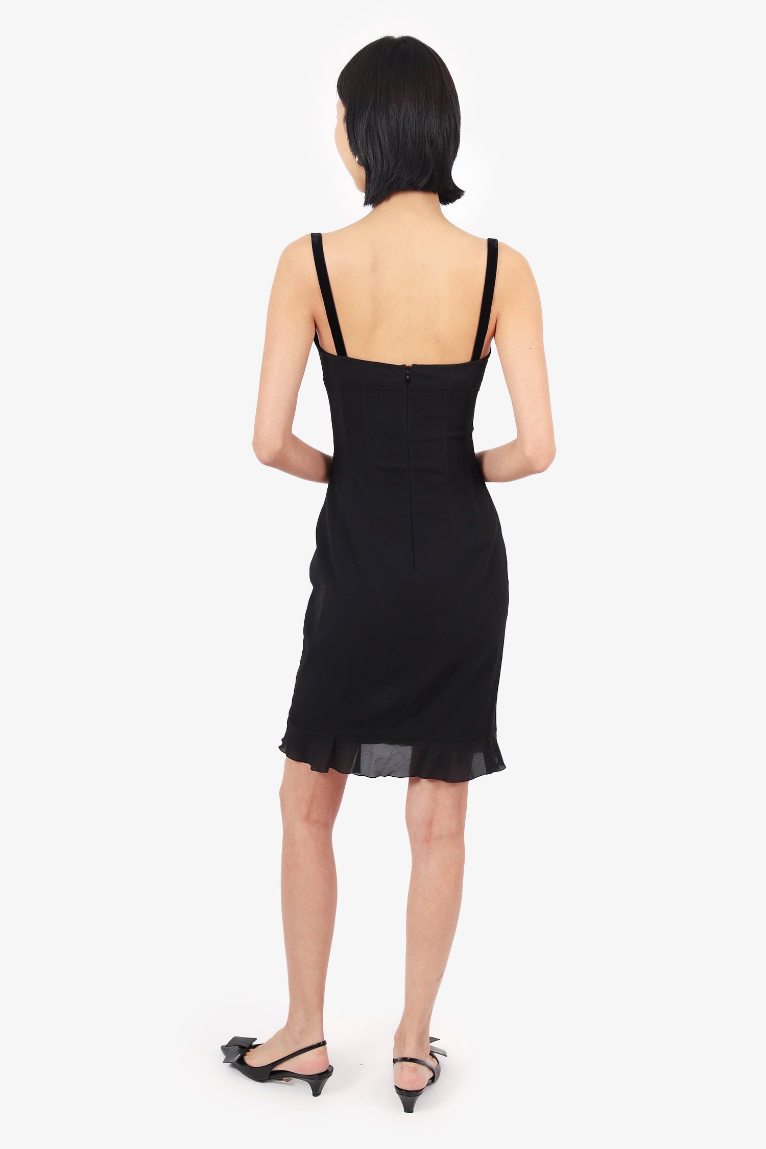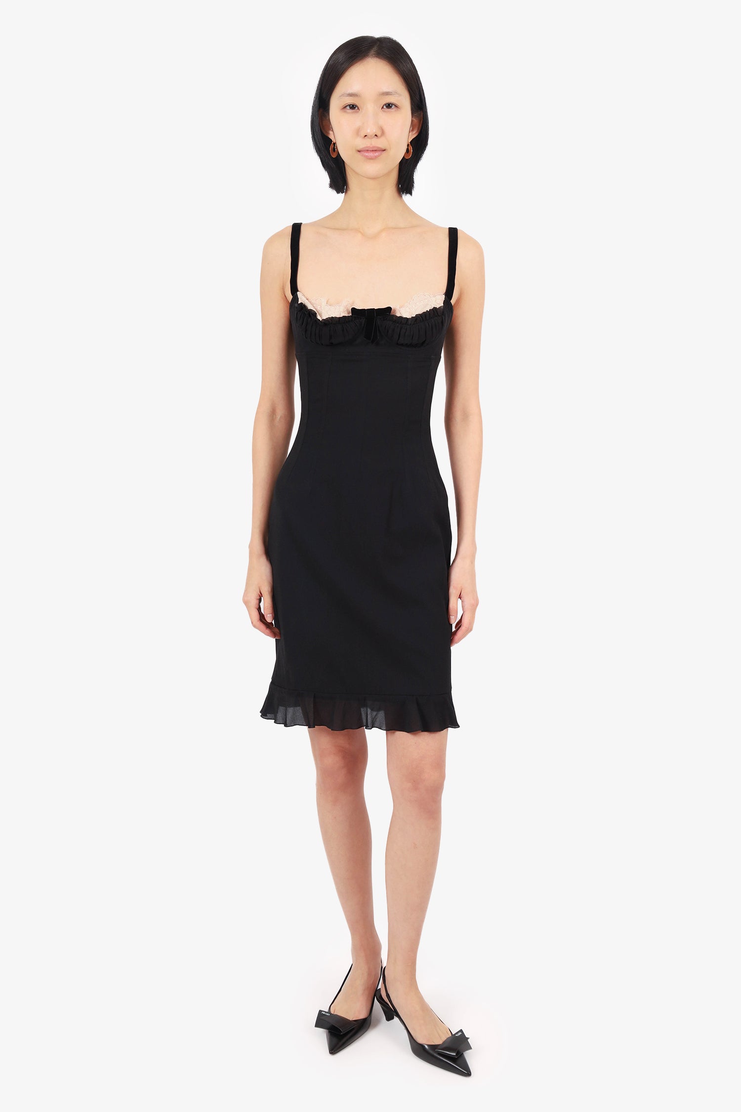 Refresh availabilityDolce & Gabbana Black Lace Trim Sleeveless Mini Dress. Rear zip closure. Sweetheart neckline with lace detail. Lined. Tonal stitching.