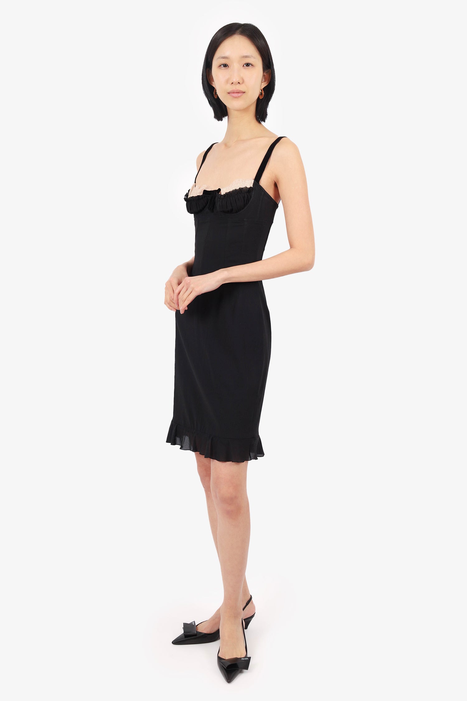 Dolce & Gabbana Black Lace Trim Sleeveless Mini Dress Size 42
