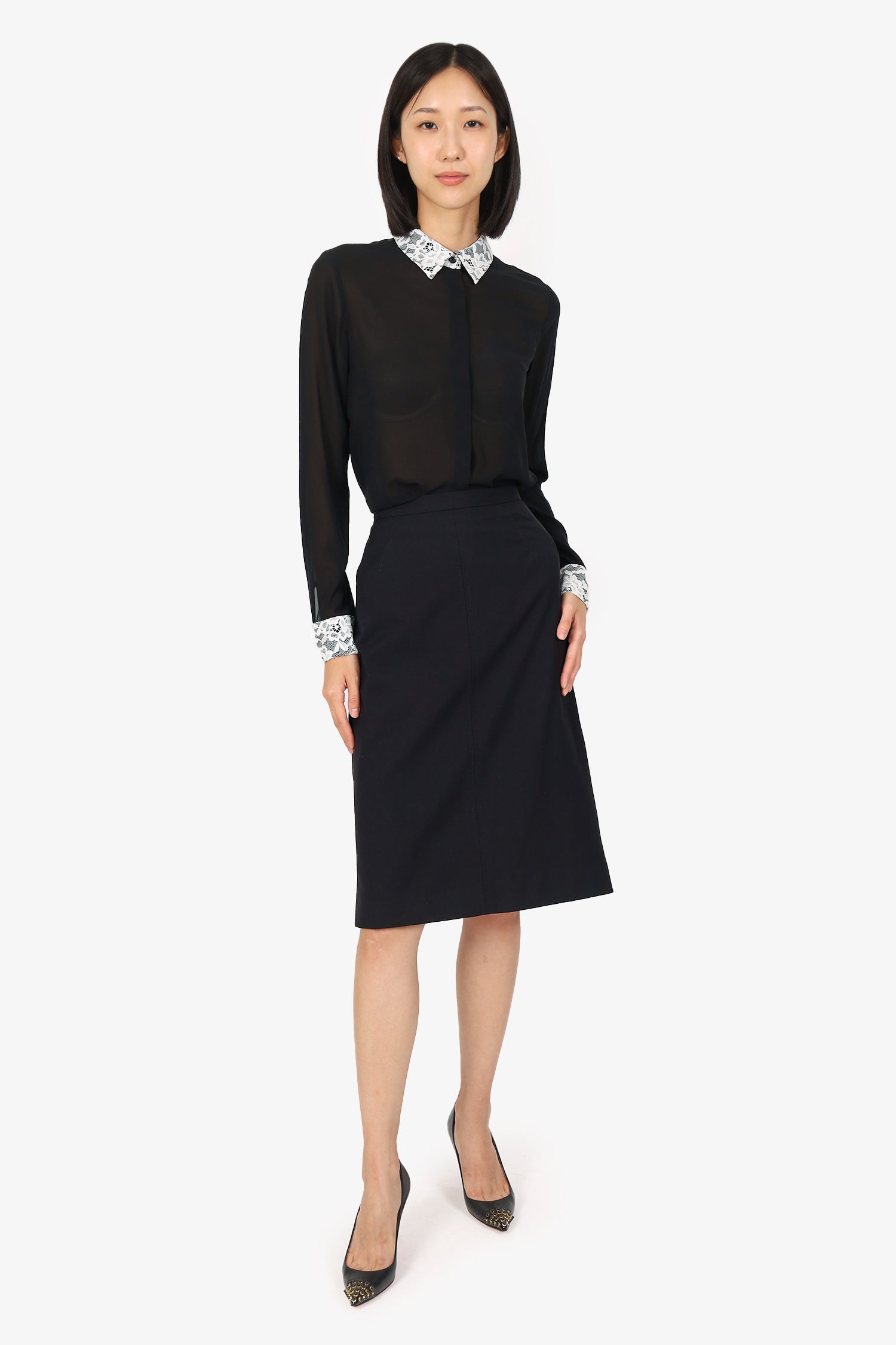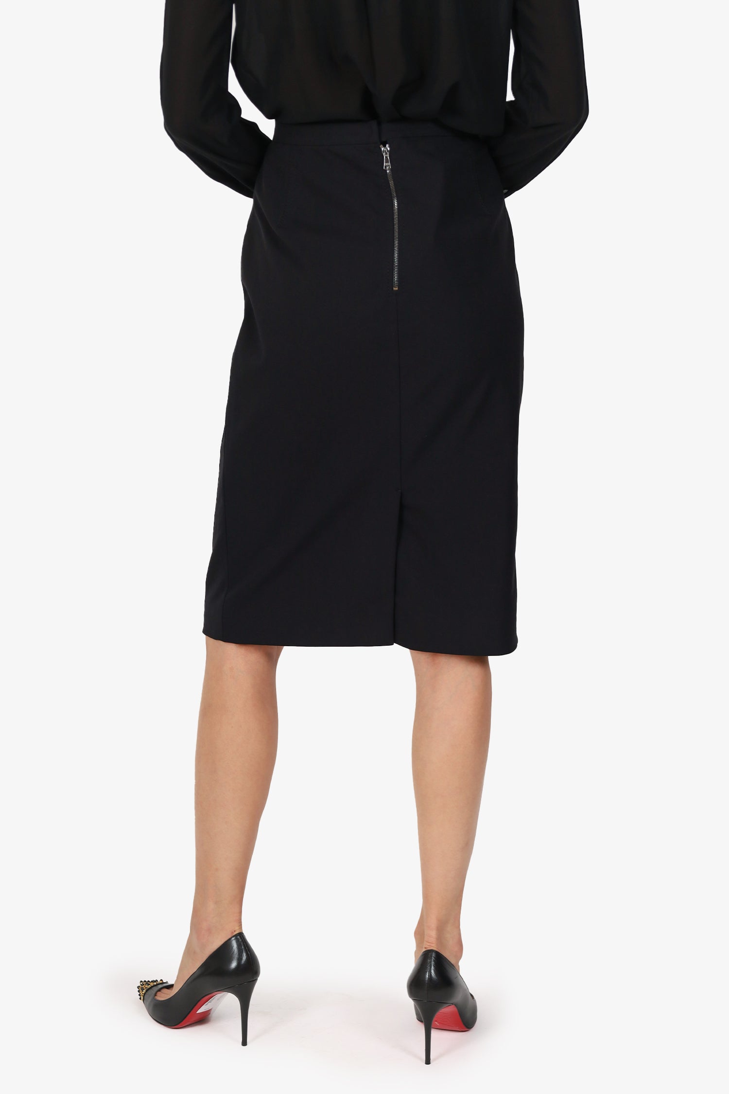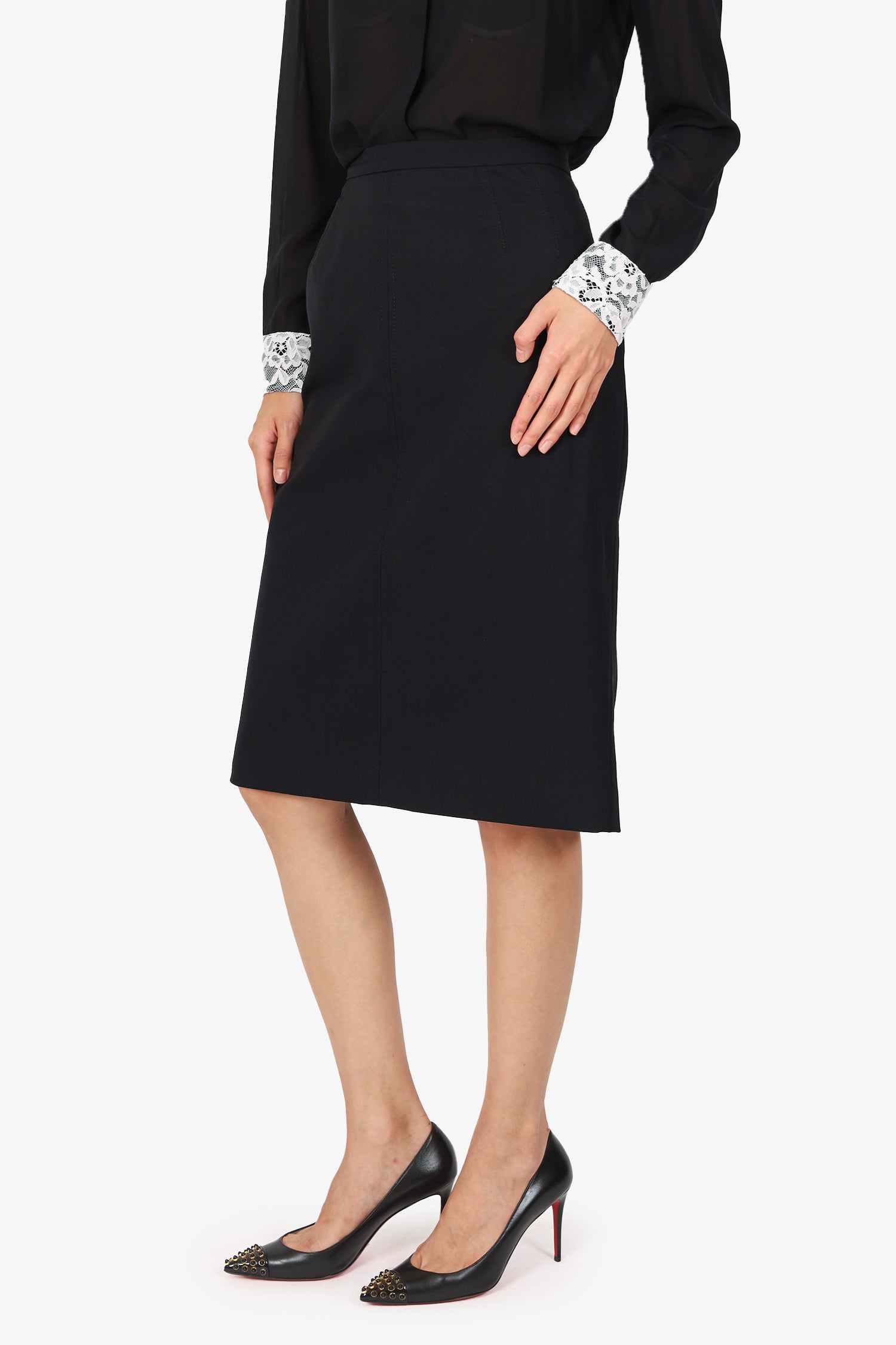 Refresh availabilityDolce & Gabbana Black Midi Skirt. Slip-on. Rear zip and snap-button closure. Leopard print lined interior. Silver-tone hardware. Tonal stitching.