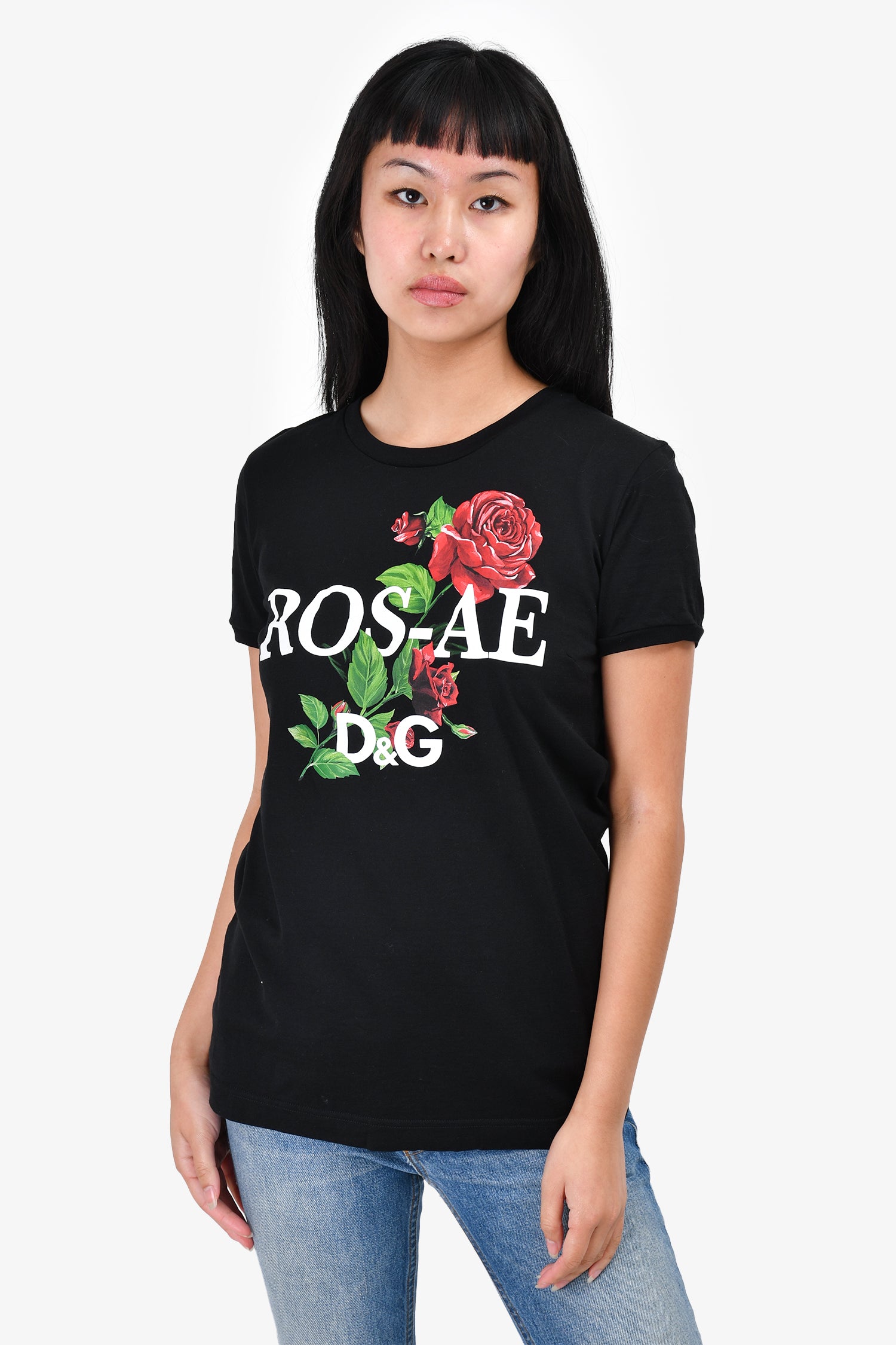 Refresh availabilityDolce & Gabbana Black 'Ros-ae' Graphic T-Shirt. Round neck. Pull-on.
