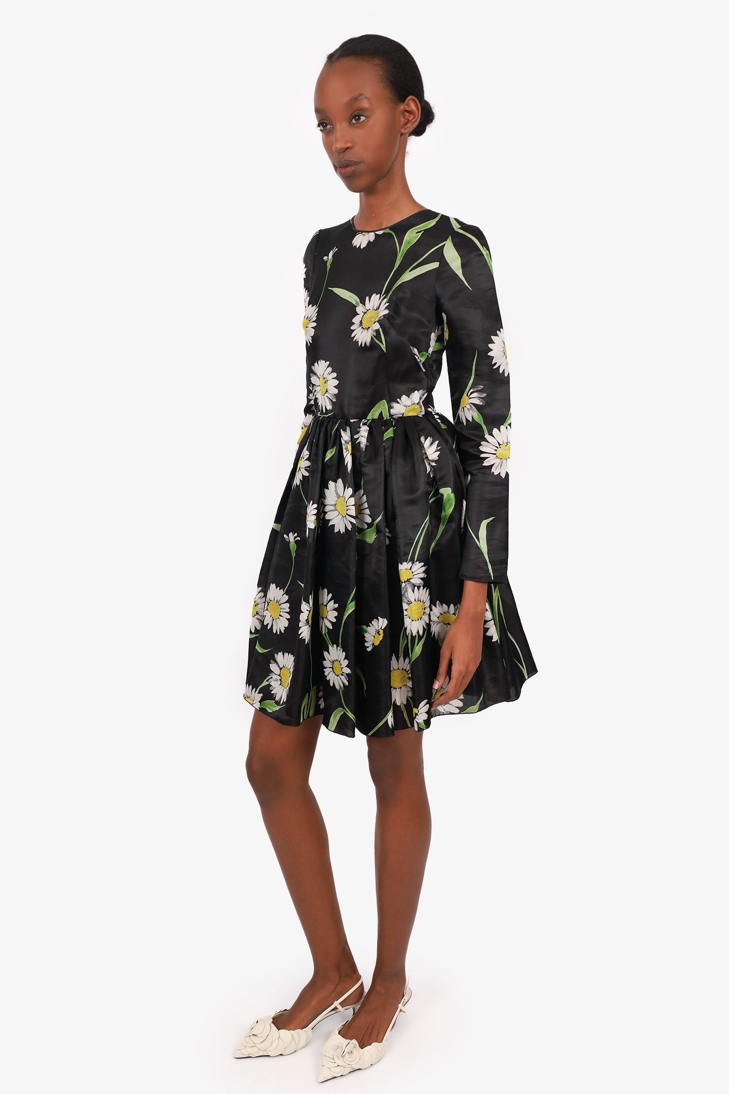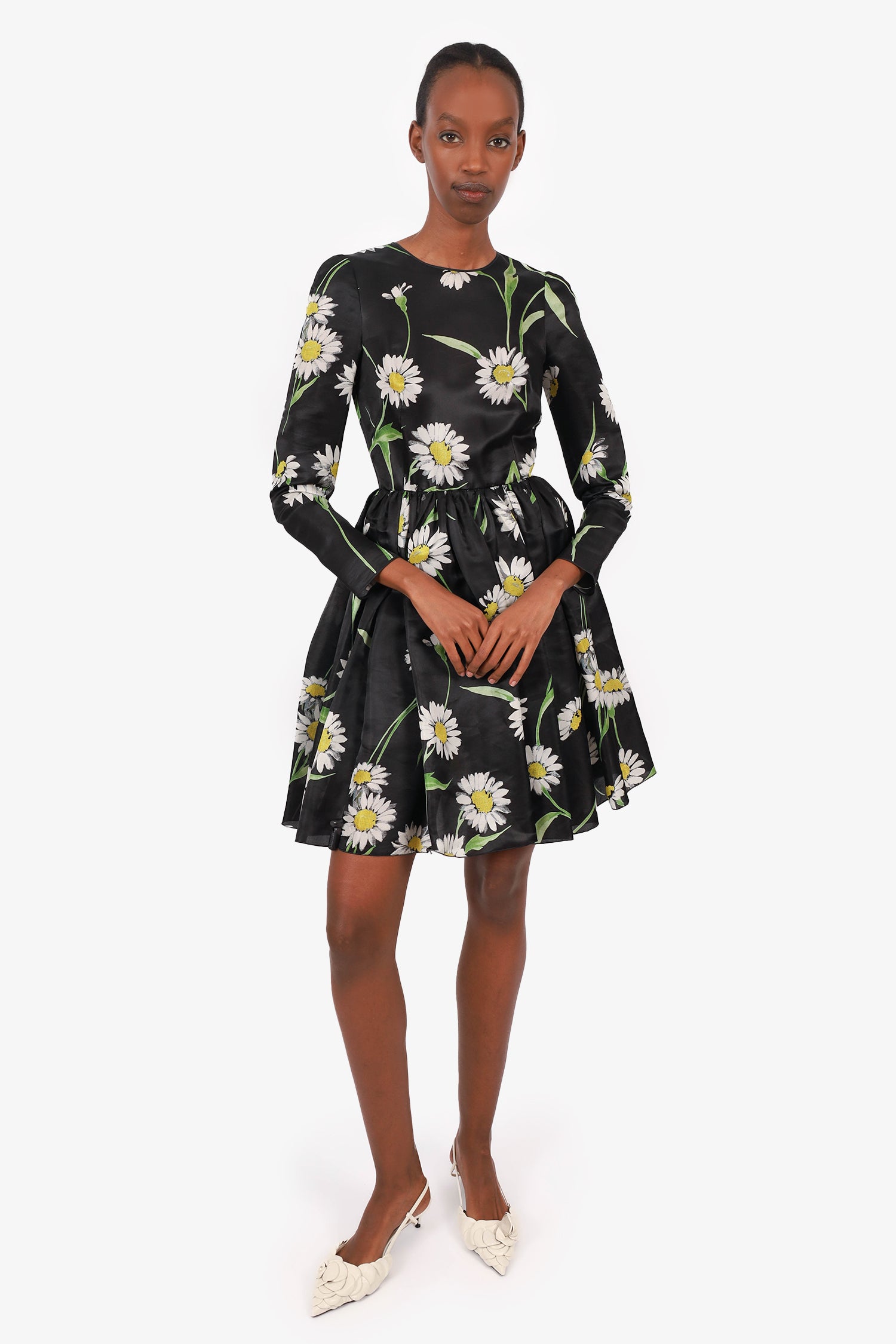 Refresh availabilityDolce & Gabbana Black Silk Floral Print Long Sleeve Midi Dress. Round neckline. Back zip closure. Unlined and slightly sheer. Tonal stitching.